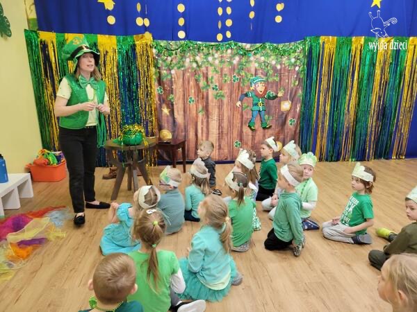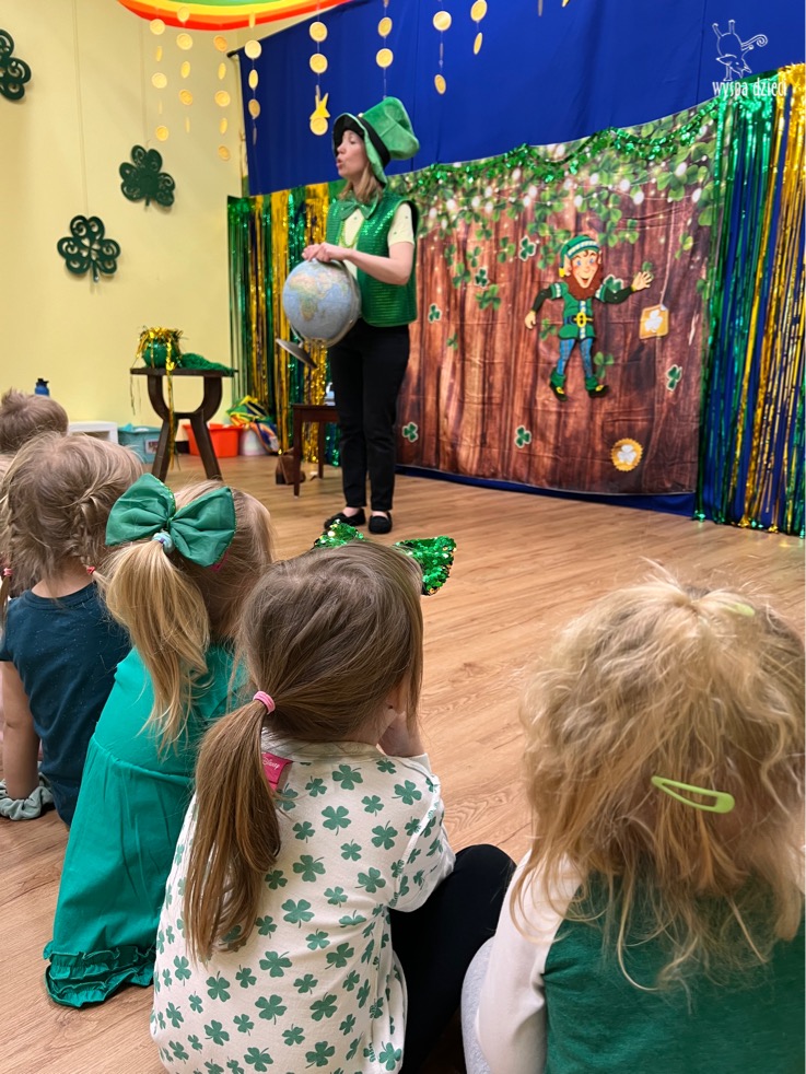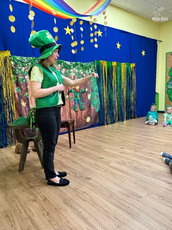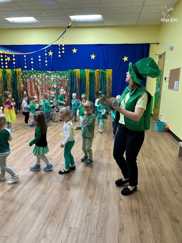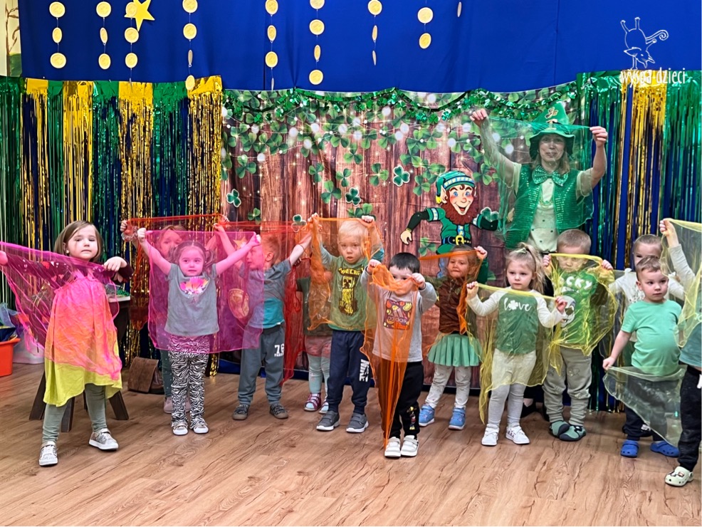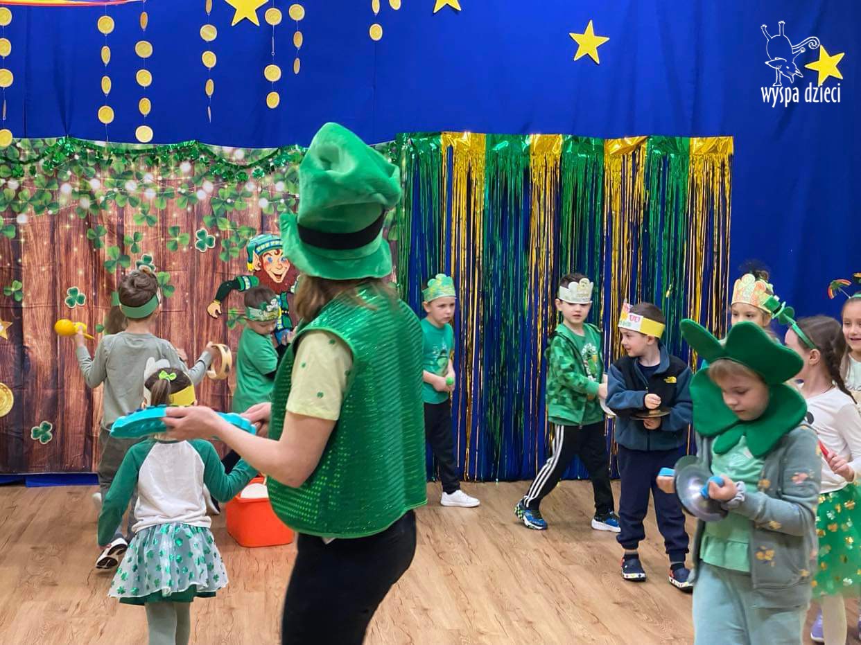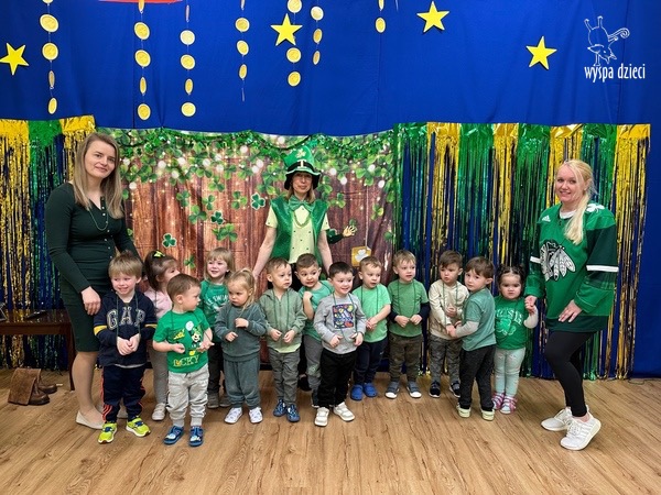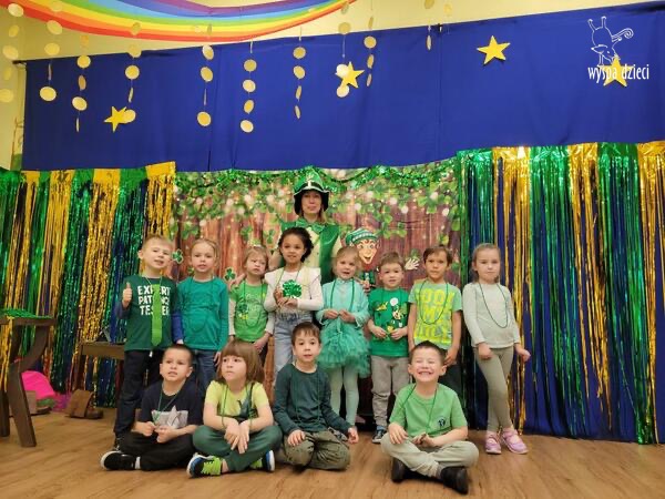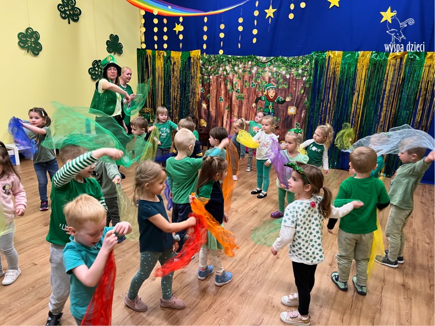 Dzień Świętego Patryka, który obchodzimy 17 marca, nie jest jedynie świętem narodowym Irlandii, ale również jednym z najchętniej obchodzonych świąt na świecie. W naszej Wyspie Dzieci River Grove również przedszkolaki miały okazję zapoznać się z tradycjami irlandzkiego święta. Zaznajomiły się z symbolami tej Zielonej Wyspy, takimi jak trójlistna koniczyna, kolor zielony, flaga i godło Irlandii. Dzieci poznały historię patrona Irlandii oraz legendę o skrzacie Leprechaun. Na koniec Leprechaun podarowal kazdemu Przedszkolakowi zielony naszyjnik .