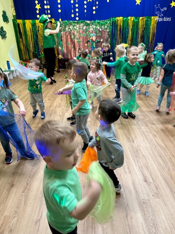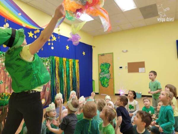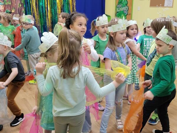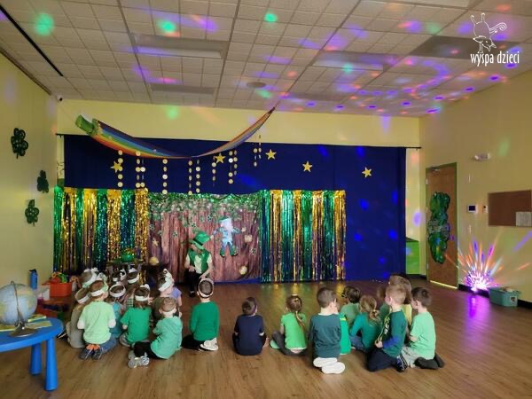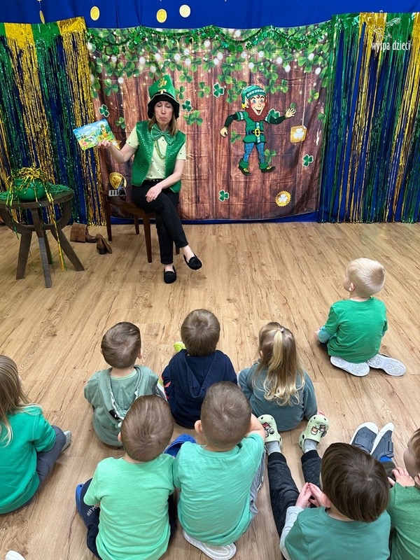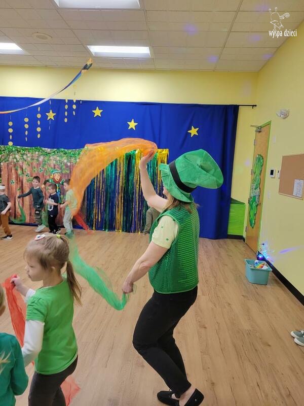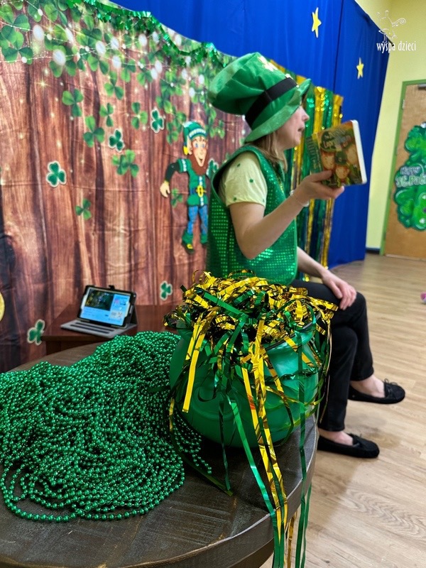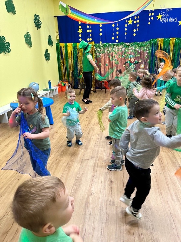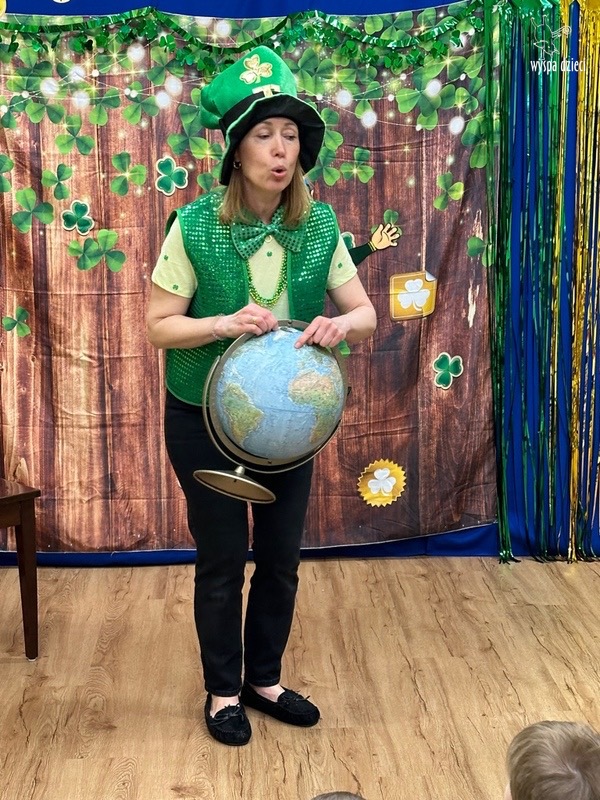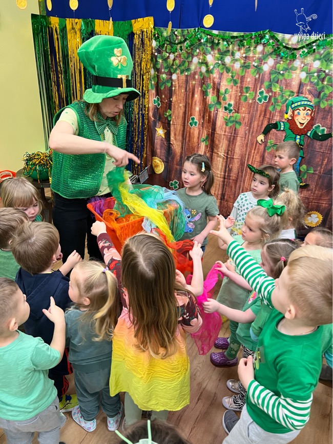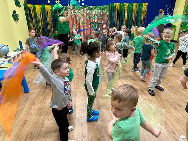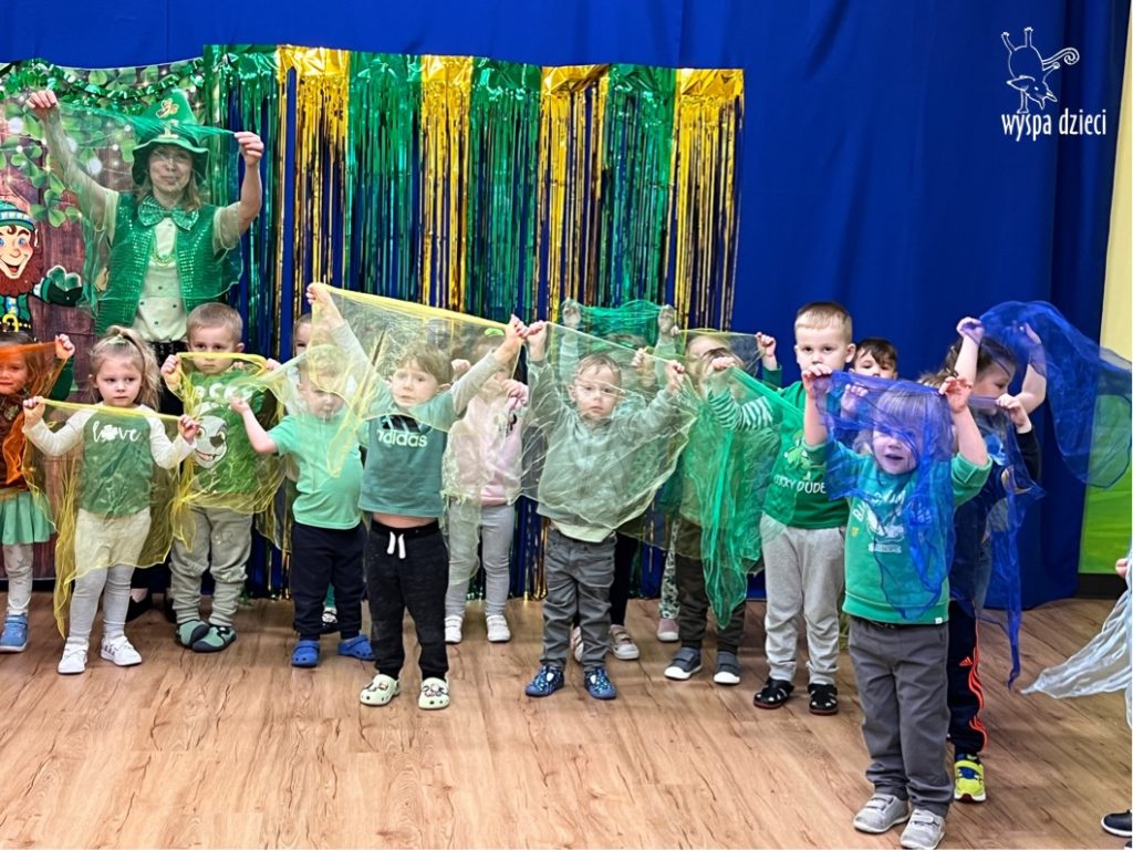 Dzień Świętego Patryka, który obchodzimy 17 marca, nie jest jedynie świętem narodowym Irlandii, ale również jednym z najchętniej obchodzonych świąt na świecie. W naszej Wyspie Dzieci River Grove również przedszkolaki miały okazję zapoznać się z tradycjami irlandzkiego święta. Zaznajomiły się z symbolami tej Zielonej Wyspy, takimi jak trójlistna koniczyna, kolor zielony, flaga i godło Irlandii. Dzieci poznały historię patrona Irlandii oraz legendę o skrzacie Leprechaun. Na koniec Leprechaun podarowal kazdemu Przedszkolakowi zielony naszyjnik .