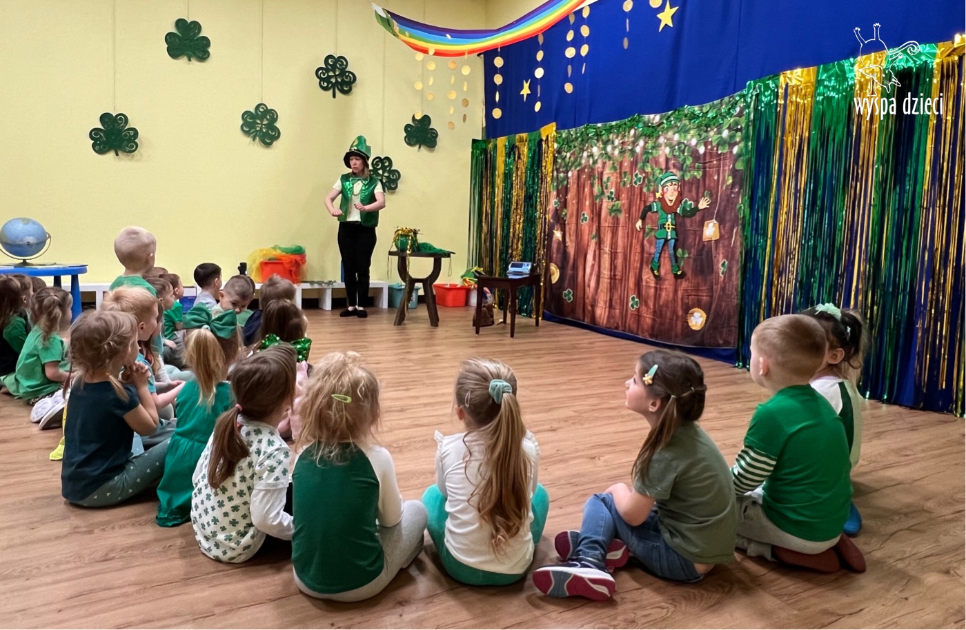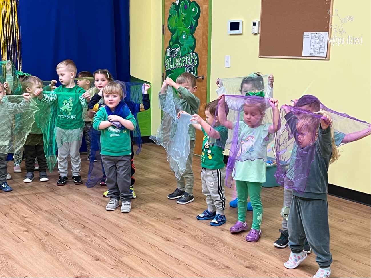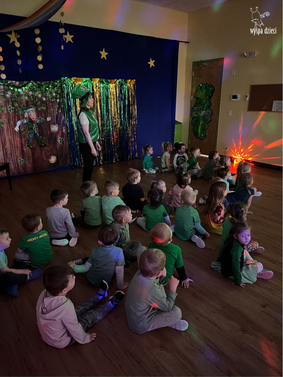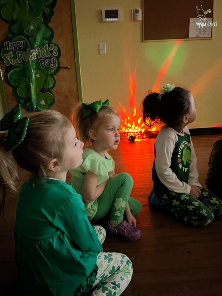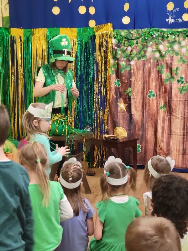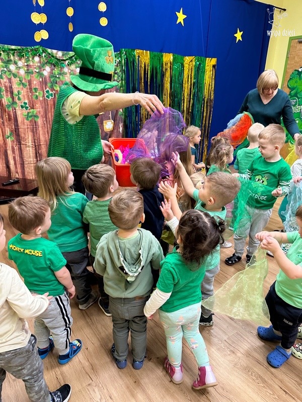 Dzień Świętego Patryka, który obchodzimy 17 marca, nie jest jedynie świętem narodowym Irlandii, ale również jednym z najchętniej obchodzonych świąt na świecie. W naszej Wyspie Dzieci River Grove również przedszkolaki miały okazję zapoznać się z tradycjami irlandzkiego święta. Zaznajomiły się z symbolami tej Zielonej Wyspy, takimi jak trójlistna koniczyna, kolor zielony, flaga i godło Irlandii. Dzieci poznały historię patrona Irlandii oraz legendę o skrzacie Leprechaun. Na koniec Leprechaun podarowal kazdemu Przedszkolakowi zielony naszyjnik .