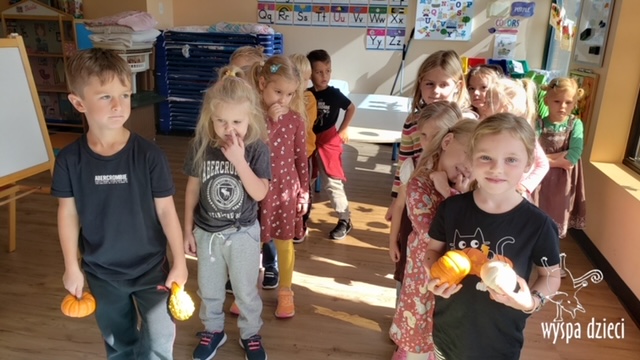 Odkrywcy z Algonquin wciąż jeszcze się poznają i przyzwyczajają do nowej grupy oraz zajęć w języku angielskim. Zdążyli już poznać pierwsze litery alfabetu, numery, pory roku i dni tygodnia. Zajęcia edukacyjne nie przeszkodziły im jednak w odkrywaniu “smaków jesieni”. Poza zbieraniem jabłek i kasztanów (użytych potem do artstystycznych projektów), uczniowie mieli okazję spróbować świeżych owoców, musu jabłkowego i dżemu z dyni. Byly jesienne piosenki, malowanie kredą, gry i zabawy – rzucanie kasztanem do celu czy tez dyniowe kręgle. Odkrywcy nauczyli się piosenki o jesieni oraz wysluchali przeczytanych przez wychowawczynie lektur. Korzystali również z jesiennego słońca, gdyż czesc zajęć odbyła się na świeżym powietrzu.