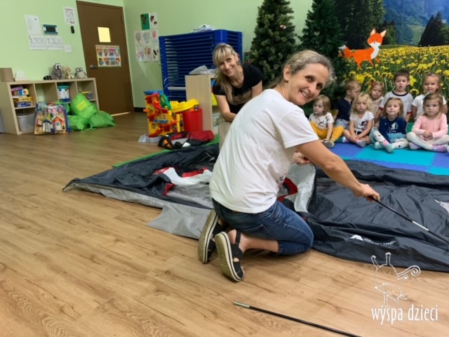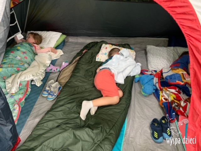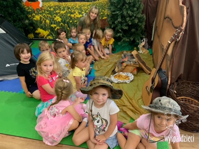 Lato w pełni! Grupa Smerfów cieszy się każdym dniem tego beztroskiego czasu. Maluchy były już nad oceanem, na Hawajach, w gorącej Afryce i słonecznej Australii… a teraz czas na biwak! Wakacyjne biwakowanie to wspaniały pomysł na miłe spedzenie czasu z koleżankami i kolegami! Maluchy spakowały plecaki i wyruszyły na biwak – były namioty, ognisko, gra na gitarze i oczywiście radosne piosenki. Smerfiki wraz z paniami usiadły przy ognisku, zjadły upieczone na nim ziemniaczki, a potem dało się usłyszeć tekst jakże lubianej przez wszystkich biwakowej piosenki: