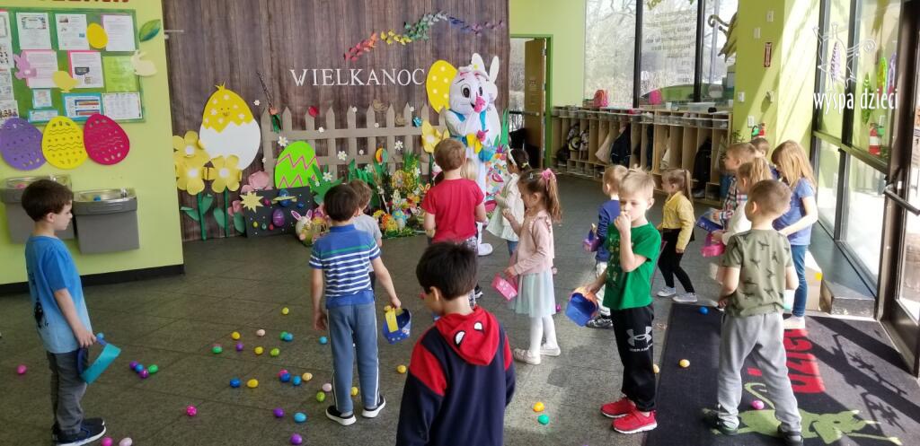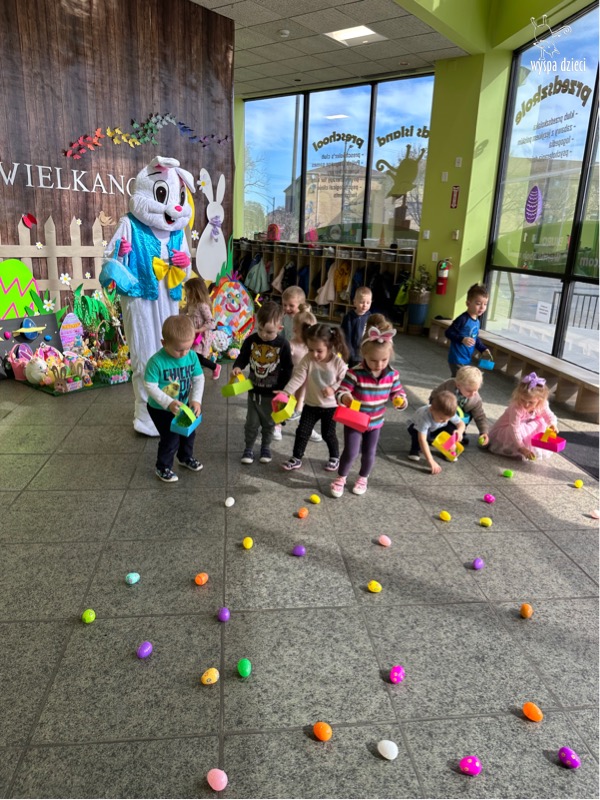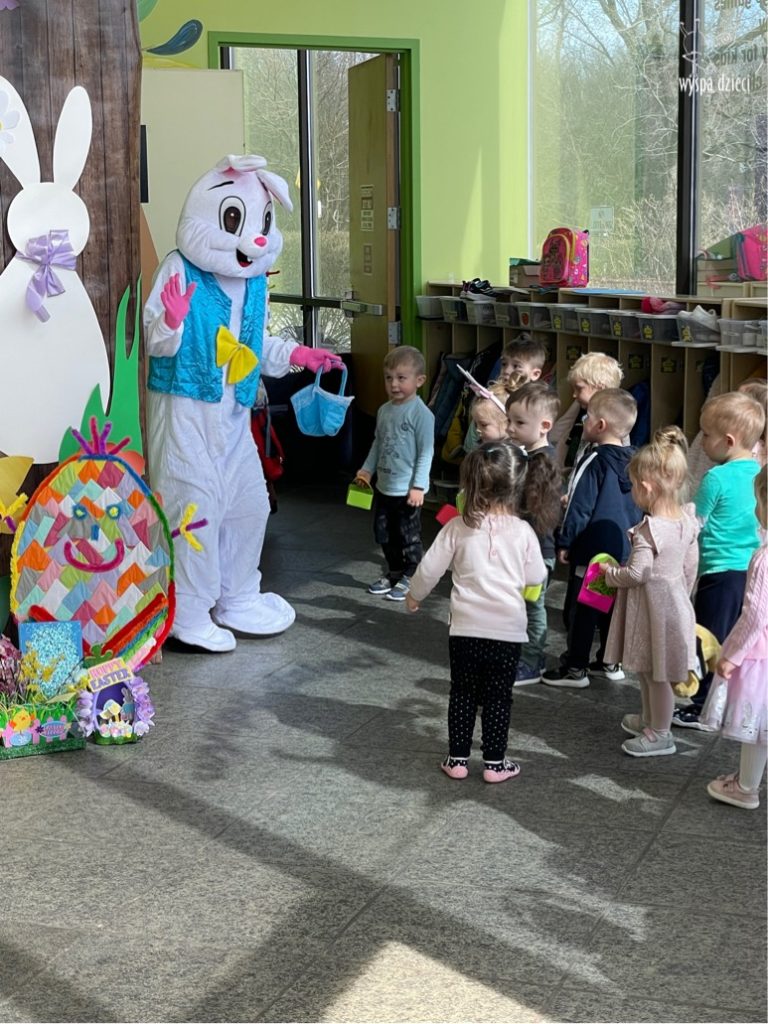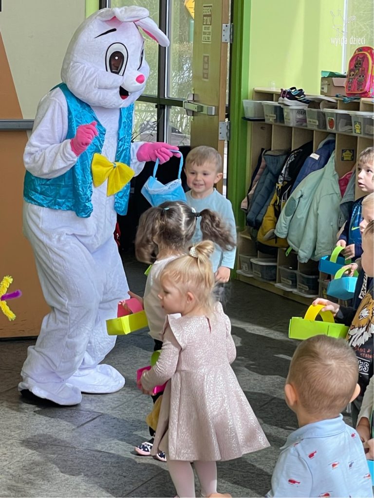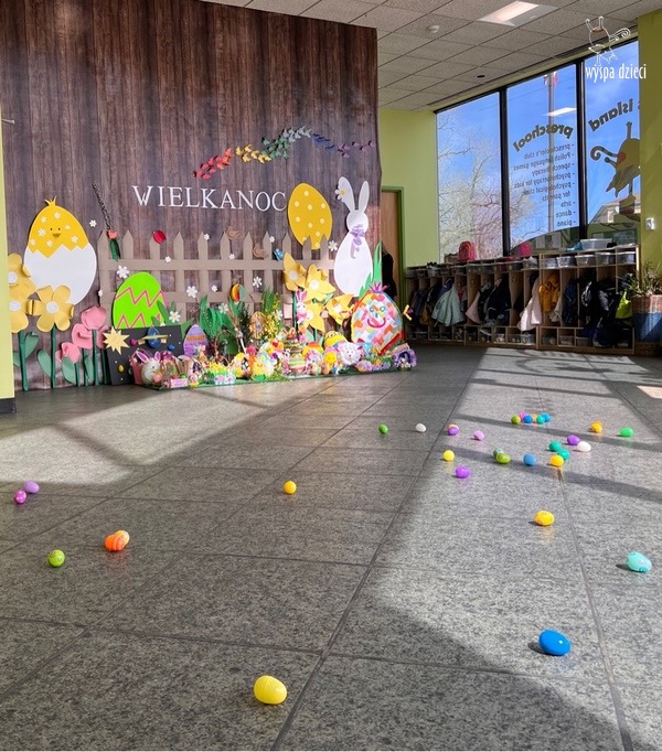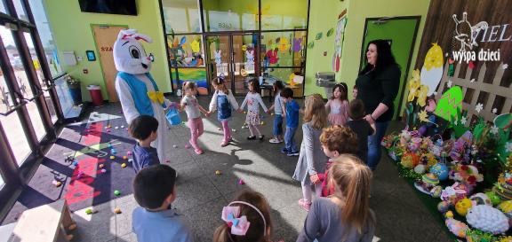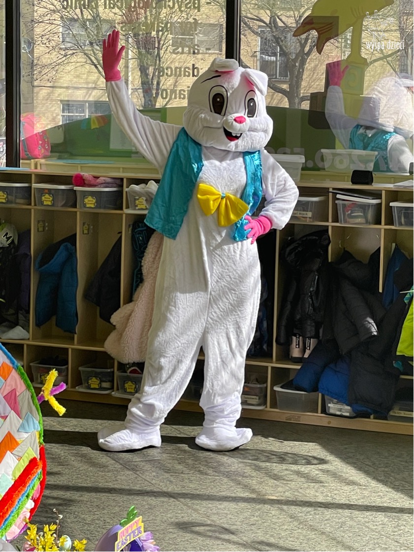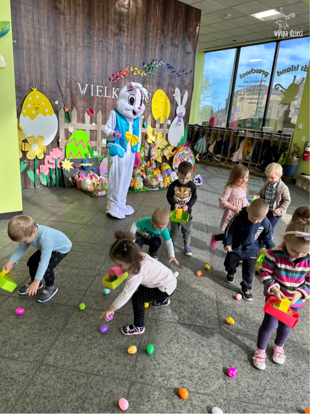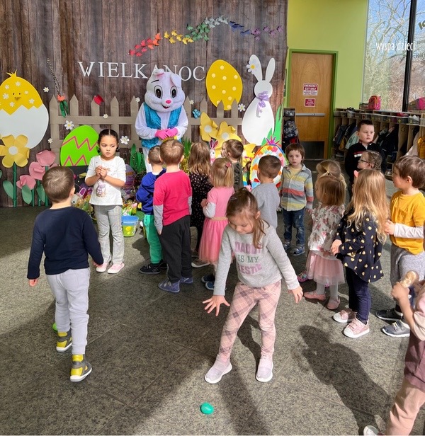 Dziś do naszej Wyspy Dzieci w River Grove przykicał wspaniały, radosny wielkanocny zajączek. Dzieci znalazły ślady zajączka po których maszerowały do głównego korytarza , gdzie czekały na nich jajka niespodzianki . Zajączek odwiedzil każdą grupę. Nasz gość chętnie pozował z dziećmi do zdjęć i z nimi rozmawiał o zbliżających się świętach, a tekże śpiewał piosenki o wiośnie.