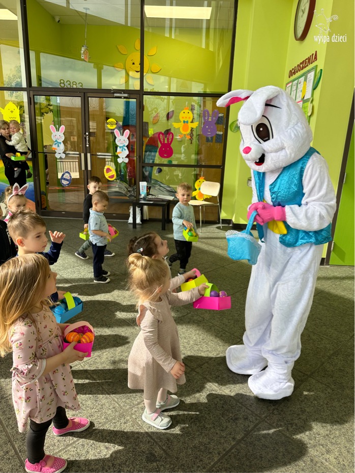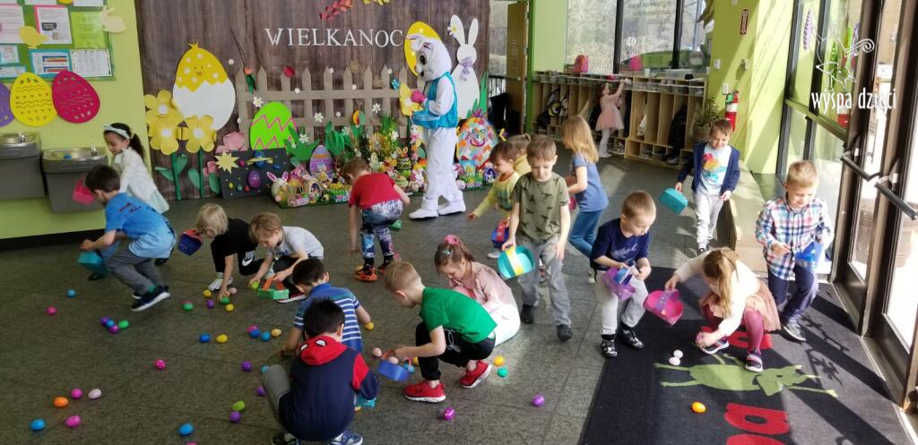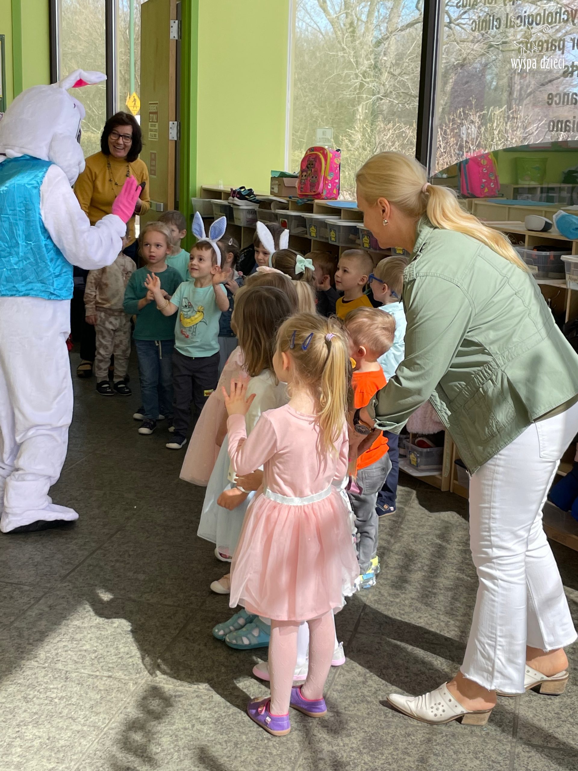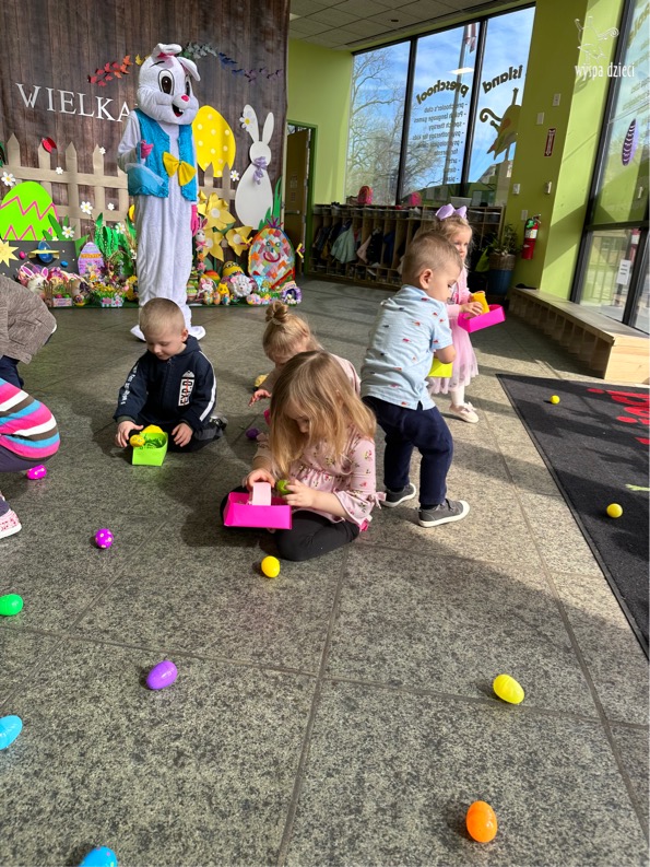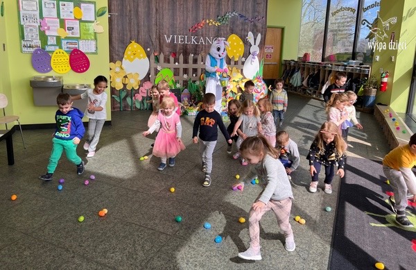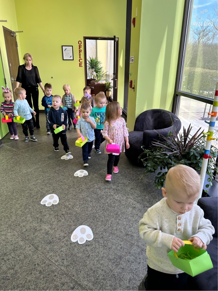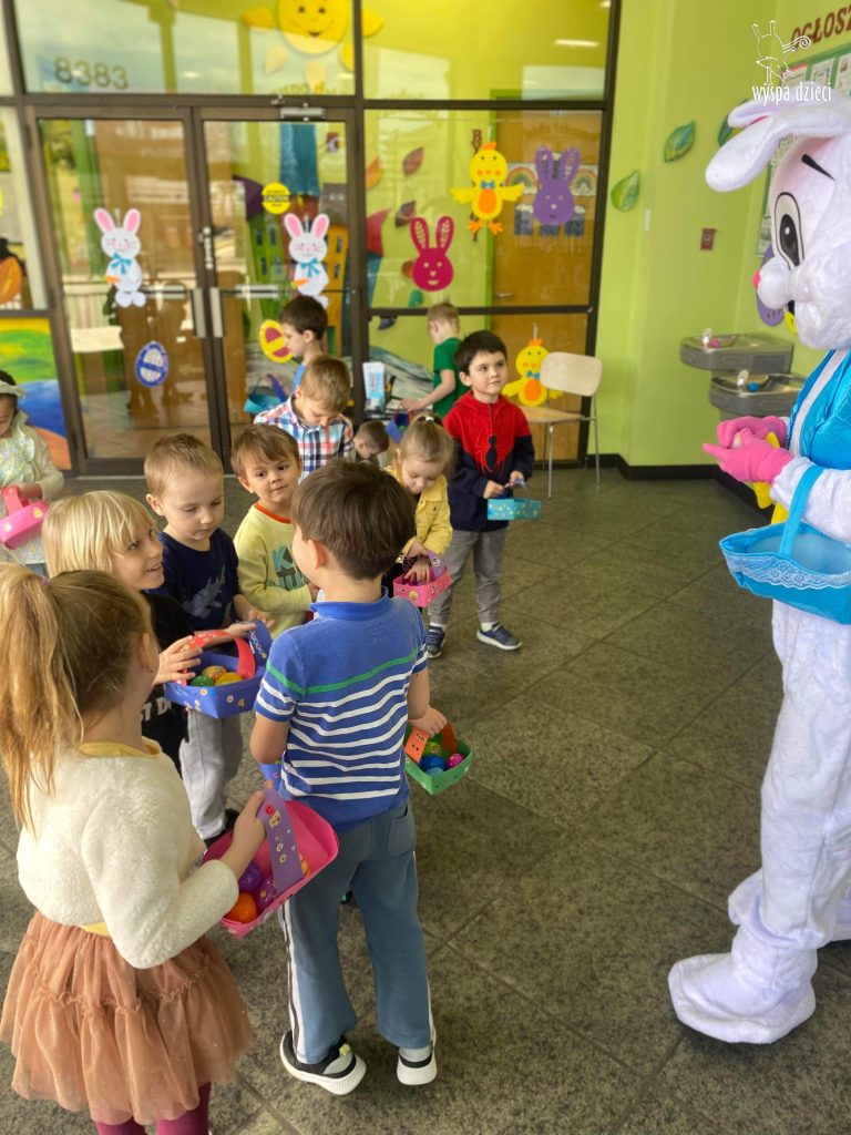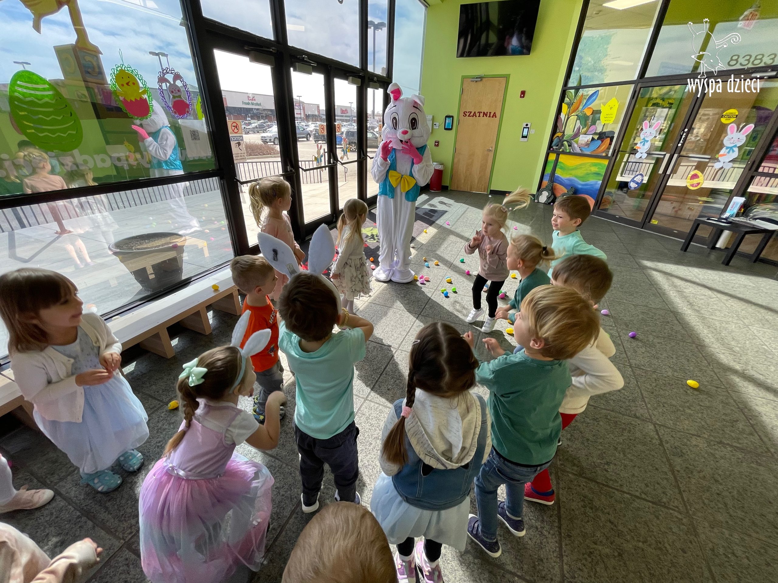 Dziś do naszej Wyspy Dzieci w River Grove przykicał wspaniały, radosny wielkanocny zajączek. Dzieci znalazły ślady zajączka po których maszerowały do głównego korytarza , gdzie czekały na nich jajka niespodzianki . Zajączek odwiedzil każdą grupę. Nasz gość chętnie pozował z dziećmi do zdjęć i z nimi rozmawiał o zbliżających się świętach, a tekże śpiewał piosenki o wiośnie.