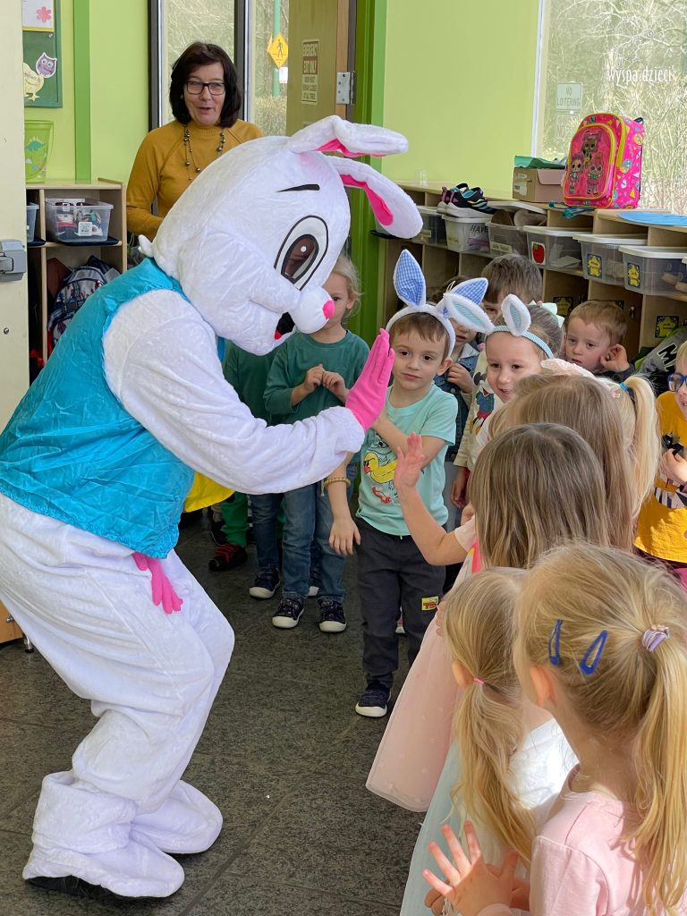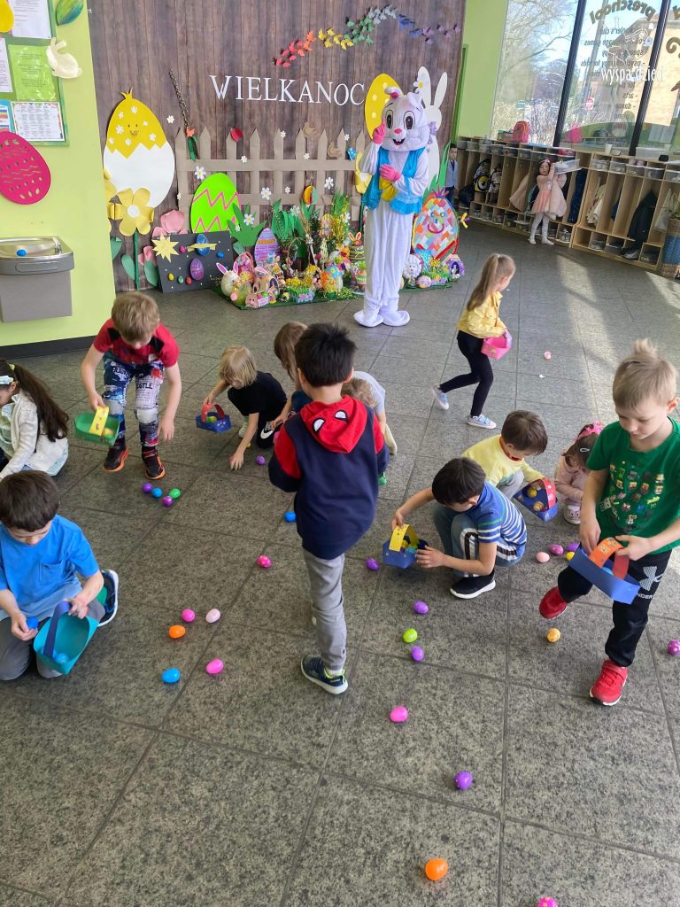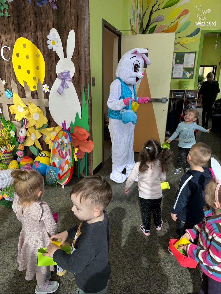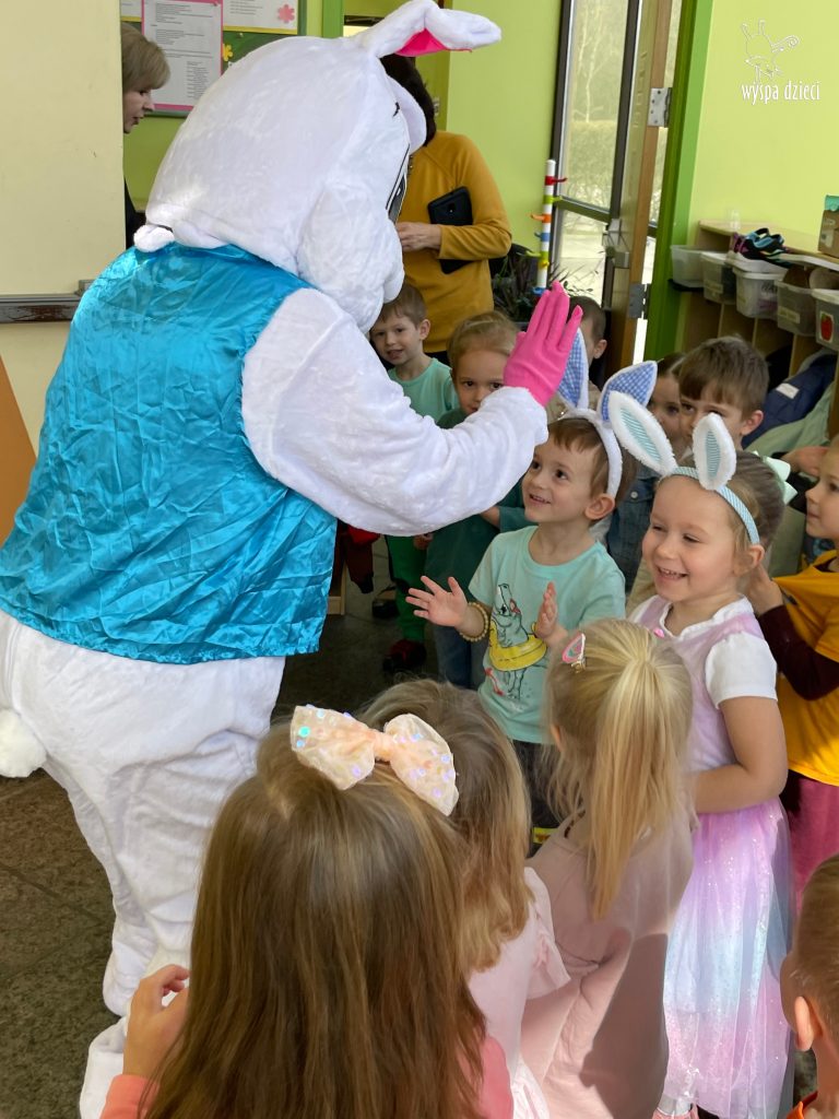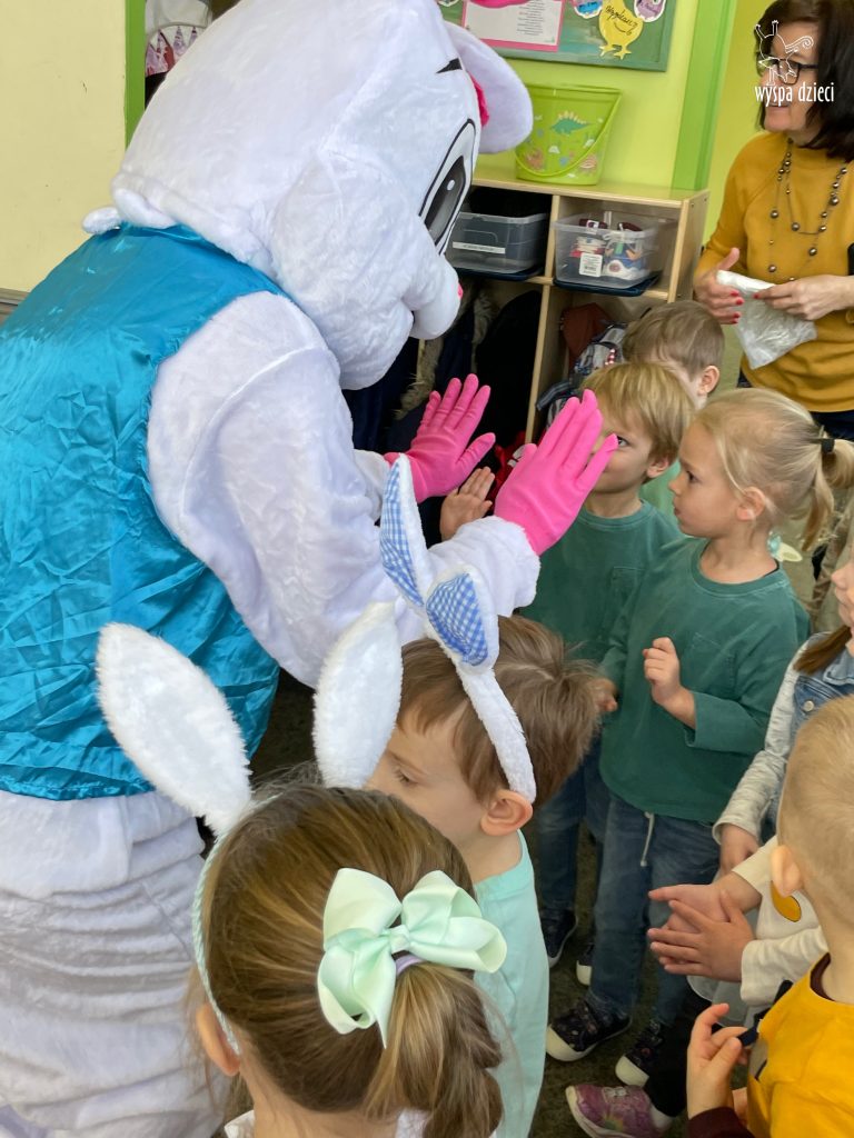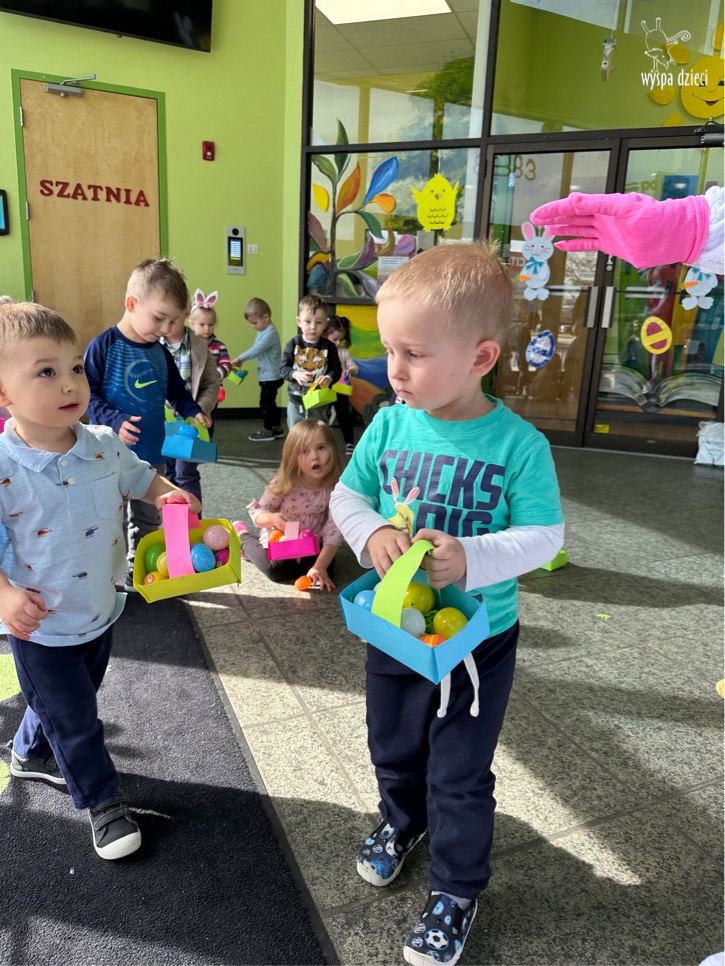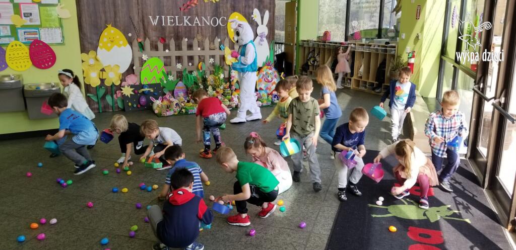 Dziś do naszej Wyspy Dzieci w River Grove przykicał wspaniały, radosny wielkanocny zajączek. Dzieci znalazły ślady zajączka po których maszerowały do głównego korytarza , gdzie czekały na nich jajka niespodzianki . Zajączek odwiedzil każdą grupę. Nasz gość chętnie pozował z dziećmi do zdjęć i z nimi rozmawiał o zbliżających się świętach, a tekże śpiewał piosenki o wiośnie.