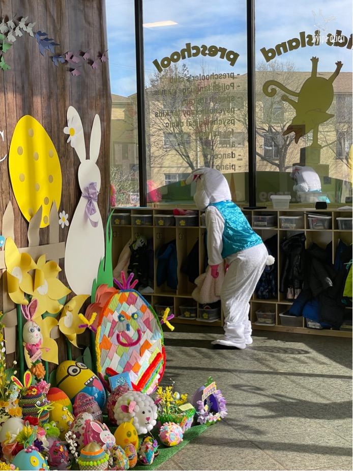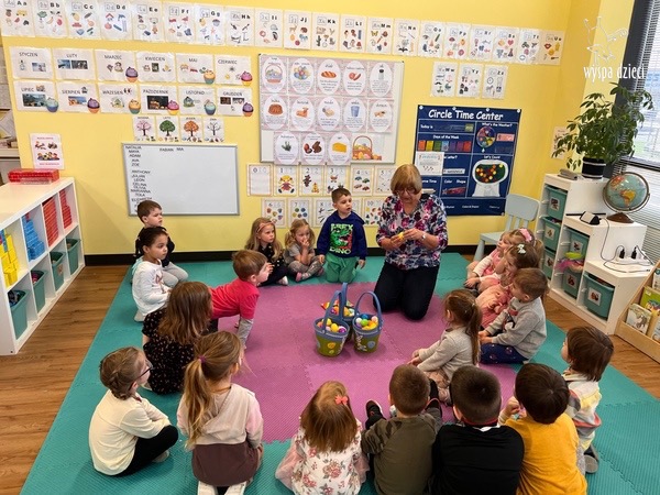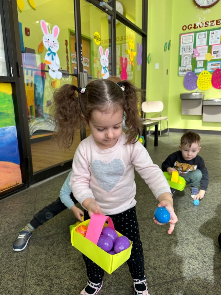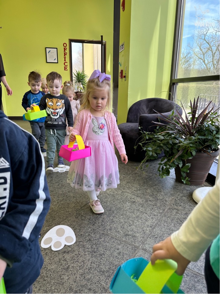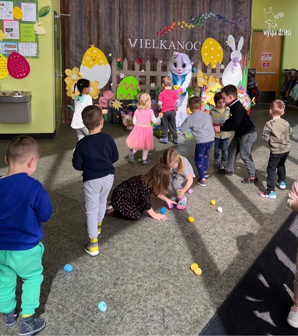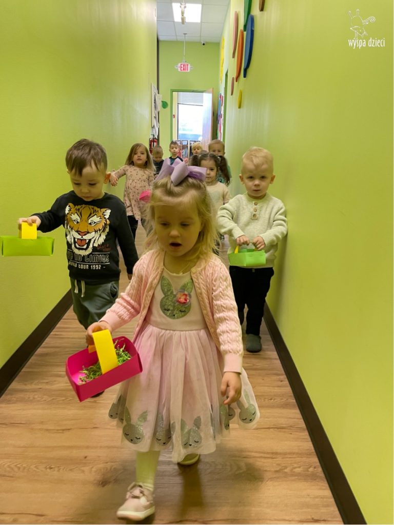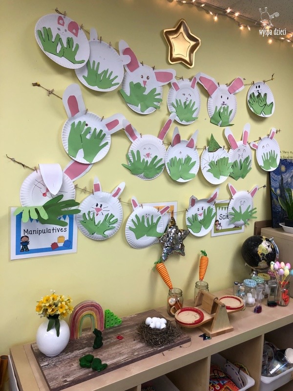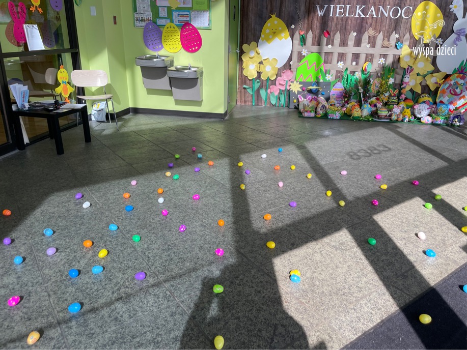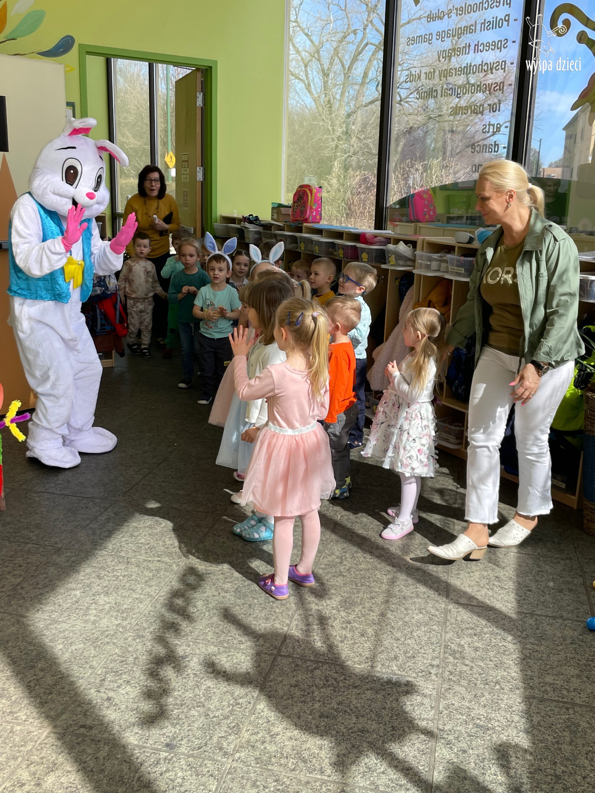 Dziś do naszej Wyspy Dzieci w River Grove przykicał wspaniały, radosny wielkanocny zajączek. Dzieci znalazły ślady zajączka po których maszerowały do głównego korytarza , gdzie czekały na nich jajka niespodzianki . Zajączek odwiedzil każdą grupę. Nasz gość chętnie pozował z dziećmi do zdjęć i z nimi rozmawiał o zbliżających się świętach, a tekże śpiewał piosenki o wiośnie.