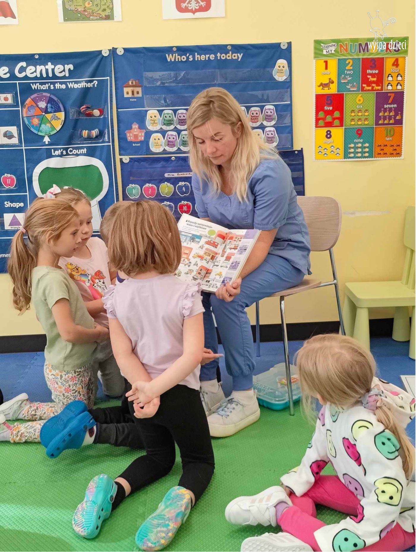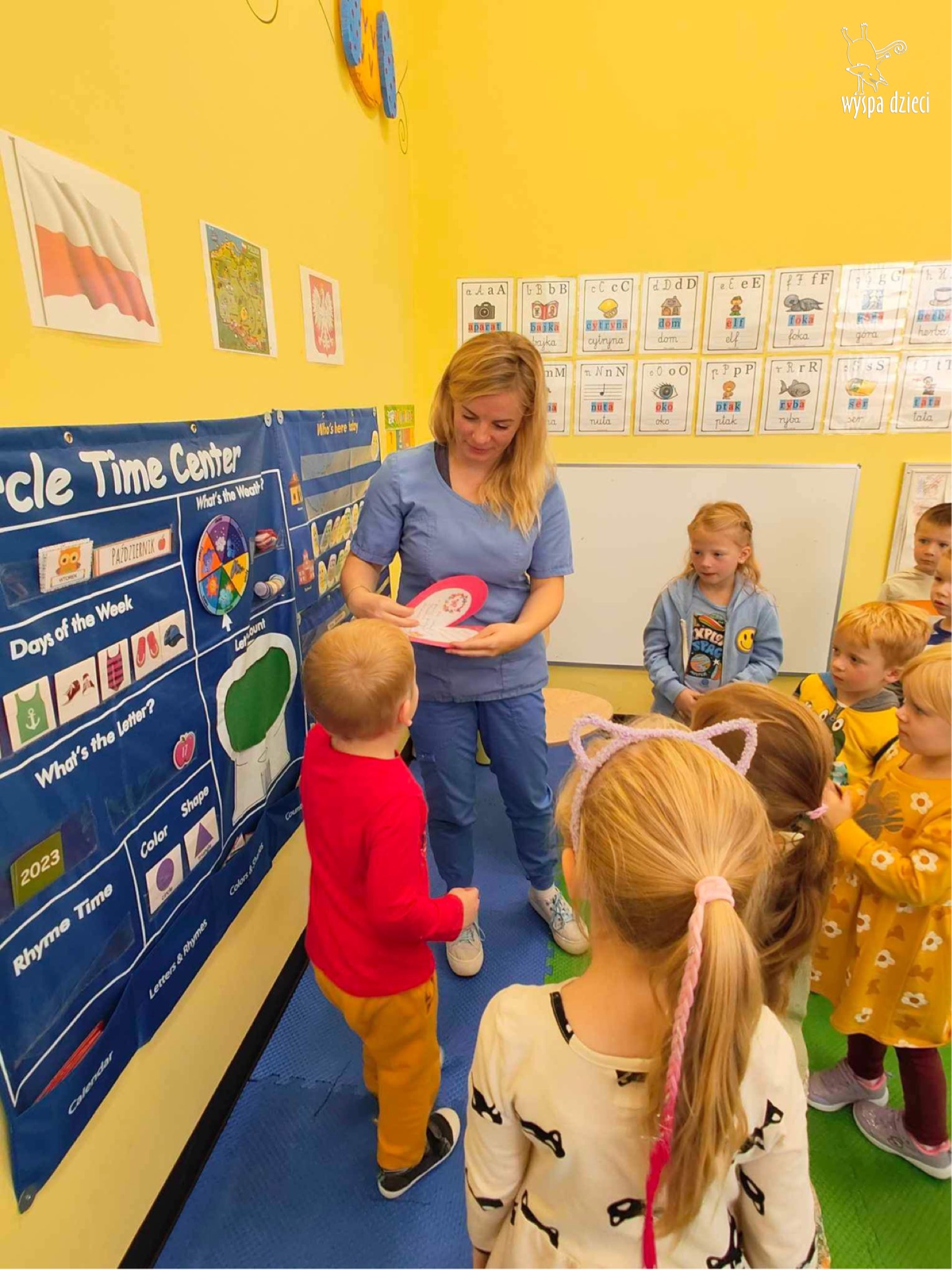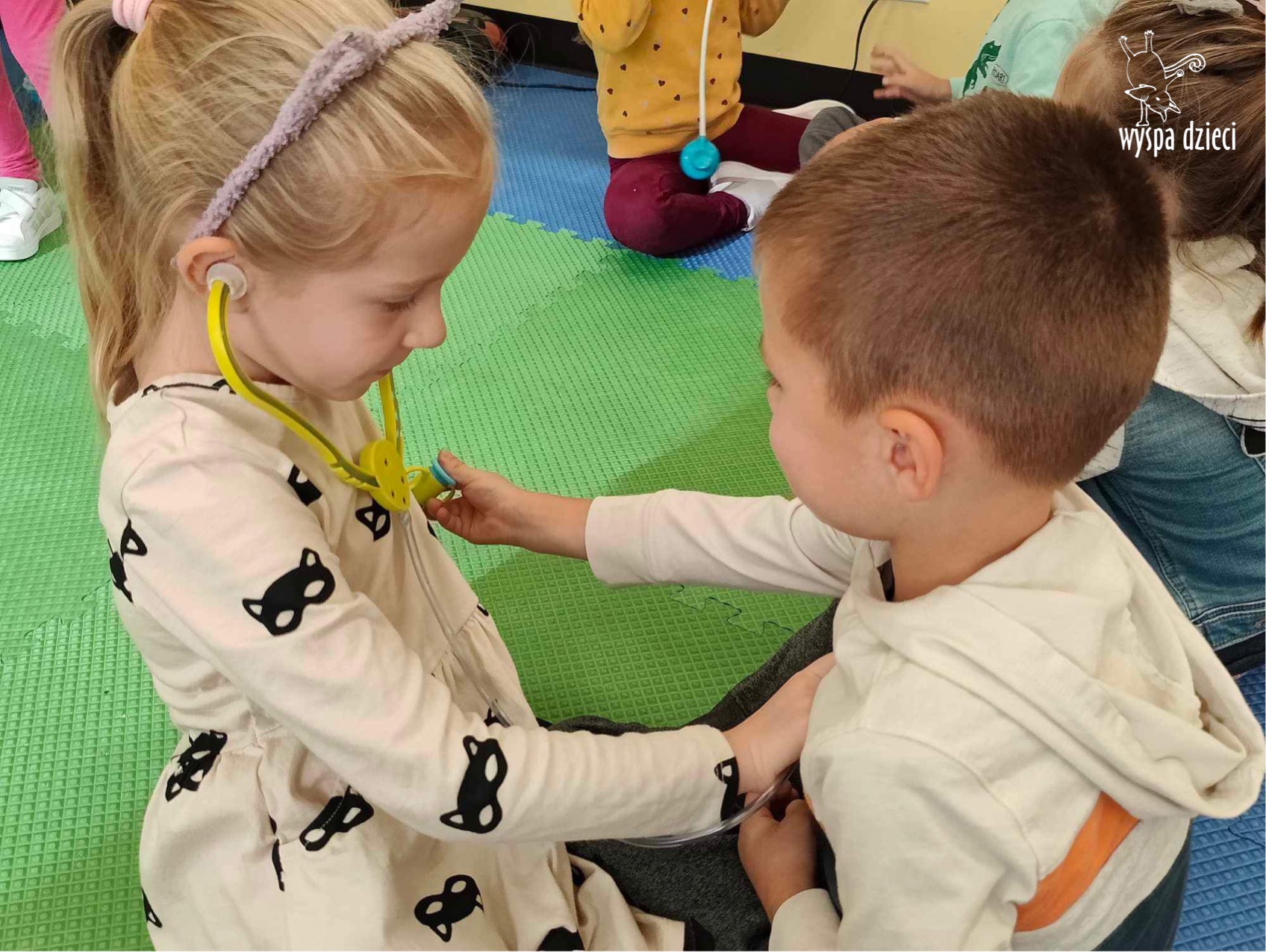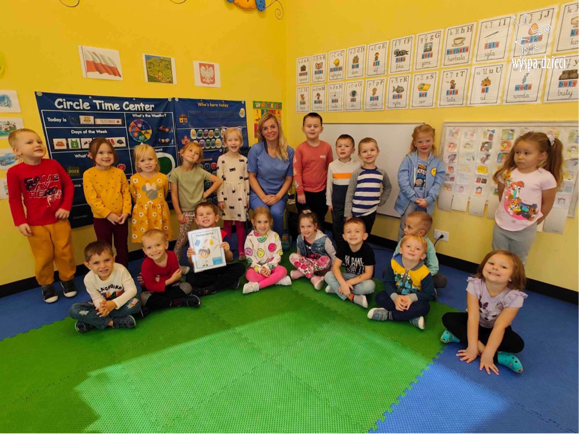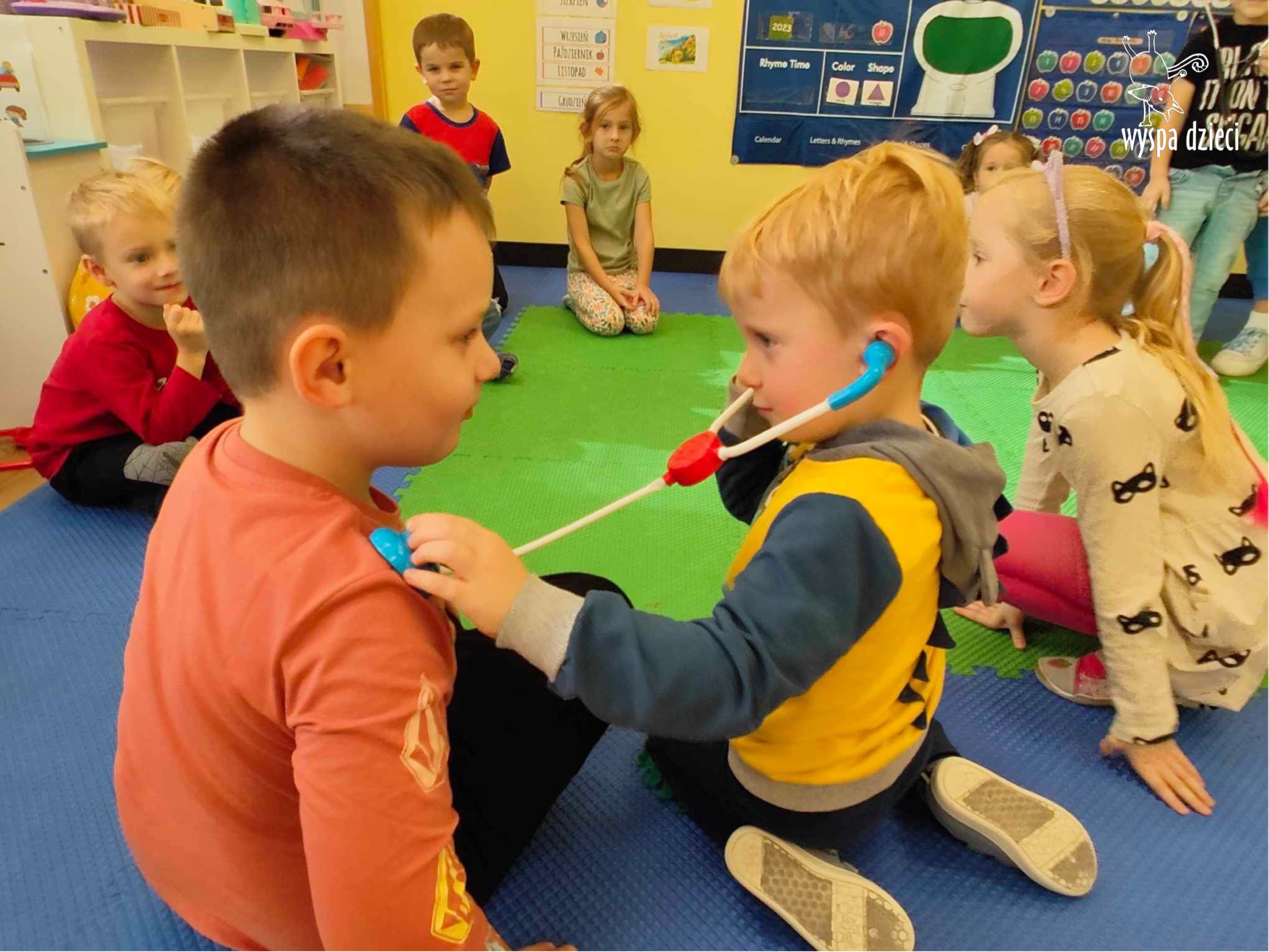 W tym tygodniu na Wyspie Dzieci w River Grove rozmawiamy o zawodach. Z tej okazji grupa Bystrzaków gościła mamę Adrianka. Pani Katarzyna opowiadała o ciekawym zawodzie pielęgniarki, który wykonuje na co dzień. Przyniosła ze sobą kilka przedmiotów, z których korzysta w pracy. Każdy chciał posłuchać bicia swego serca, sprawdzić, czy ma wystarczającą ilość tlenu do oddychania czy też zmierzyć ciśnienie. Na koniec dzieci otrzymały kolorowe plastry “tak na wszelki wypadek”, a pani Kasia laurkę z podziękowaniem za wspaniałe, pouczające spotkanie. Dziękujemy!