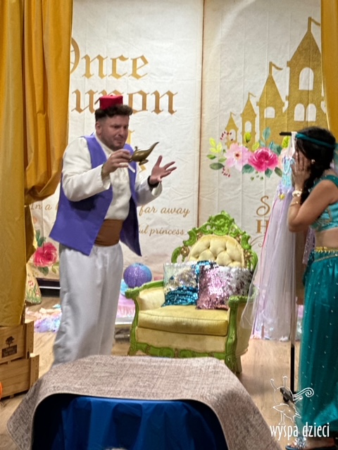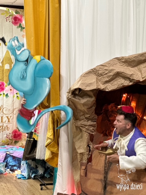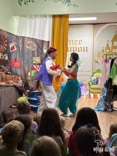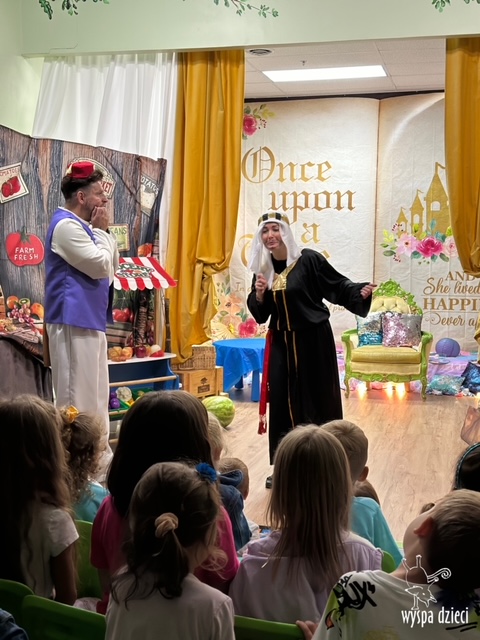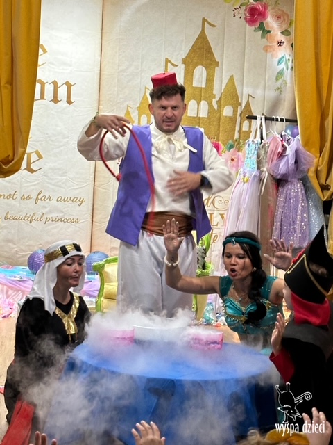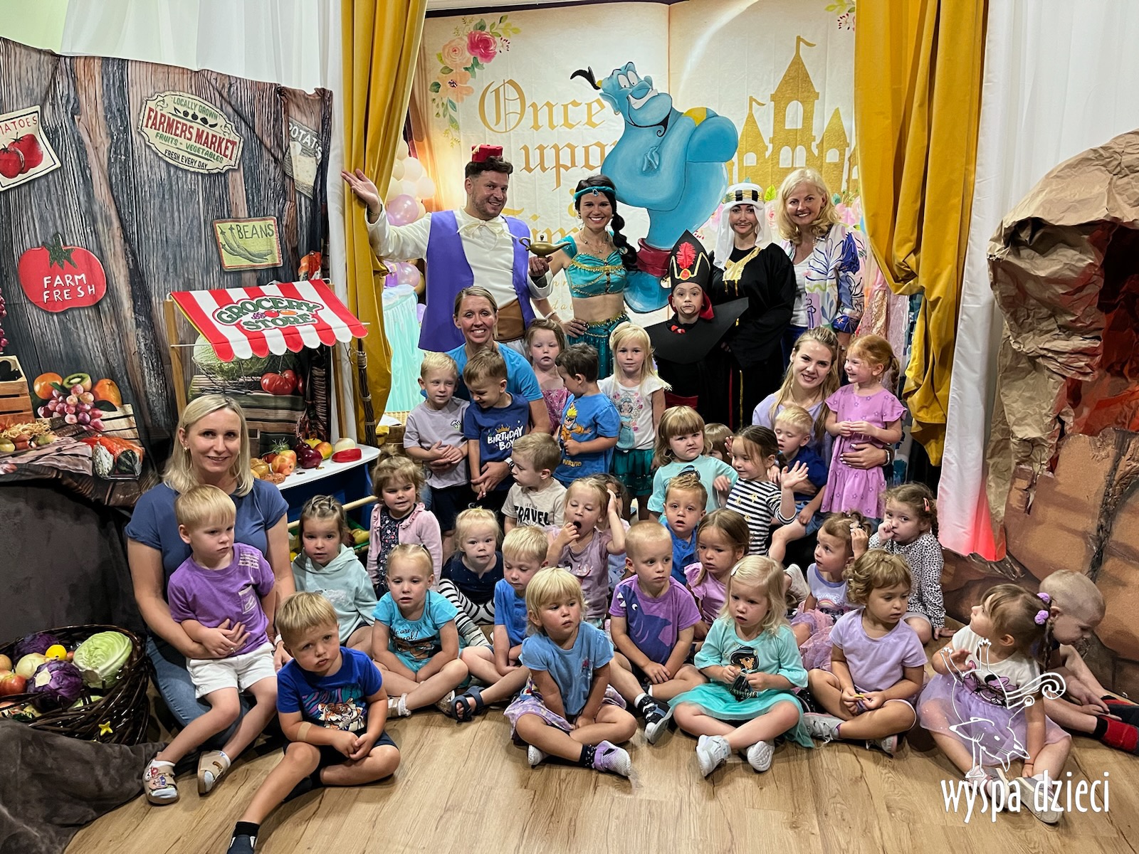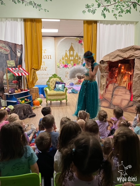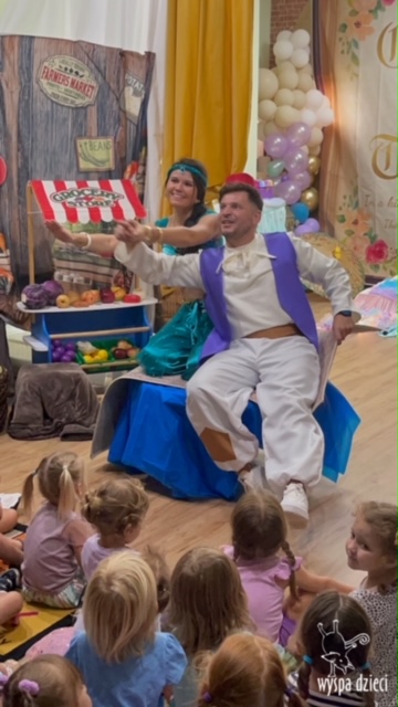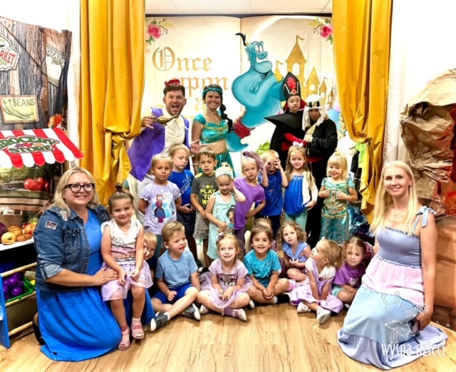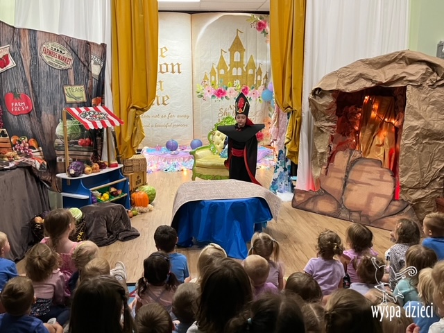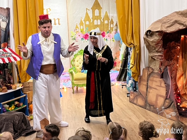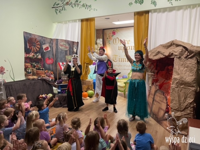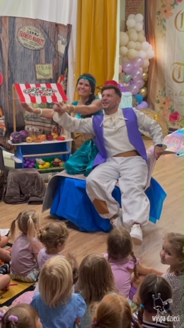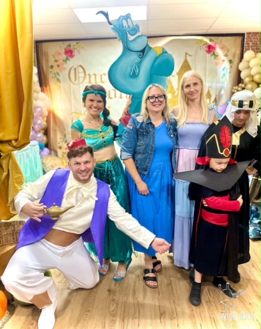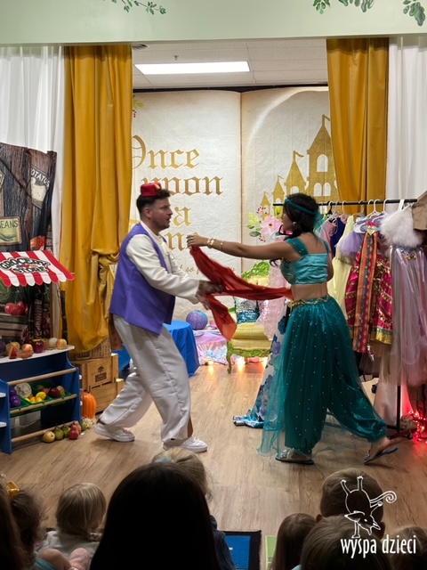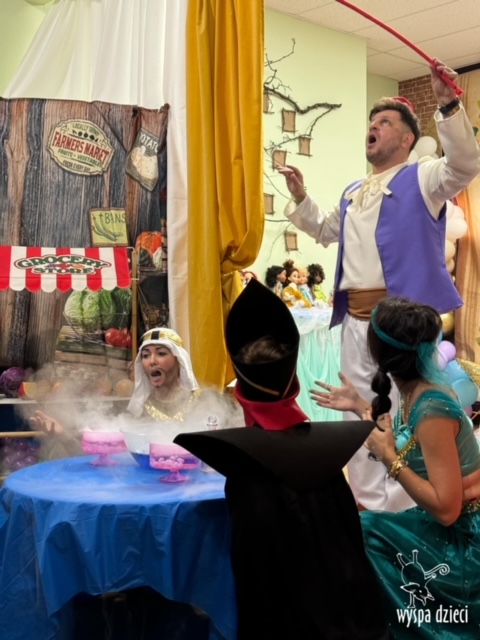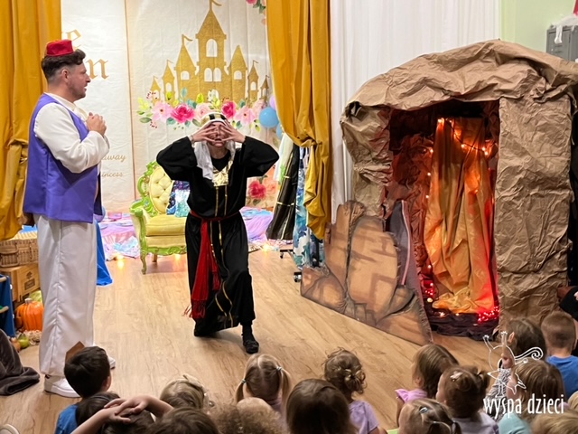 Świat bajek i baśni jest wspaniałym światem, który w sposób niezwykły pobudza wyobraźnie… Tym razem nasze przedszkolaki wybrały się w niezwykłą podróż do krainy Walta Disneya, gdzie poznali losy Aladyna, pięknej księżniczki Jasmine, Dżina i Sułtana Jafara. Tą niezykłą opowieść przedstawiły dla dzieci wychowawczynie grupy Jagódki – pani Karolina ( Jasmine) , pani Madzia ( Sułtan) , gościnnie wystąpił Super Tomasz, który wcielił się w rolę Aladyna. W przedstawieniu wziął też udział Jaś z grupy Jagódki, który był pomocnikiem Sułtana Jafara. Po obejrzeniu pięknej bajki, dzieci wzięły udział w pokazie magicznych sztuczek razem z bohaterami bajki. “Dżinie, dżinie, dżinie , otwórz nam magiczną skrzynię” -tak brzmiało magiczne zaklęcie naszych przedszkolaków. Ten dzień pozostanie na długo w pamięci naszych przedszkolaków…