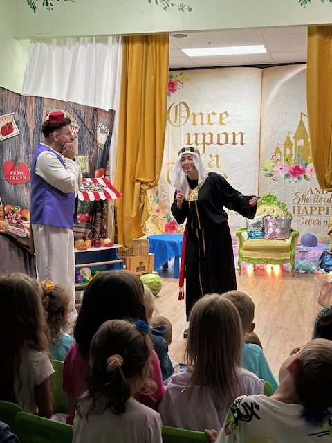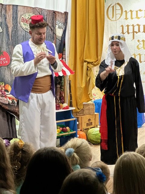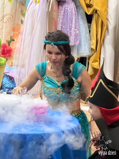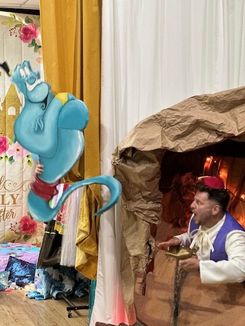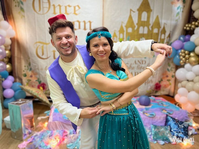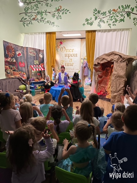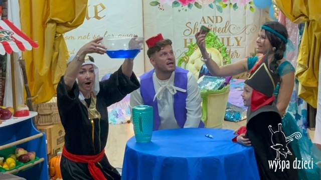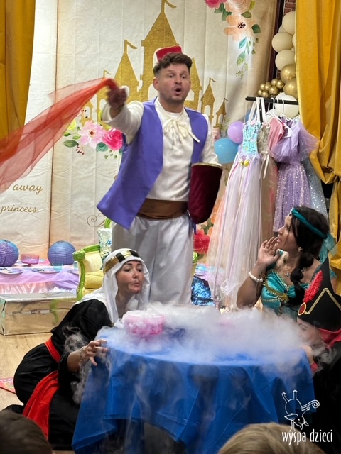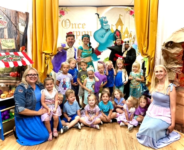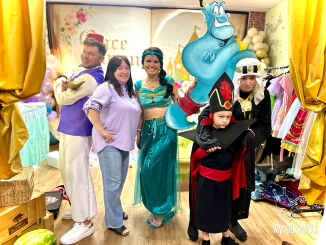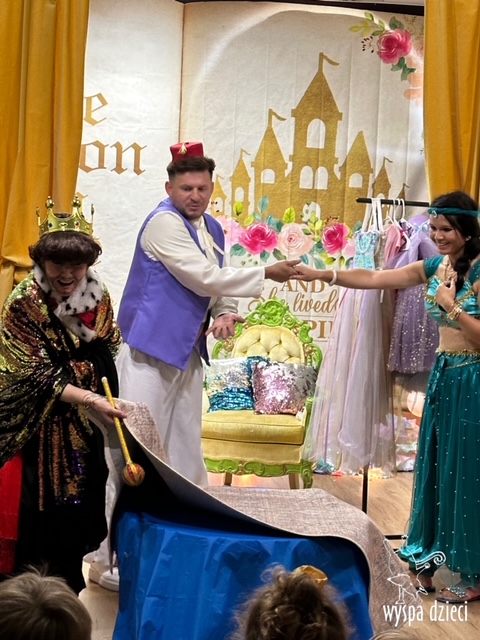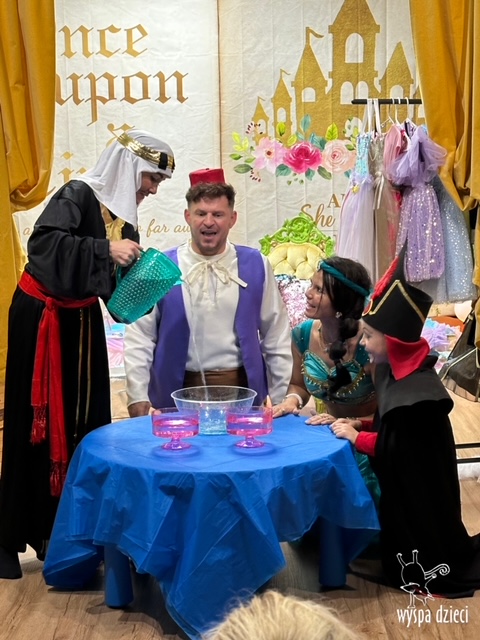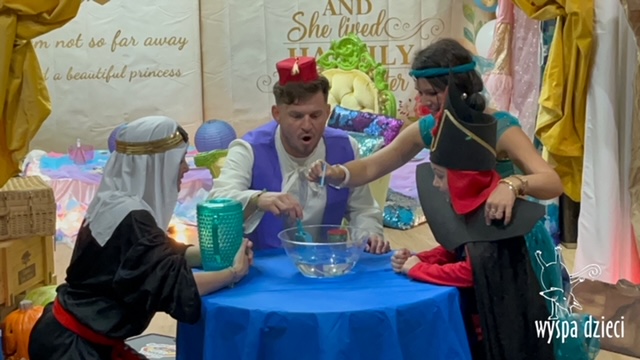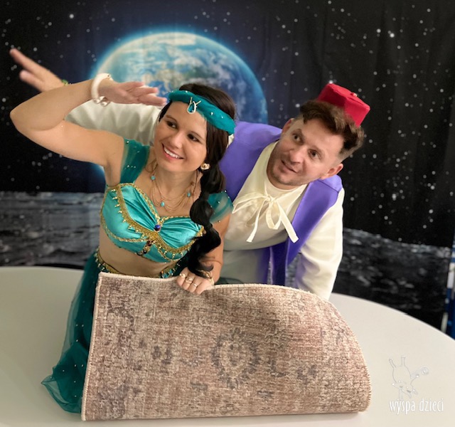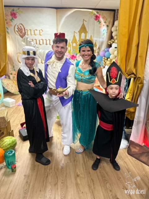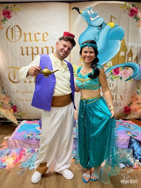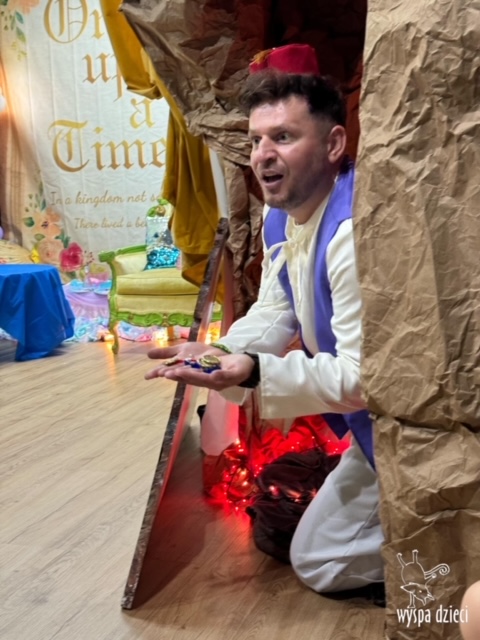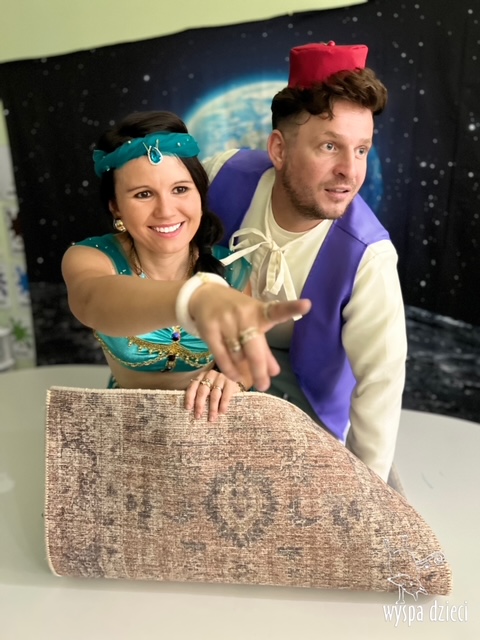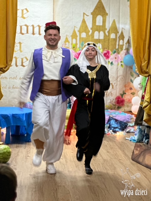 Świat bajek i baśni jest wspaniałym światem, który w sposób niezwykły pobudza wyobraźnie… Tym razem nasze przedszkolaki wybrały się w niezwykłą podróż do krainy Walta Disneya, gdzie poznali losy Aladyna, pięknej księżniczki Jasmine, Dżina i Sułtana Jafara. Tą niezykłą opowieść przedstawiły dla dzieci wychowawczynie grupy Jagódki – pani Karolina ( Jasmine) , pani Madzia ( Sułtan) , gościnnie wystąpił Super Tomasz, który wcielił się w rolę Aladyna. W przedstawieniu wziął też udział Jaś z grupy Jagódki, który był pomocnikiem Sułtana Jafara. Po obejrzeniu pięknej bajki, dzieci wzięły udział w pokazie magicznych sztuczek razem z bohaterami bajki. “Dżinie, dżinie, dżinie , otwórz nam magiczną skrzynię” -tak brzmiało magiczne zaklęcie naszych przedszkolaków. Ten dzień pozostanie na długo w pamięci naszych przedszkolaków…