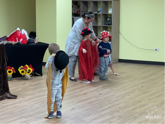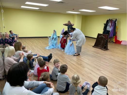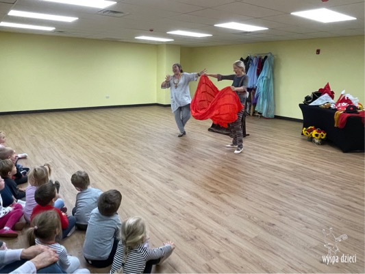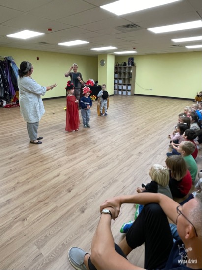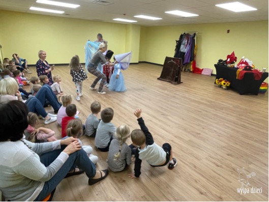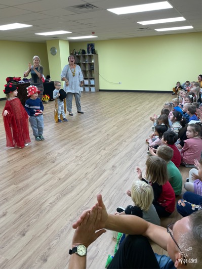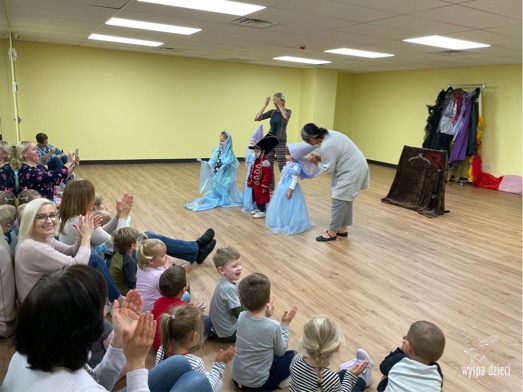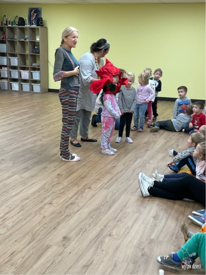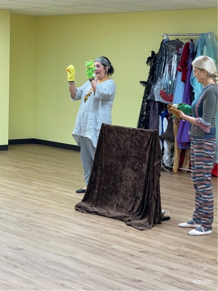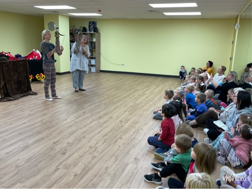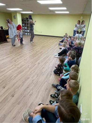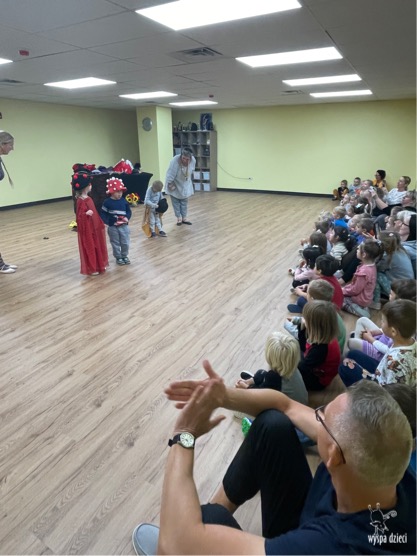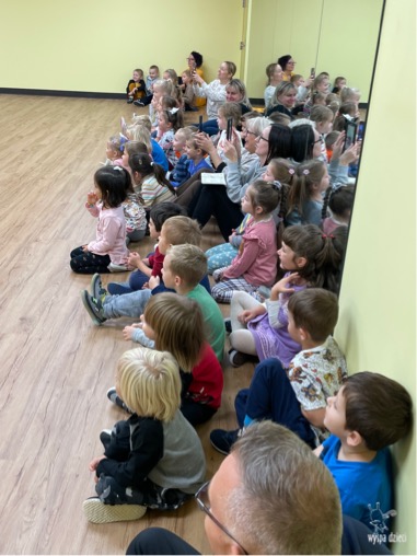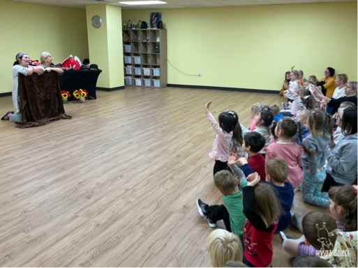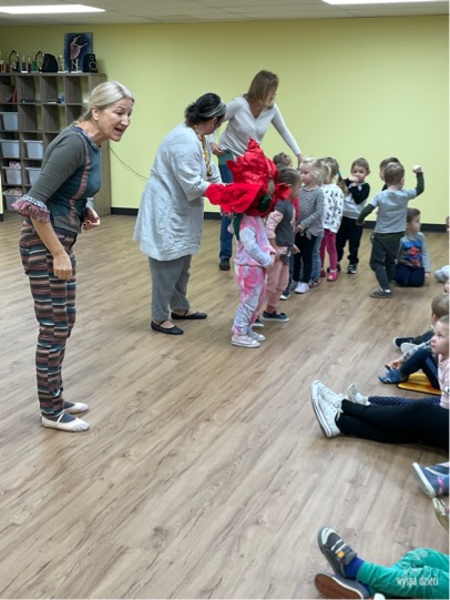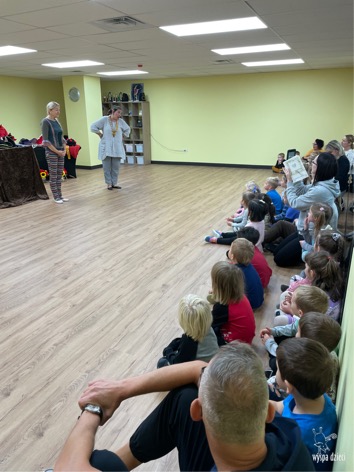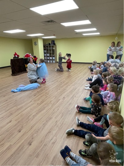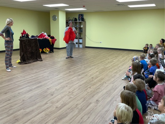 W grupach : Misie, Krasnale, Smerfy, Bystrzaki, Podroznicy oraz Poszukiwacze radosci dzisiaj nie bylo konca. Obie Panie opowiedzialy dzieciom o teatrze, zapoznaly ich ze slownictwem teatralnym takim jak : scena, widownia, aktor, choreografia, rekwizyty, stroje , pacynki i wiele innych. Zamienily nasza sale gimnastyczna w teatr.