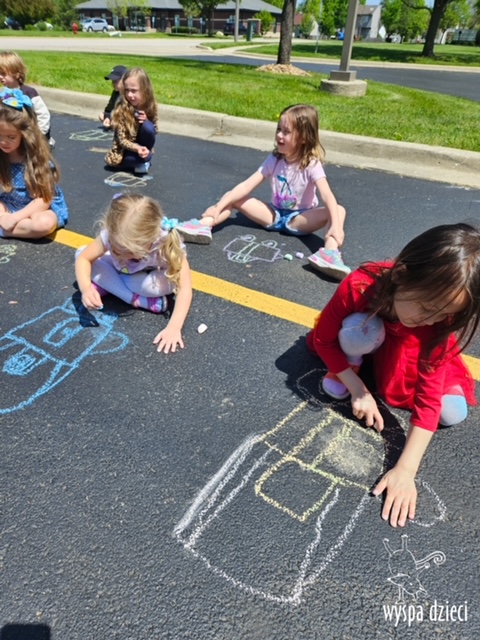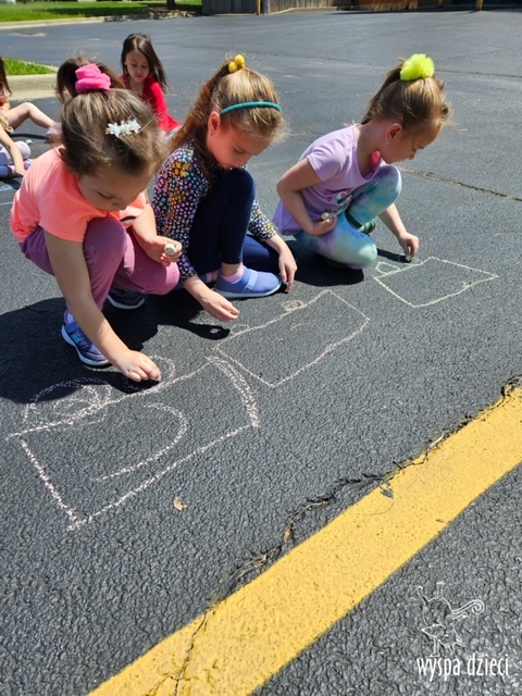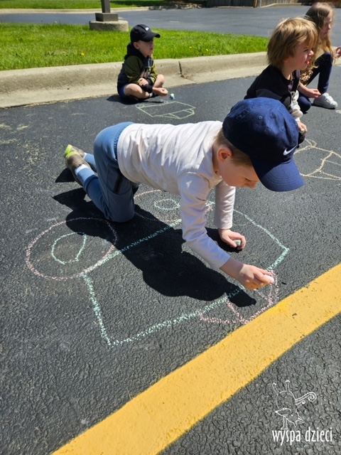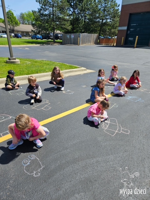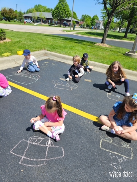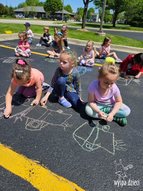 Zajęcia dydaktyczne na świeżym powietrzu? Dlaczego nie! Odkrywcy z Algonquin postanowili skorzystać z pięknej pogody i pouczyć się na zewnątrz. Za salę lekcyjną posłużył parking na tyłach szkoły, a papier i kredki zastąpiła kreda! Uczniowie poznali środki transportu naziemnego, powietrznego oraz wodnego, wykonali rysunki pojazdów wykorzystując figury geometryczne oraz wykonali kilka ciekawych eksperymentów z wodą. Zresztą,  zobaczcie sami!