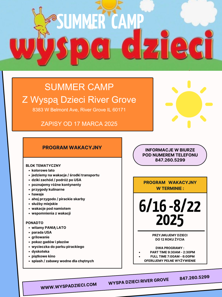 Poniżej przesyłamy wakacyjną gazetkę Wyspy Dzieci River Grove z dokładnymi informacjami.