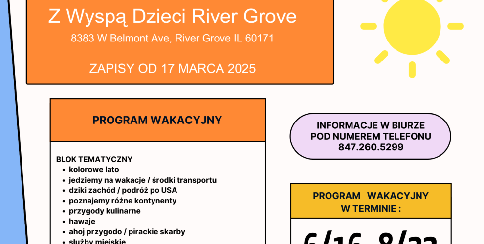 Poniżej przesyłamy wakacyjną gazetkę Wyspy Dzieci River Grove z dokładnymi informacjami.