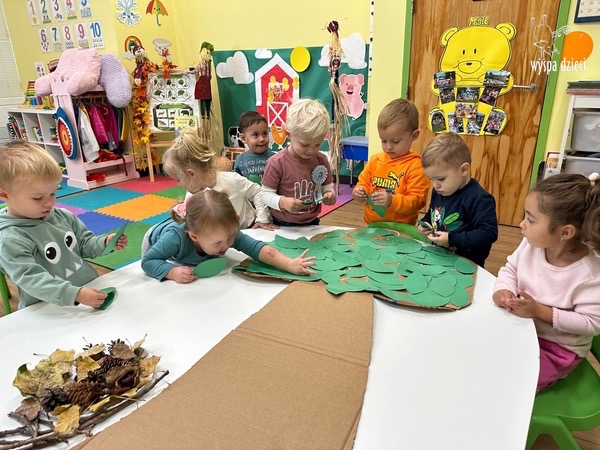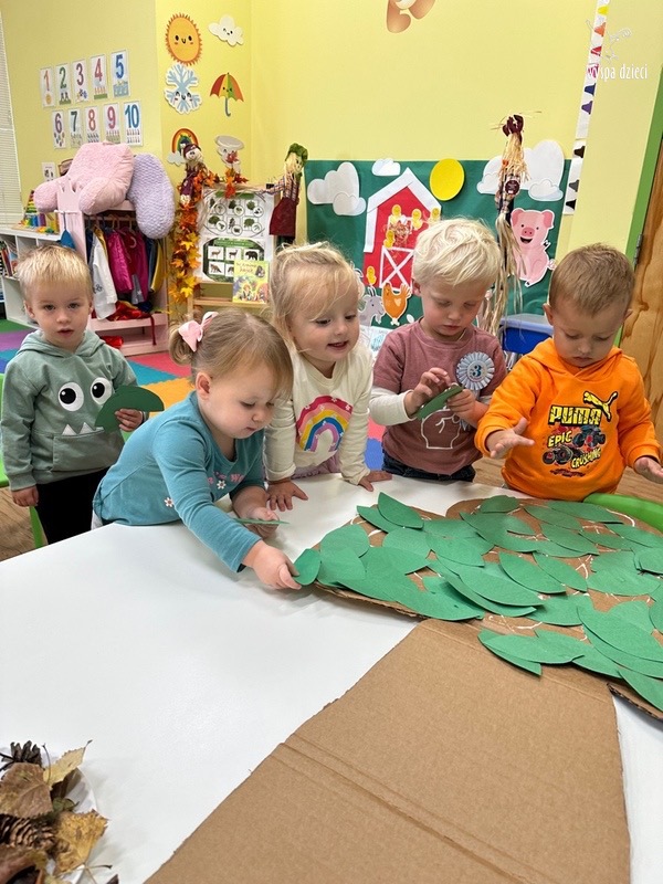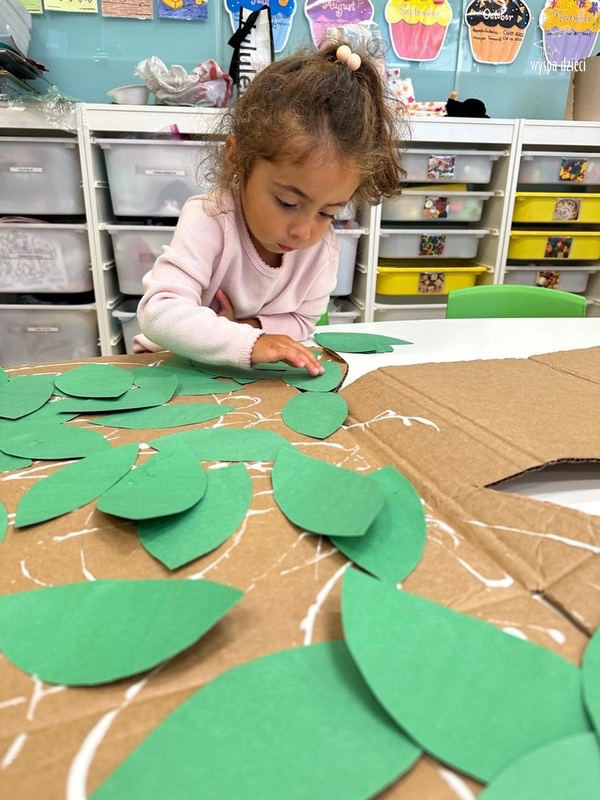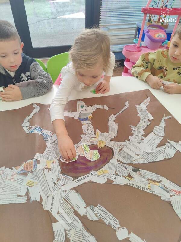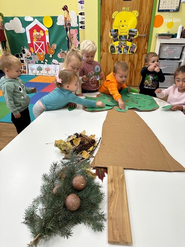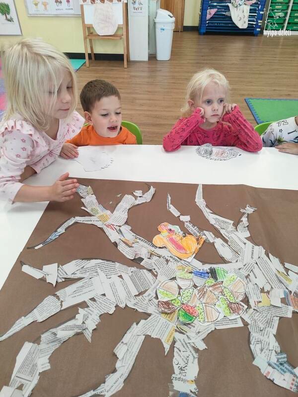 W naszym przedszkolu tego dnia odbyły się zajęcia i zabawy związane z tematyką drzew. Dzieci poznały między innymi budowę drzewa, etapy jego wzrostu, nauczyły się odróżniać drzewa liściaste od iglastych, nazywać poszczególne drzewa i jego owoce- np. dąb- żołędzie, kasztanowiec- kasztany, jabłoń- jabłka itp. Dzieci wykonały piękne prace plastyczne, których bohaterem było oczywiście drzewo.