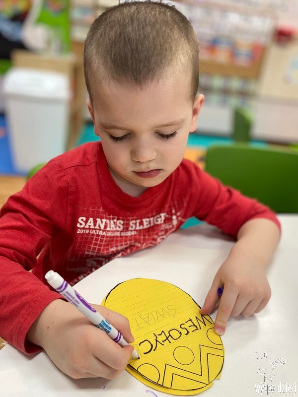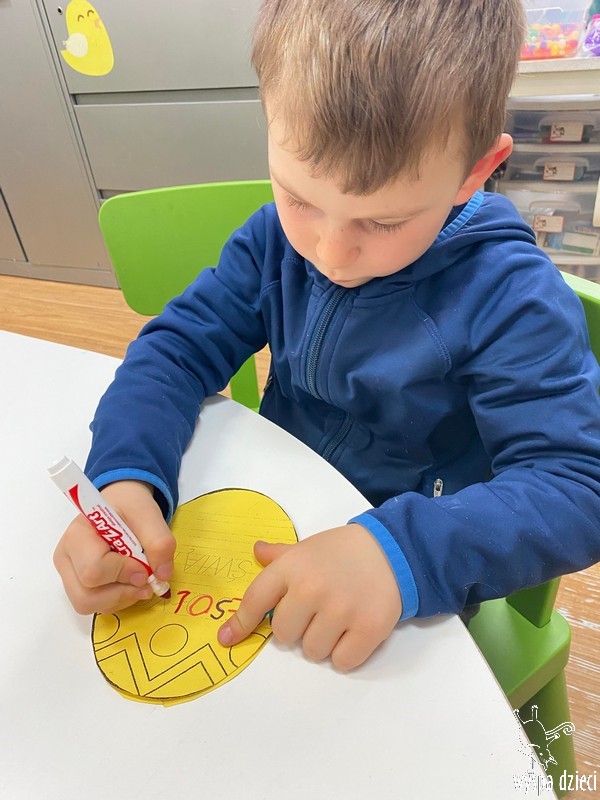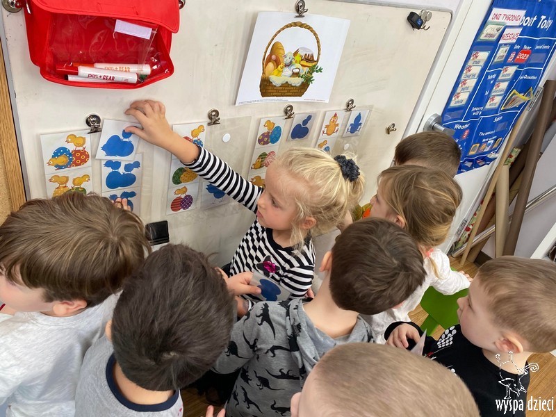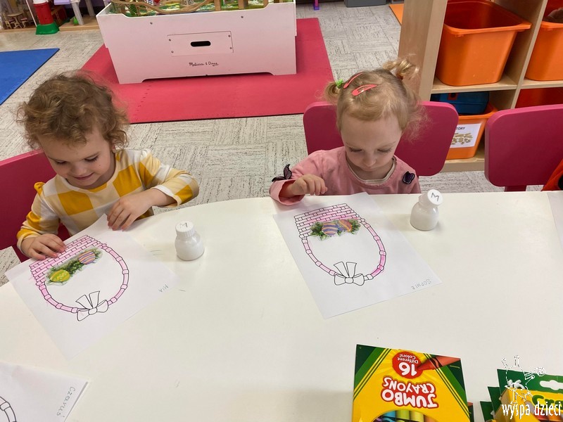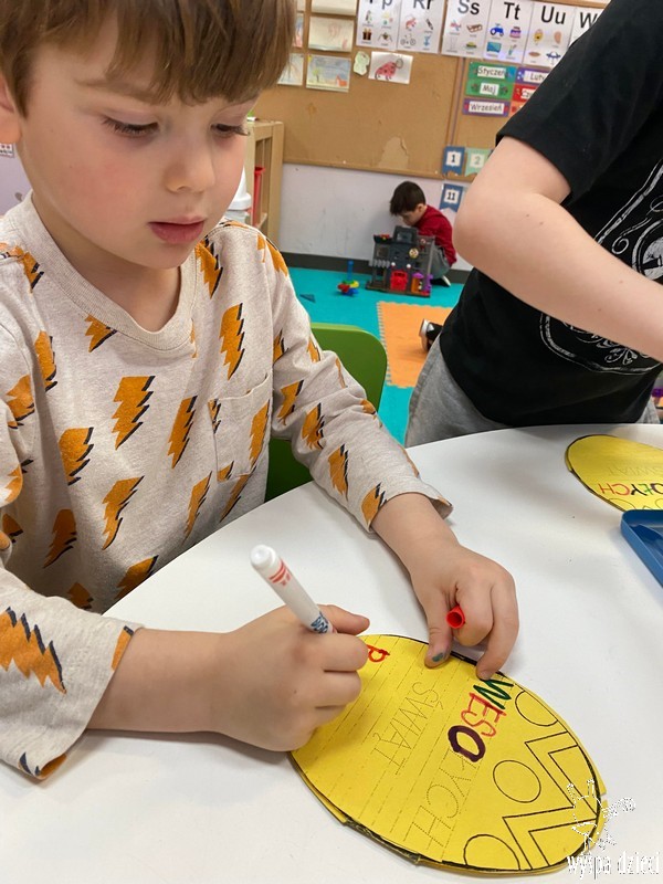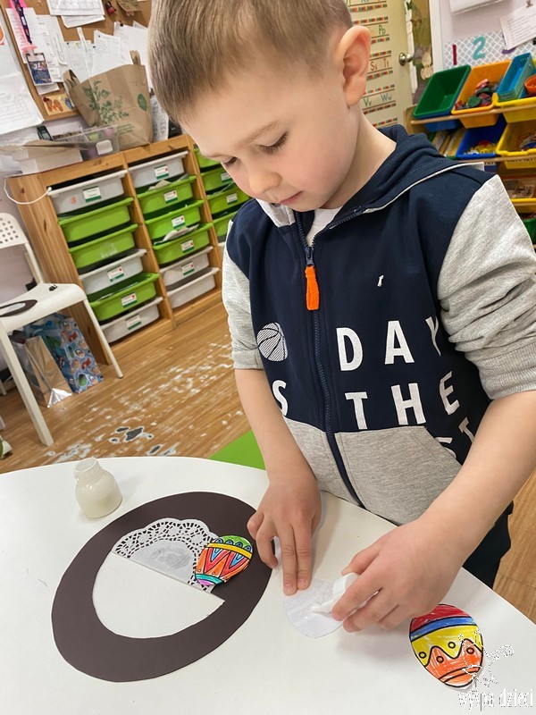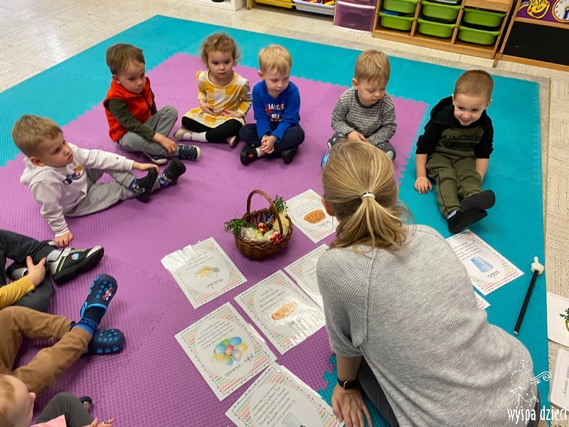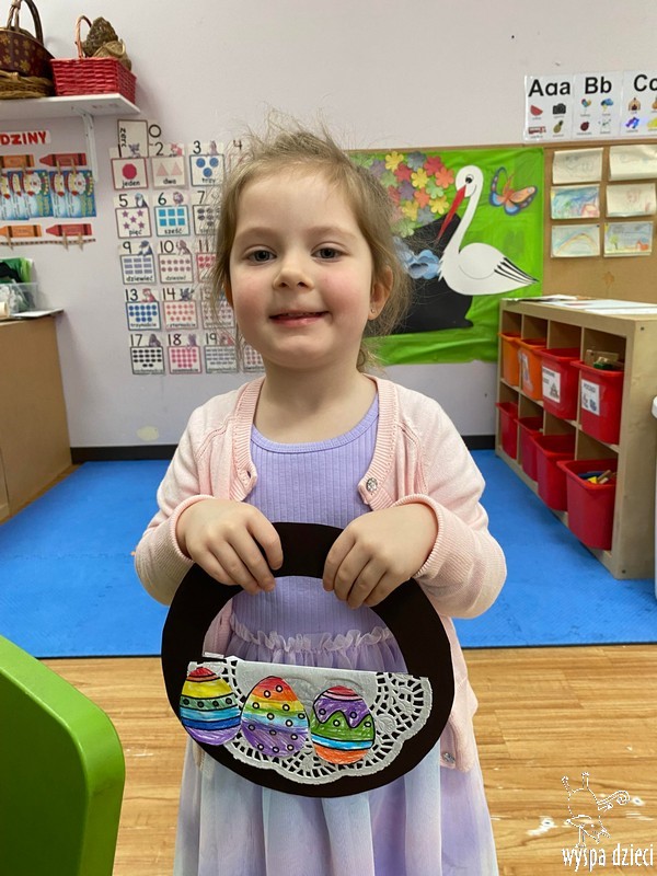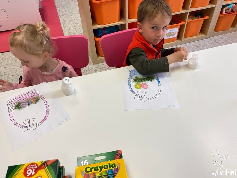 Zanim jednak nas odwiedził przedszkolaki rozmawiały o zwyczajach i tradycjach związanych z Wielkanocą, zapoznały się z wielkanocnymi symbolami, a także uczyły się przygotowywać świąteczny koszyczek.