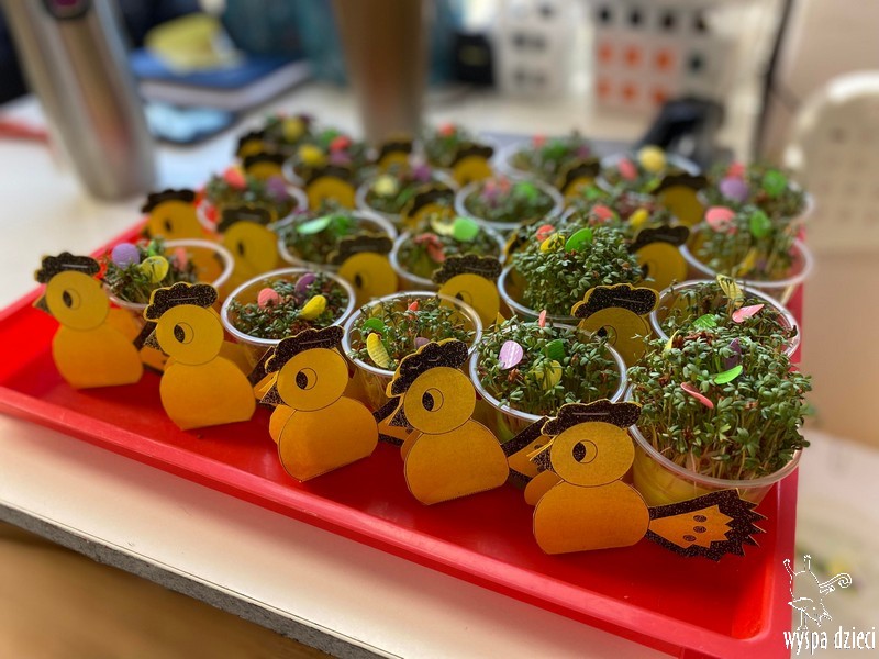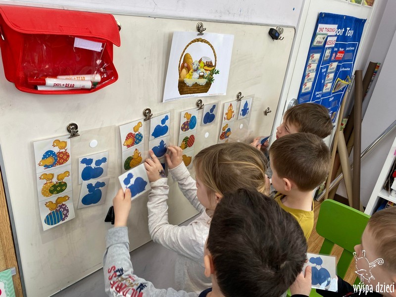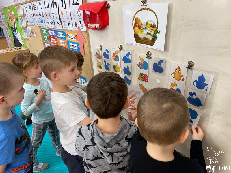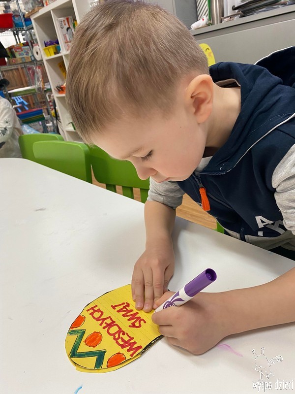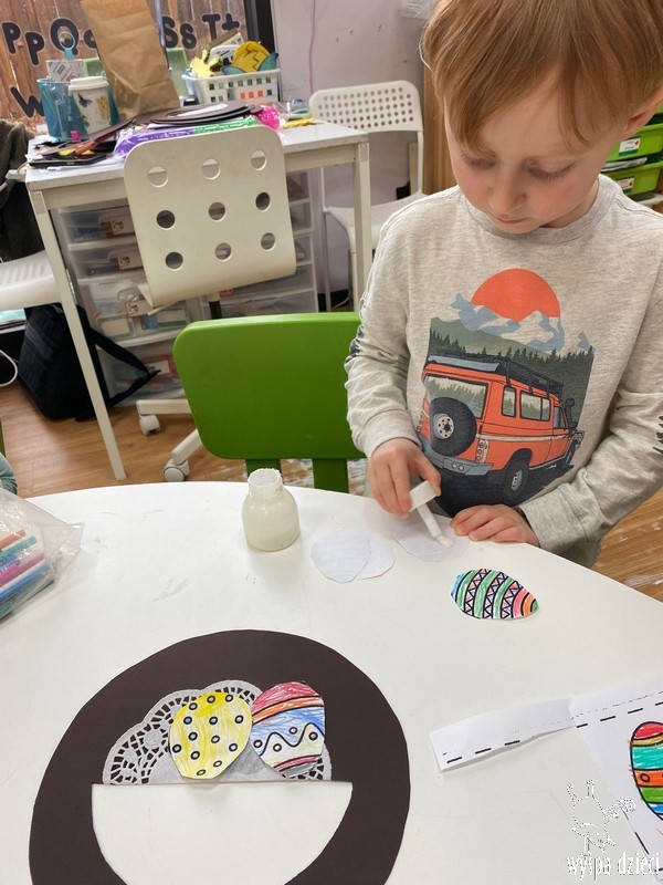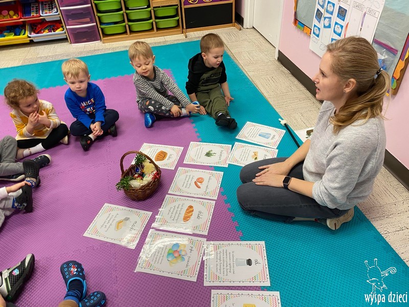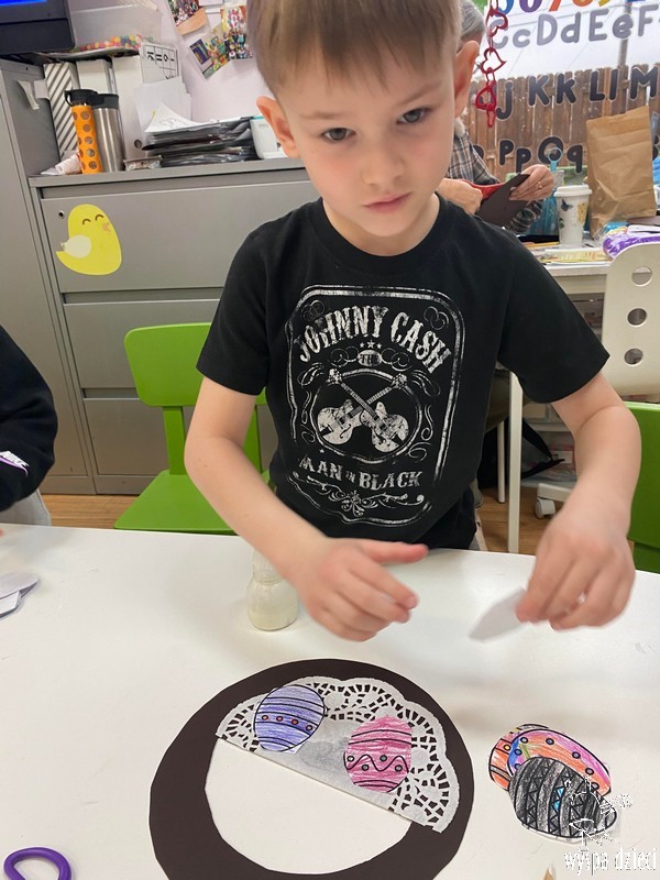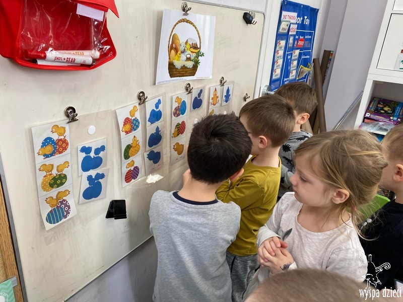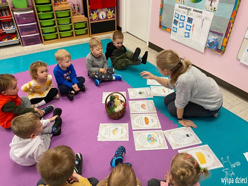 Zanim jednak nas odwiedził przedszkolaki rozmawiały o zwyczajach i tradycjach związanych z Wielkanocą, zapoznały się z wielkanocnymi symbolami, a także uczyły się przygotowywać świąteczny koszyczek.