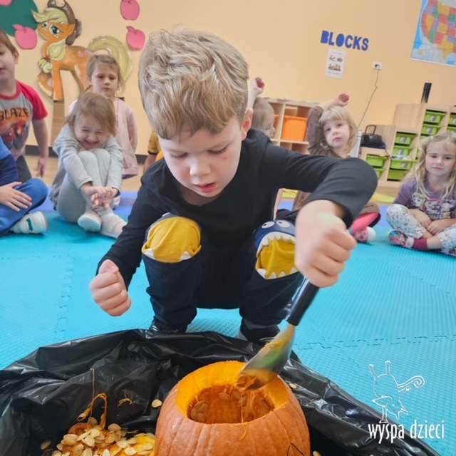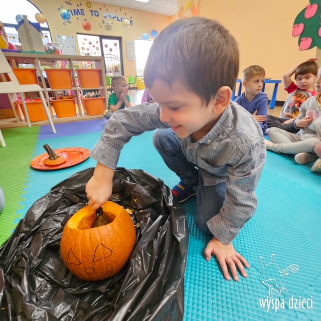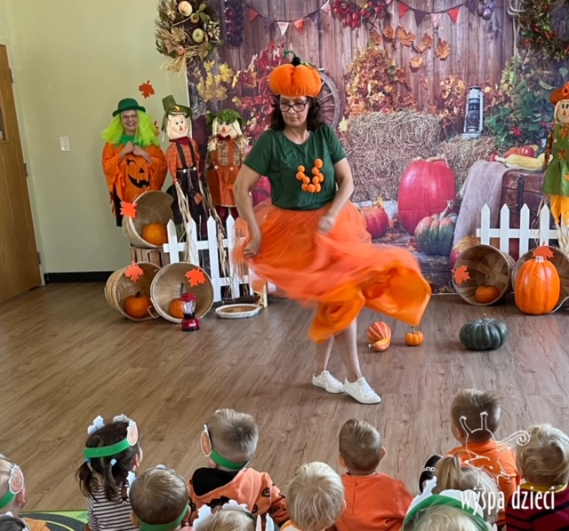 Dzisiaj w naszym przedszkolu był dzień pomarańczowy, bo to był dzień dyniowy! Dzisiaj nasze przedszkolaki świętowały Dzień Dyni! Z tej okazji nasze maluchy obejrzały przedstawienienie o dwóch dyniach – jednej tej zdrowej, a drugiej tej – halloweenowej! Dziękujemy Paniom z Odkrywców za przygotowanie wspaniałego przedstawienia dla naszych kochanych wyspowiczów. Przedszkolaki miały okazję także spróbować pysznego ciasta dyniowego oraz wraz z naszymi dyniami wejść w haloweenowy klimat… a jutro… ciąg dalszy świetnej zabawy!