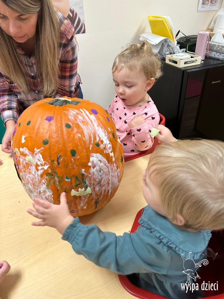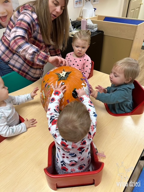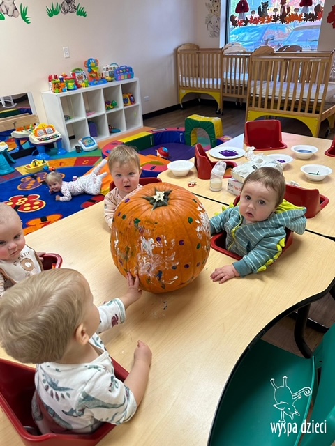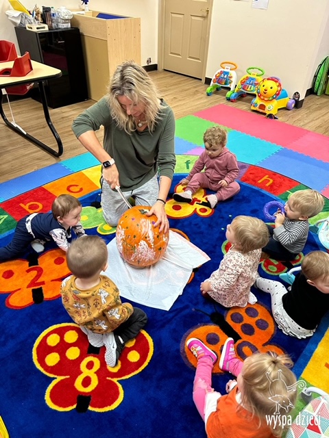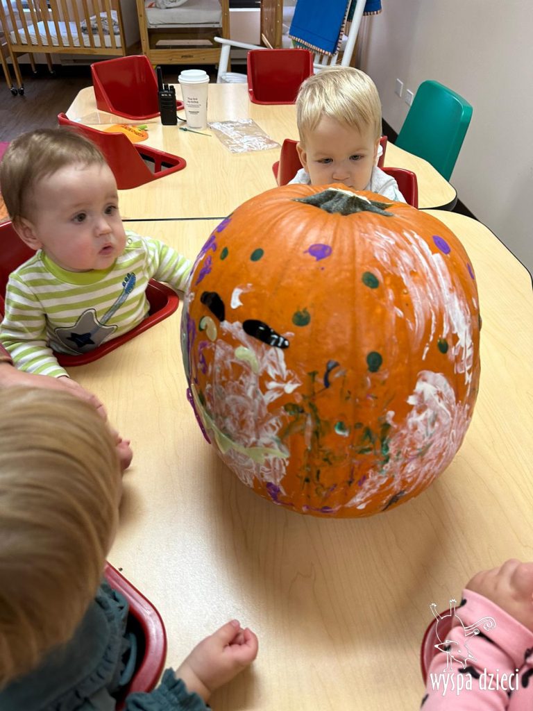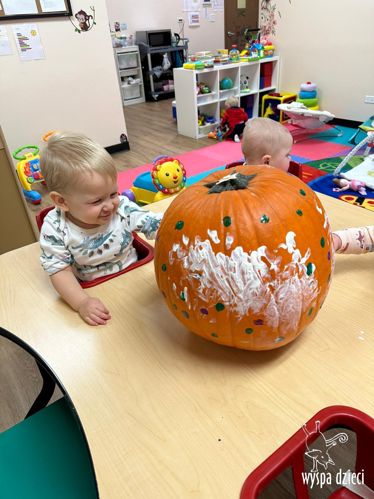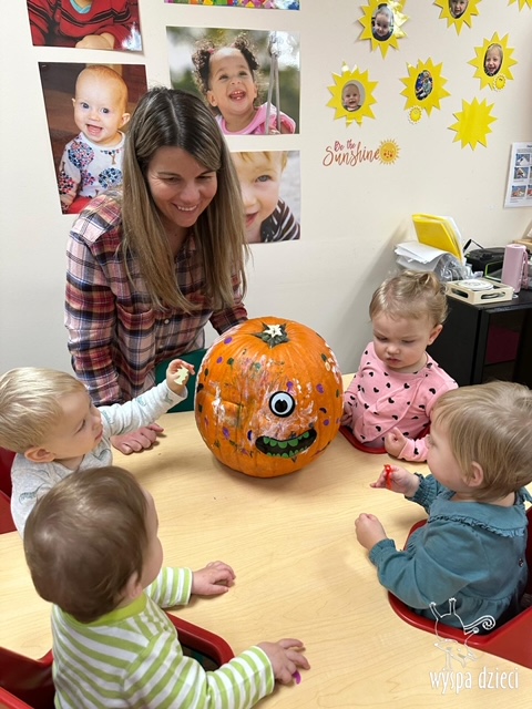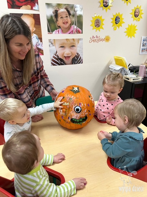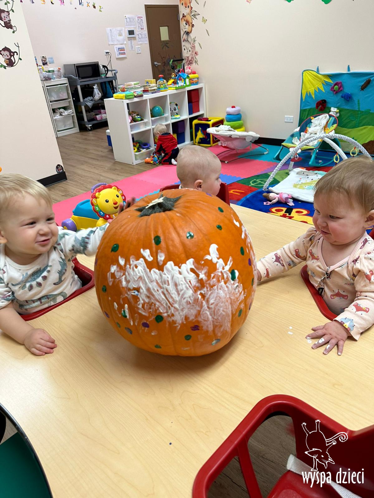 Dzisiaj na Wyspie Dzieci w Algonquin obchodziliśmy Dzień Dyni! Był to dzień wesoły i bardzooo pomarańczowy! Święto dyni celebrowały także najmłodsze przedszkolaki z Wyspy Dzieci – Słoneczka. Maluchy wykonały swoją własną dynię, dekorując ją swoimi malutkim rączkami. Maluszki miały okazję wysłuchać także bajeczki o dyni i pooglądać kolorowe, dyniowe obrazki. Słoneczka wzięły również udział w dyniowym przedstawieniu przygotowanym przez grupę Odkrywców.