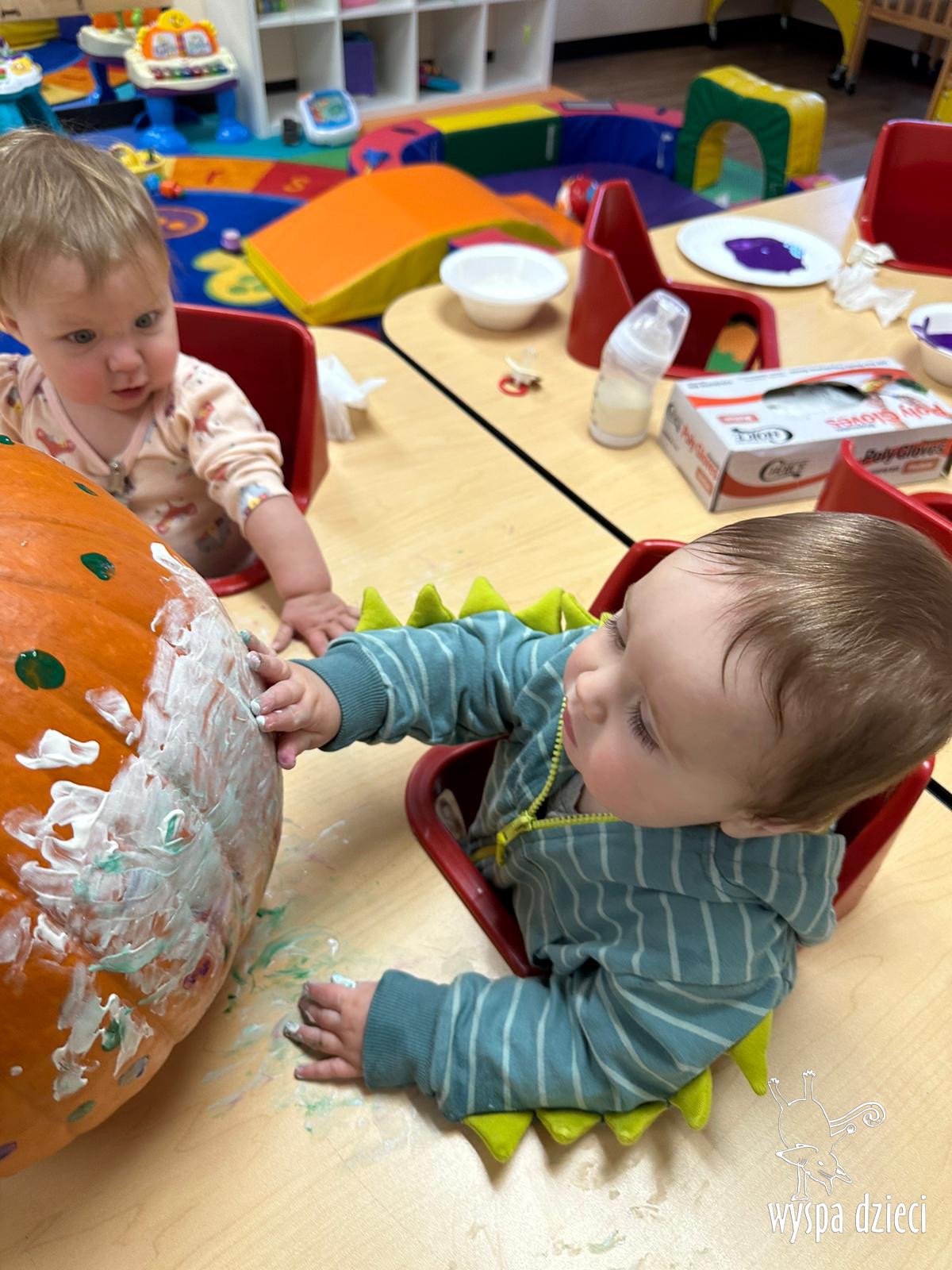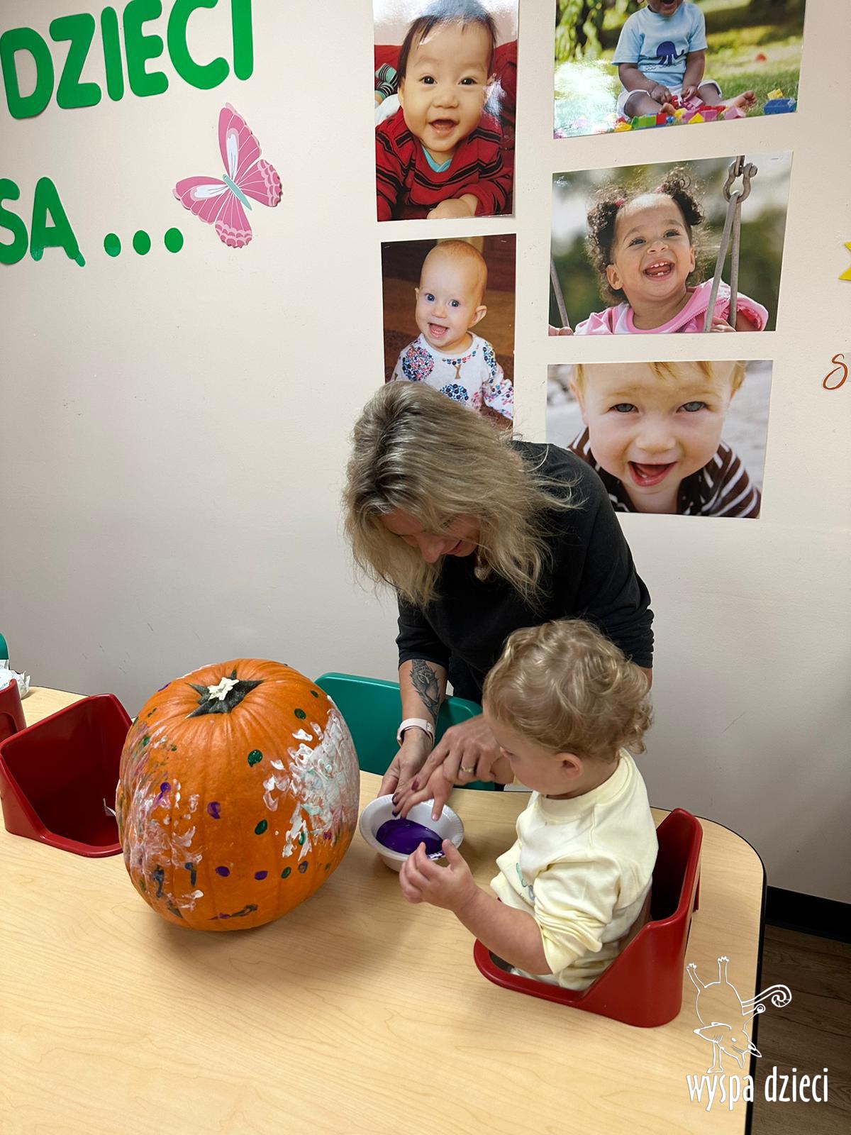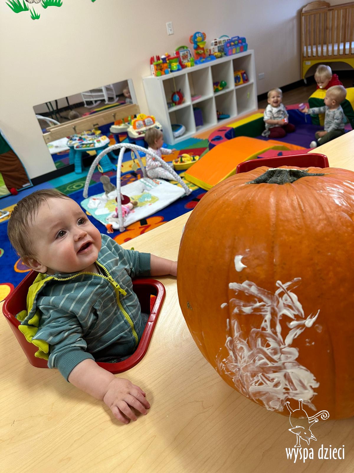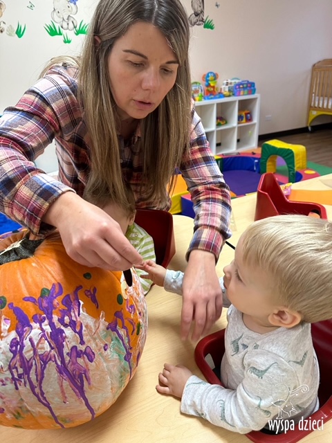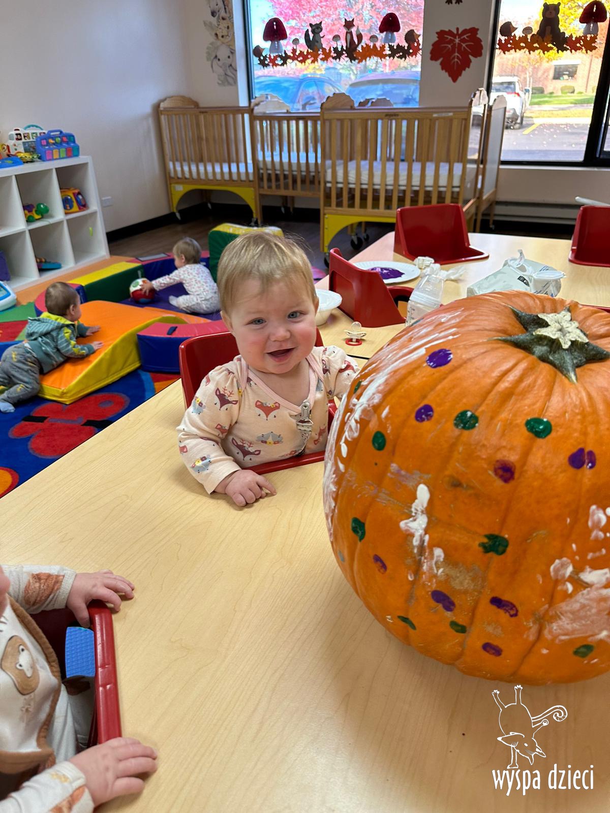 Dzisiaj na Wyspie Dzieci w Algonquin obchodziliśmy Dzień Dyni! Był to dzień wesoły i bardzooo pomarańczowy! Święto dyni celebrowały także najmłodsze przedszkolaki z Wyspy Dzieci – Słoneczka. Maluchy wykonały swoją własną dynię, dekorując ją swoimi malutkim rączkami. Maluszki miały okazję wysłuchać także bajeczki o dyni i pooglądać kolorowe, dyniowe obrazki. Słoneczka wzięły również udział w dyniowym przedstawieniu przygotowanym przez grupę Odkrywców.