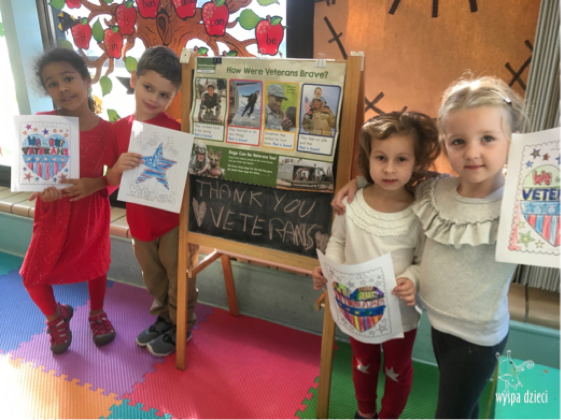 Dzisiaj, czyli 11 listopada, nasi nauczyciele wszystkich grup Wyspy Dzieci w Schiller Park przekazali swoim przedszkolakom najważniejsze informacje o Polsce, symbolach polskich tj godło, flaga, hymn, oraz o tym jak Polska ciężko walczyła aby przetrwać i ponownie zaistnieć na mapie świata . Starsze grupy rozmawiały również o Veteranach, ponieważ dzisiaj jest również ich Święto. Grupa Wynalazców wykonała również piękne laurki, które Pani Sara – wychowawczyni tej grupy, przekazała bezpośrednio w ręce Veteranow. Mamy nadzieje ze była to dla nich ogromna niespodzianka. ❤️❤️❤️