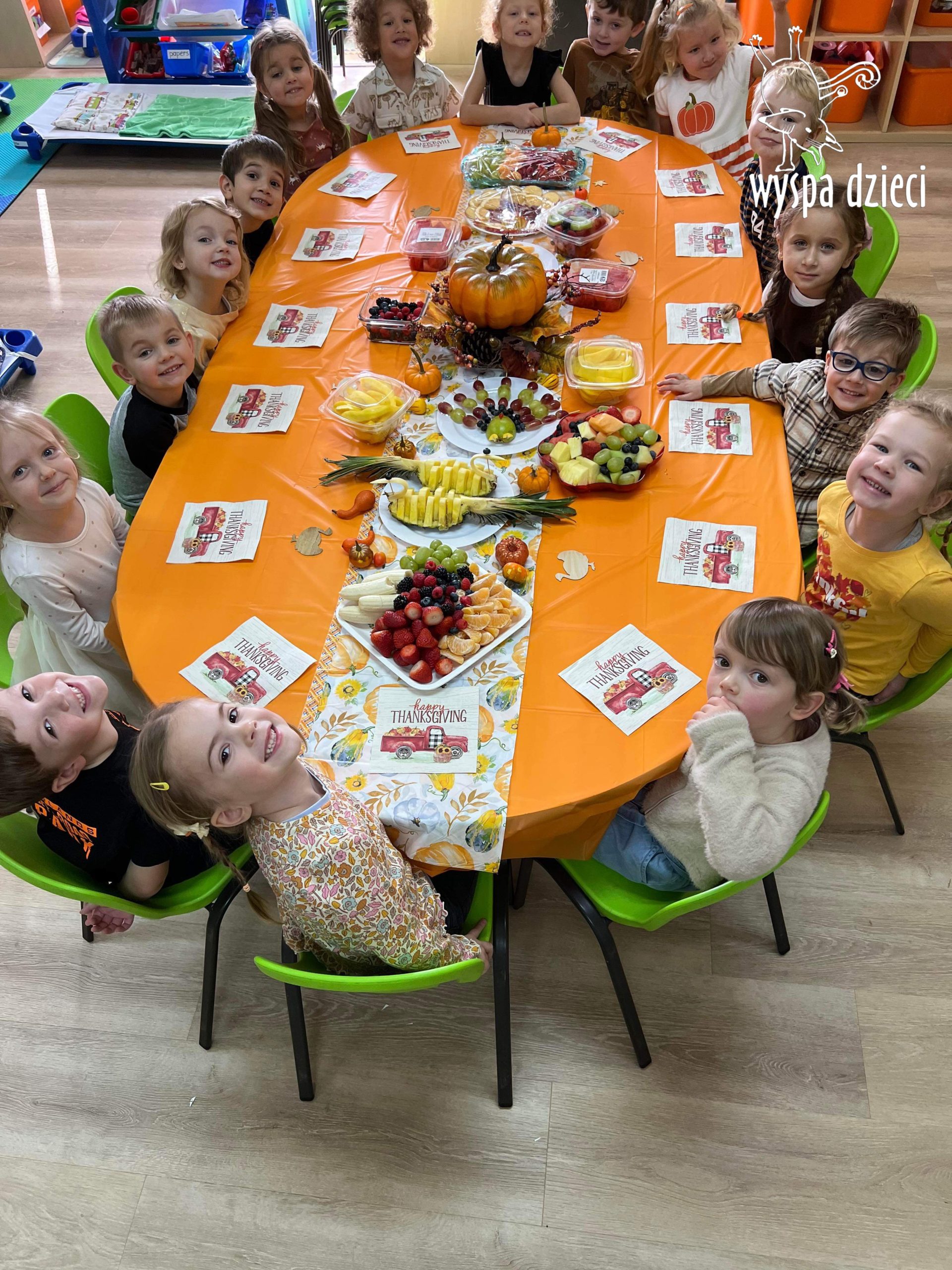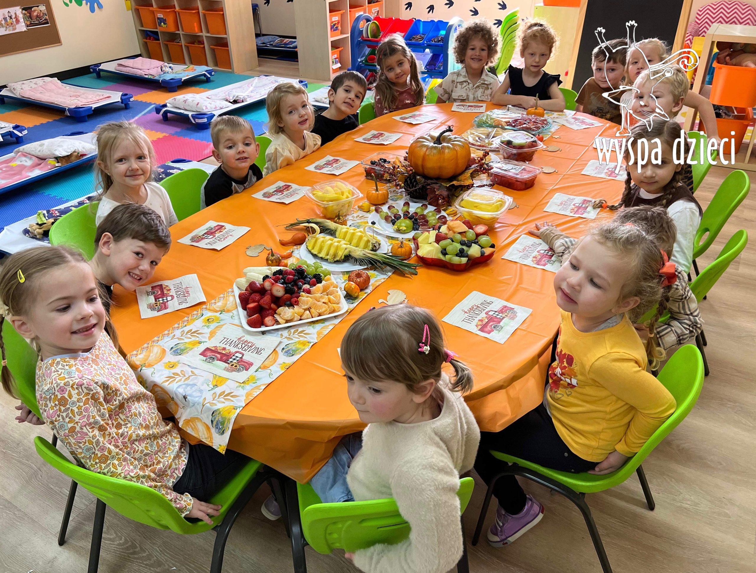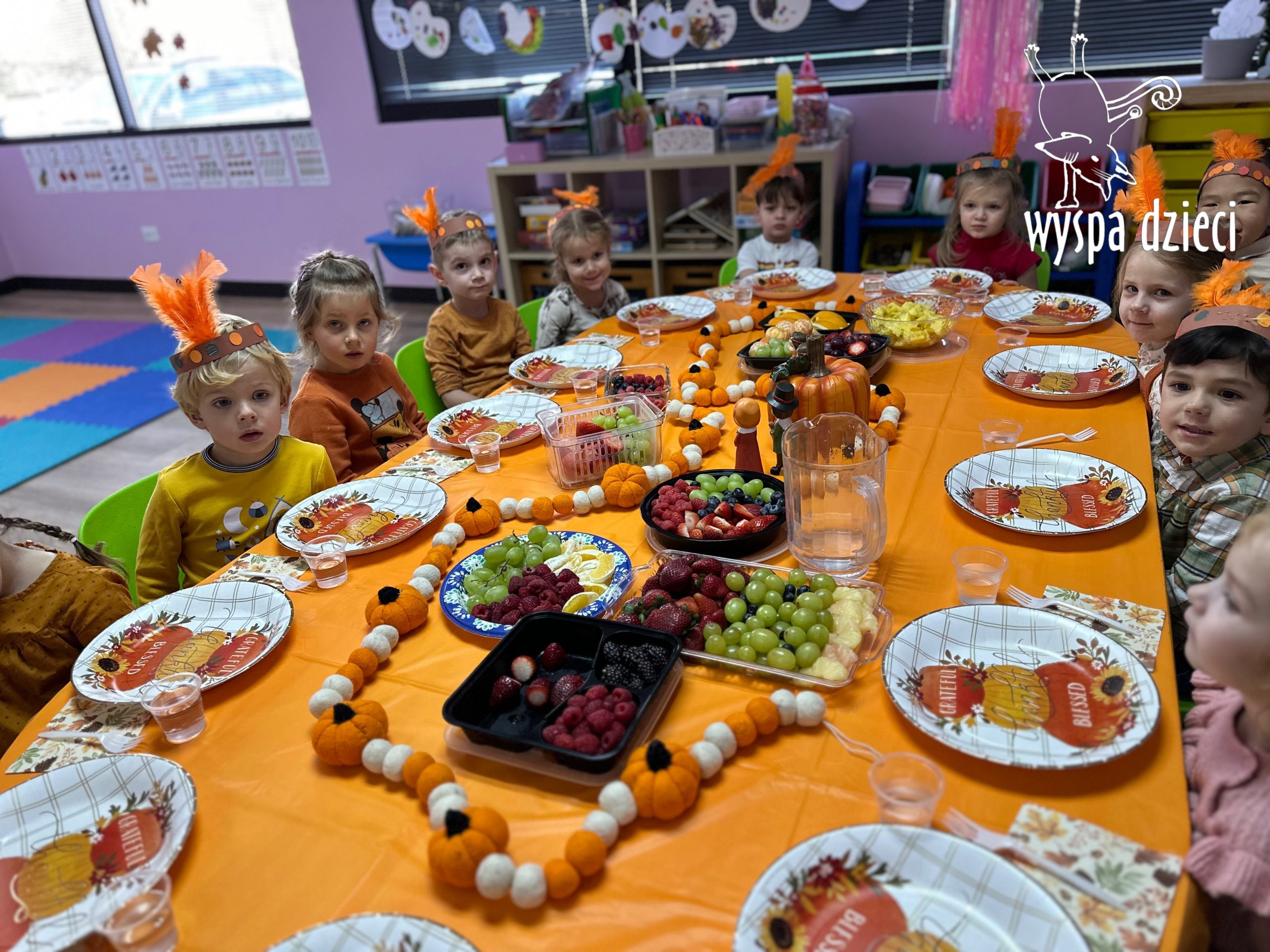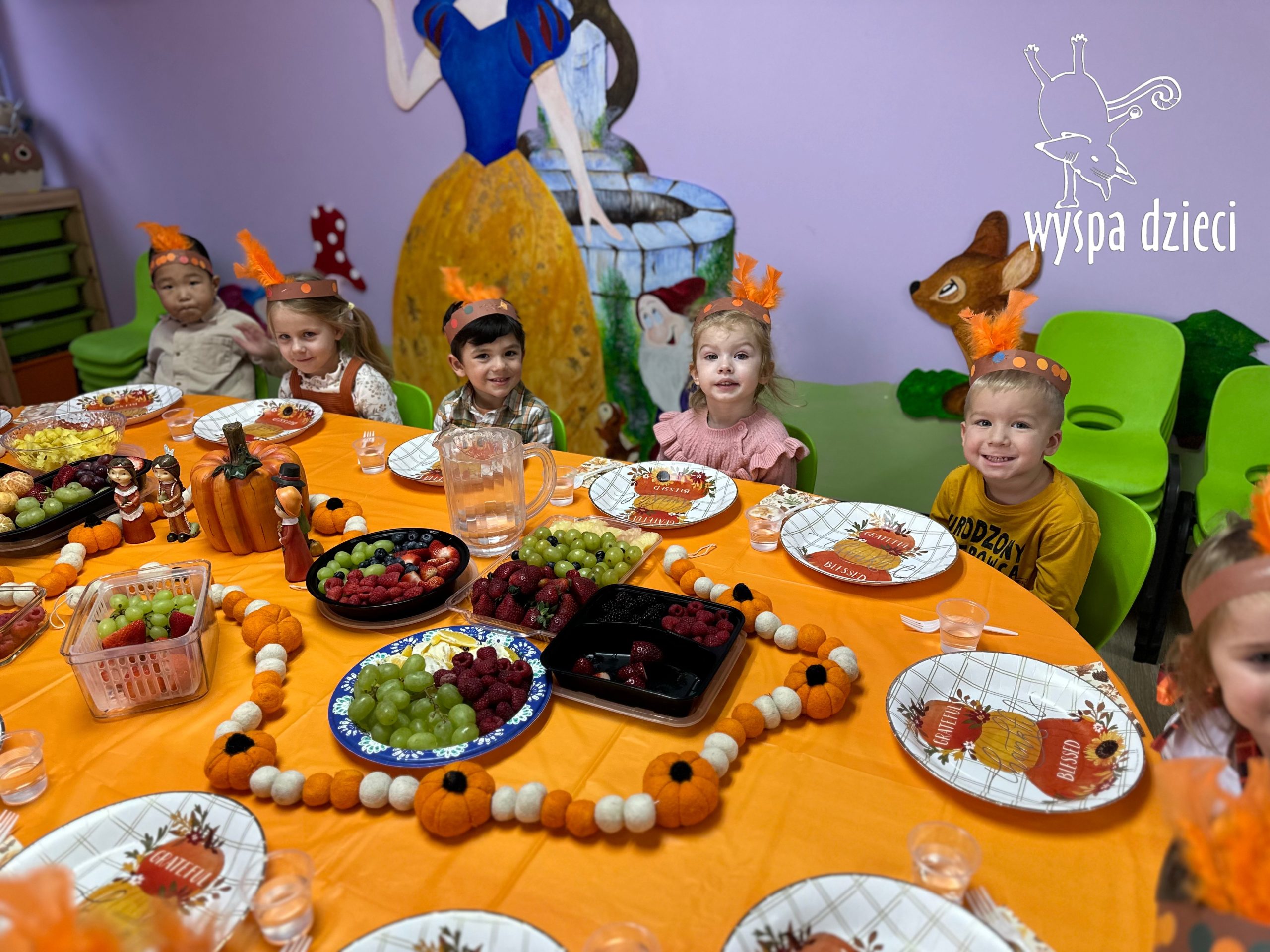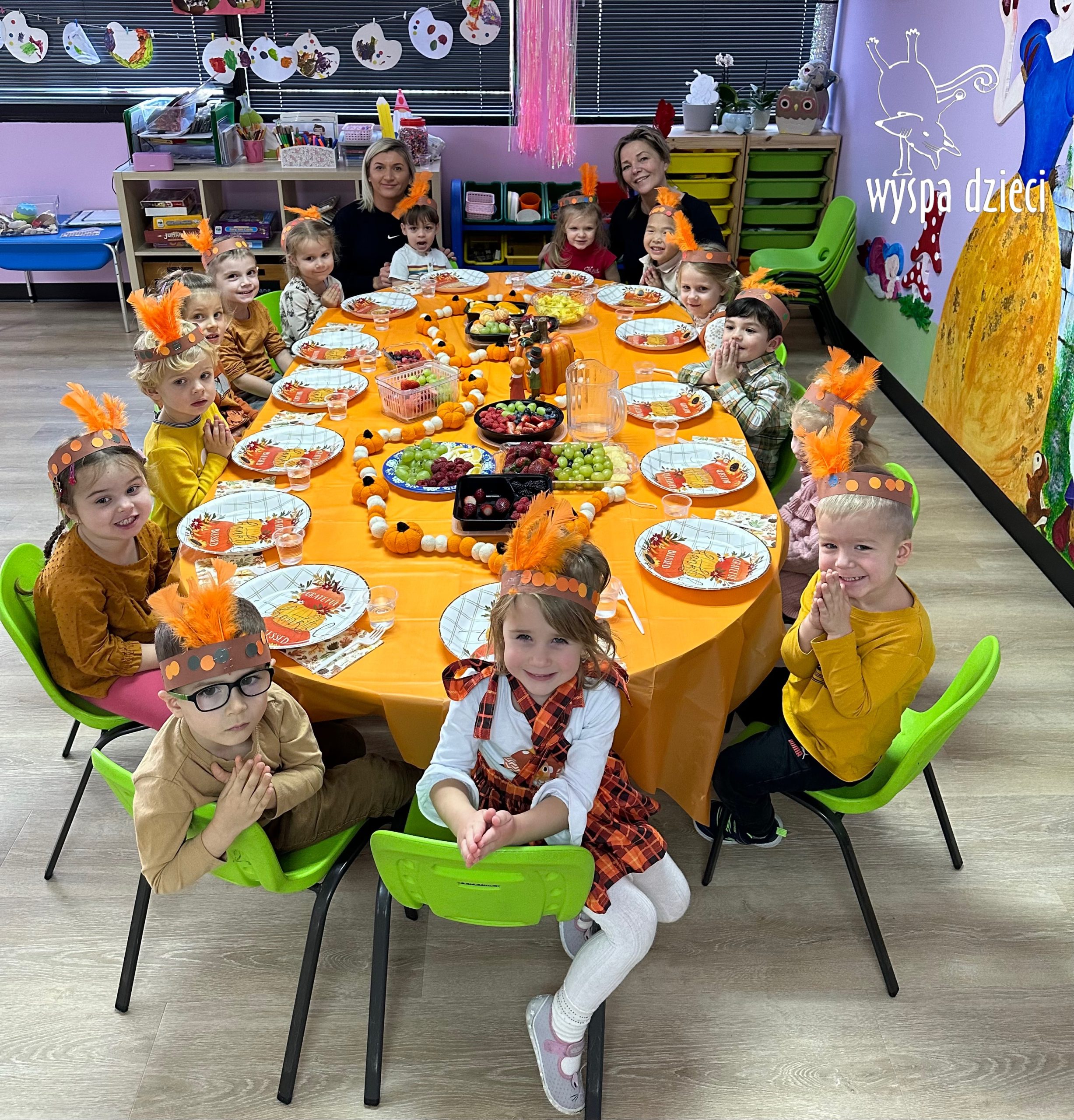 Dzisiaj w przedszkolu obchodziliśmy Święto Dziękczynienia .Dzieci ubrane w stroje Pielgrzymów i Indian, przy uroczyście nakrytych stołach, zjadły świąteczny obiad. Dziękujemy za przyniesione owoce, które stanowiły smaczny i zdrowy deser .Zyczymy miłego spędzenia Święta Dziękczynienia?