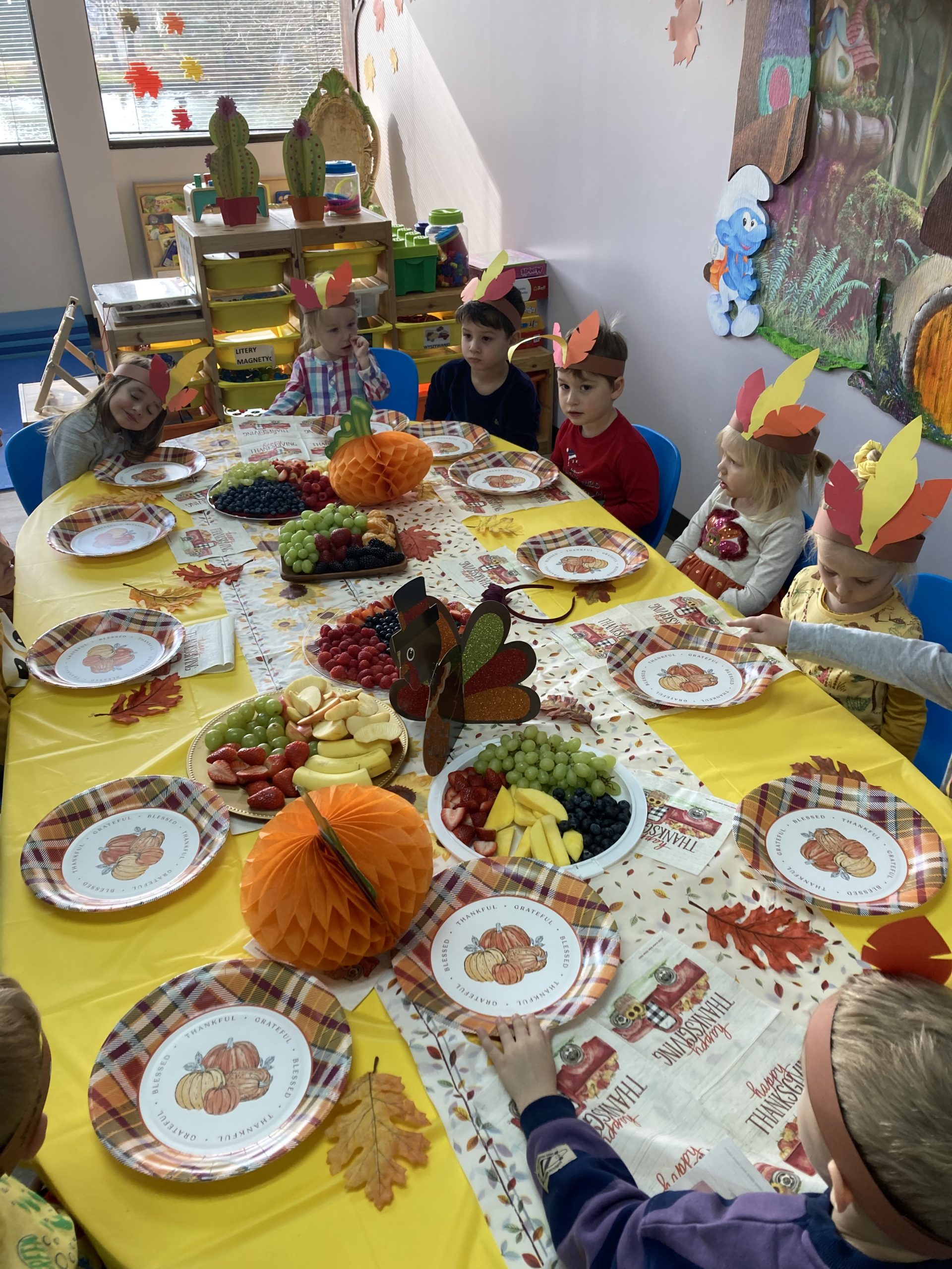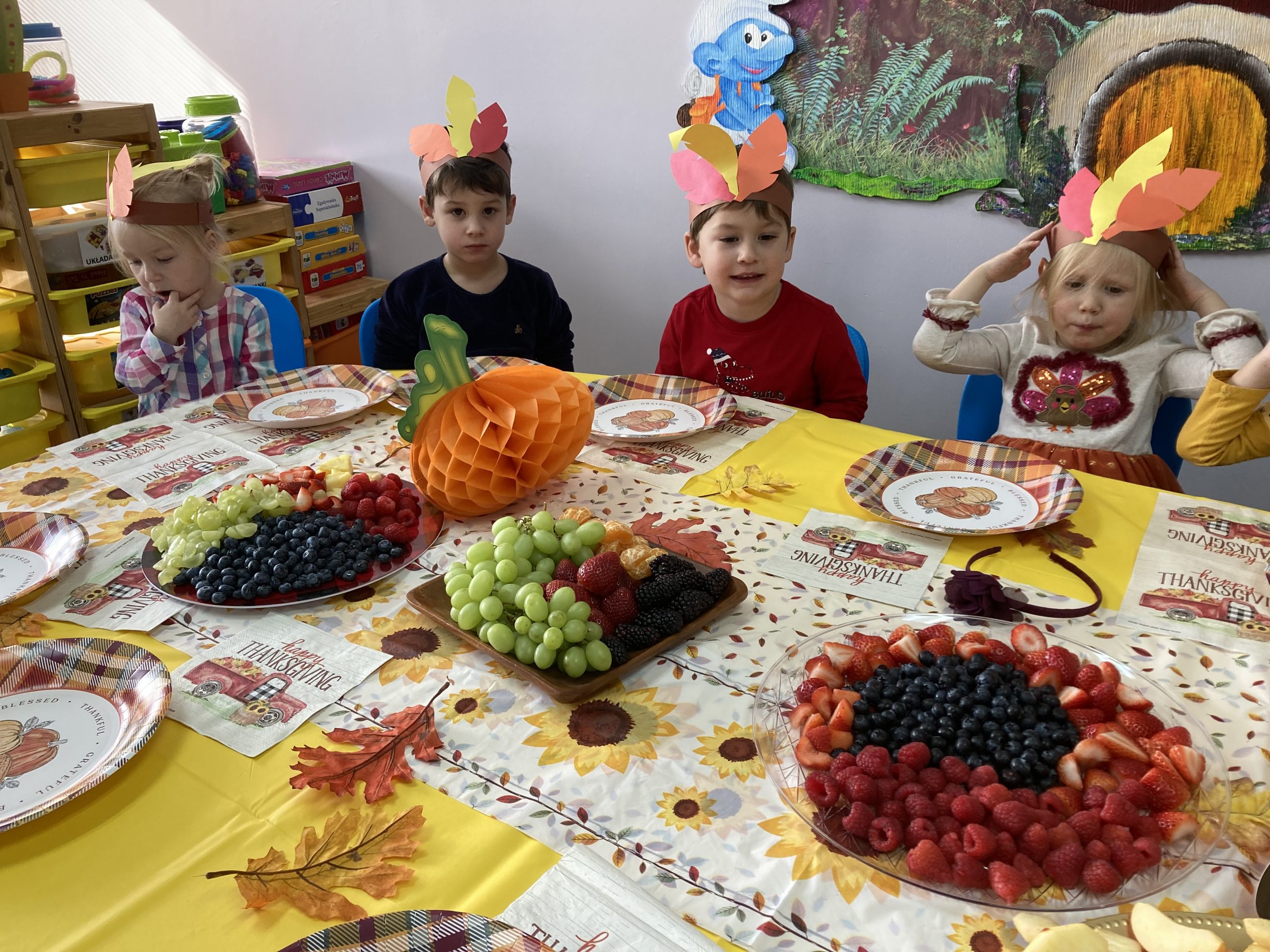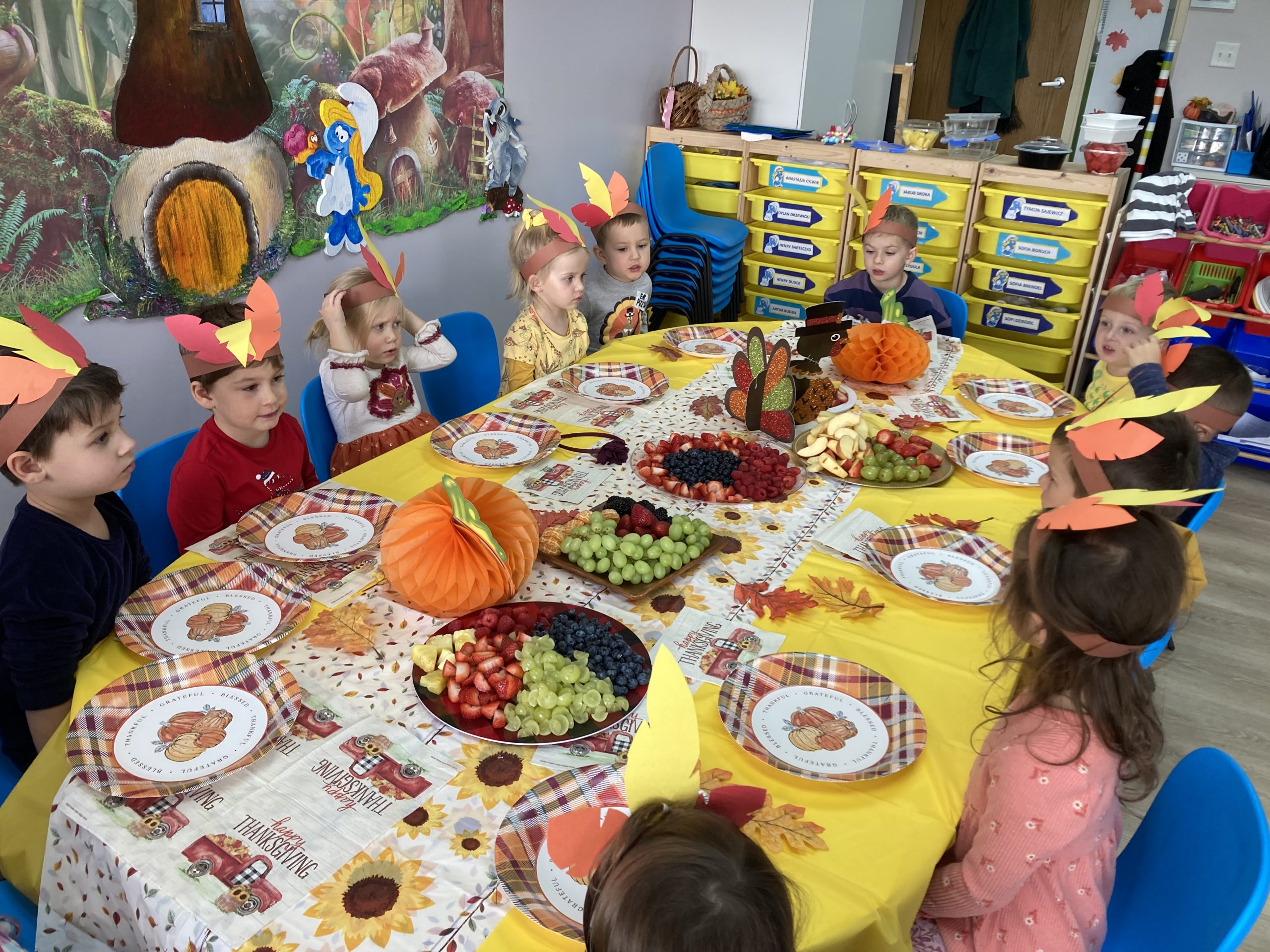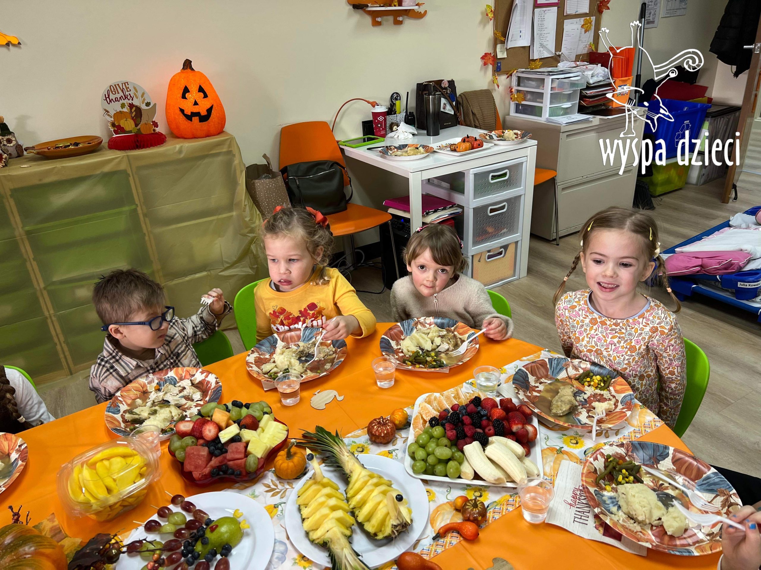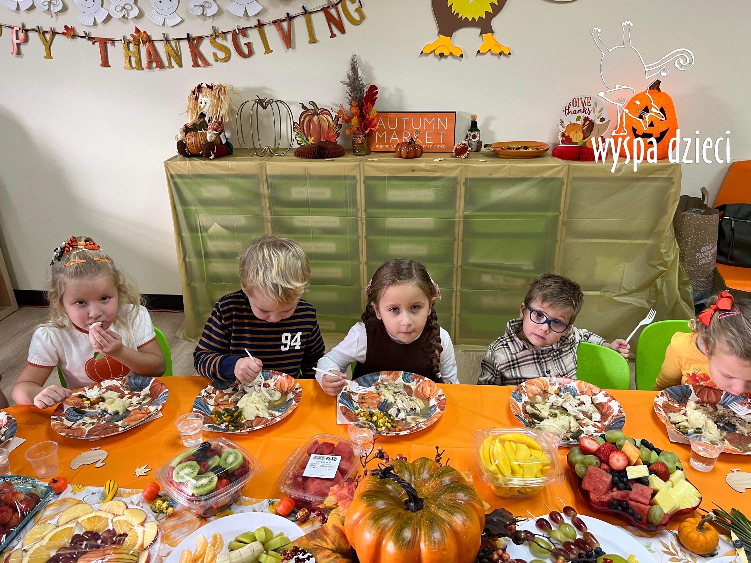 Dzisiaj w przedszkolu obchodziliśmy Święto Dziękczynienia .Dzieci ubrane w stroje Pielgrzymów i Indian, przy uroczyście nakrytych stołach, zjadły świąteczny obiad. Dziękujemy za przyniesione owoce, które stanowiły smaczny i zdrowy deser .Zyczymy miłego spędzenia Święta Dziękczynienia?