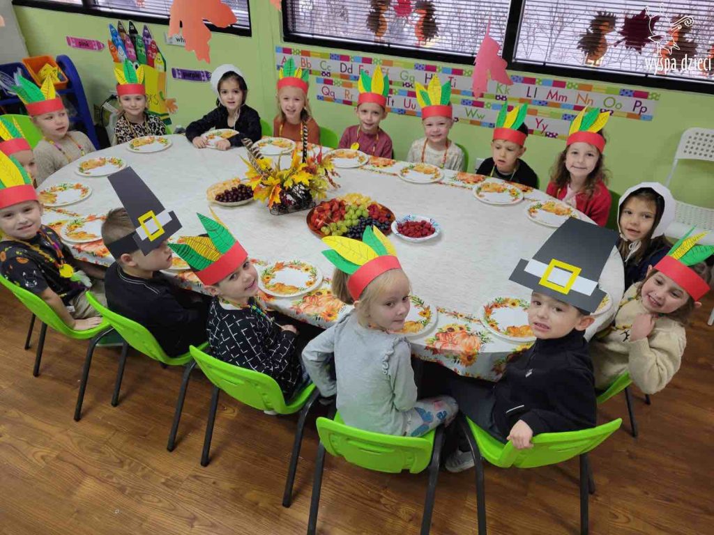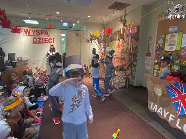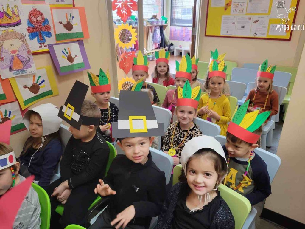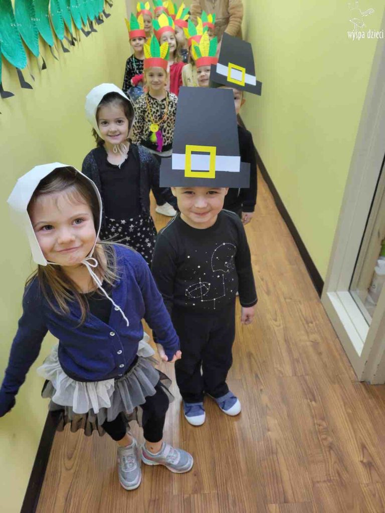 Dzieci ubrały się w stroje Indian i Pielgrzymów .