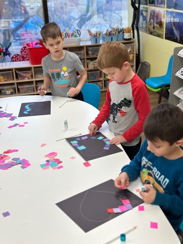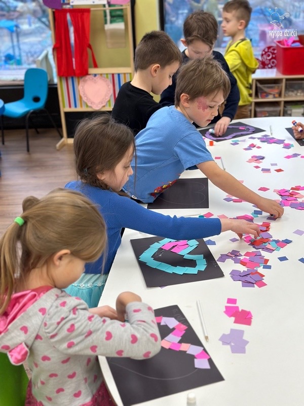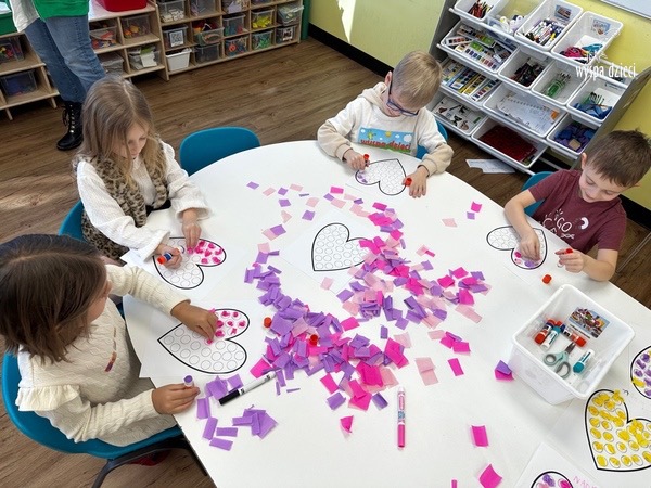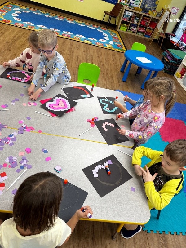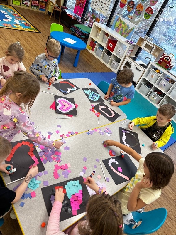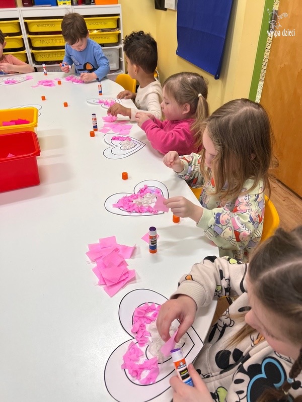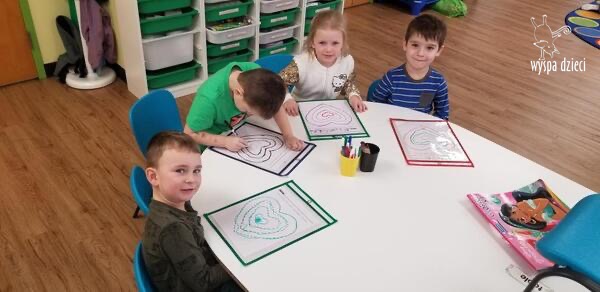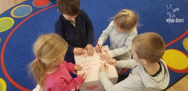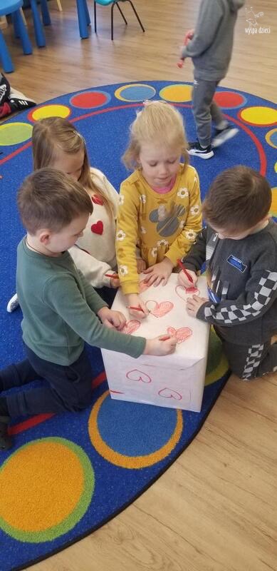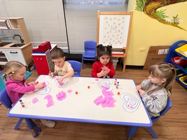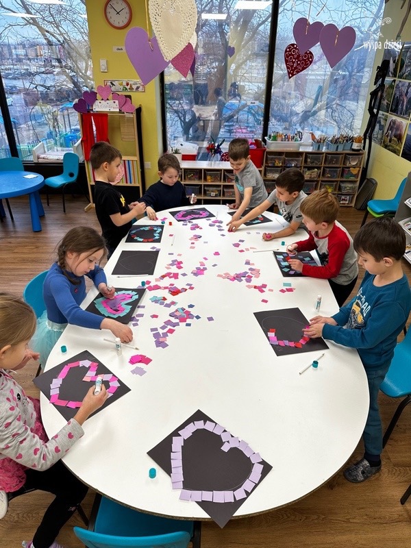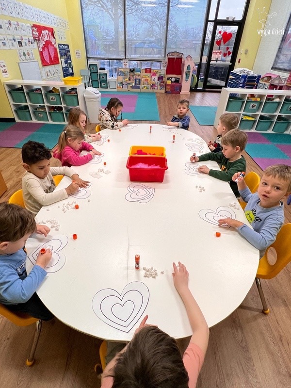 Przez cały tydzień Wyspa Dzieci River Grove zamieniła się w krainę miłości i przyjaźni. W przedszkolu królował kolor czerwony. Dzieci poznały tradycje walentynkowe, dowiedziały się jak ważne jest okazywanie uczuć przyjaźni i sympatii w stosunku do innych ludzi. Wyklejały, rysowały i kolorowały serduszka, wykonywały laurki. Grupa Bystrzaków wykonała przepiękne czerwone i różowe wazoniki, które następnie podarowały swoim Walentynkom.