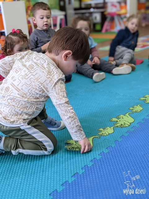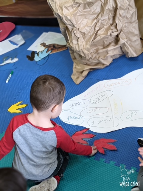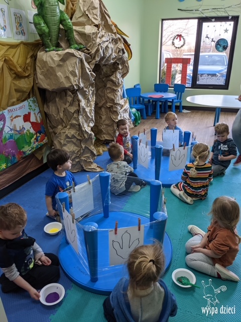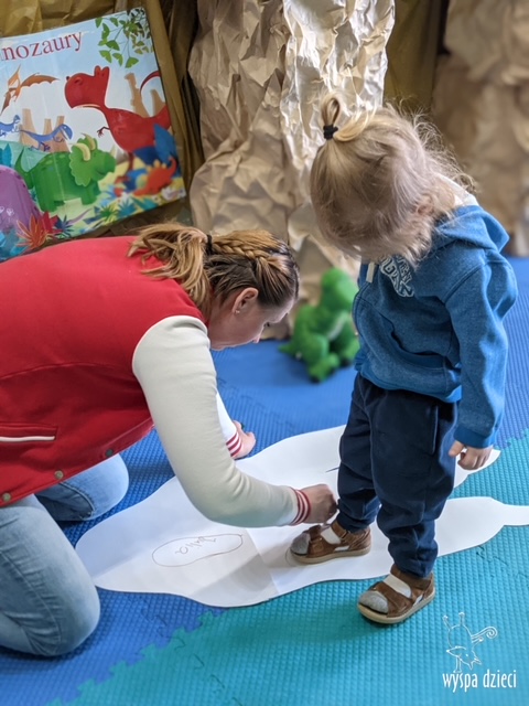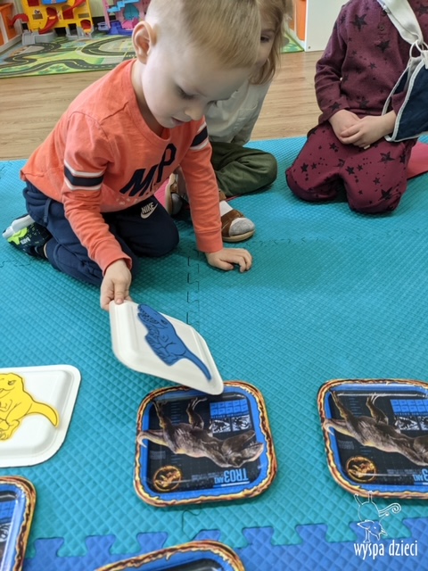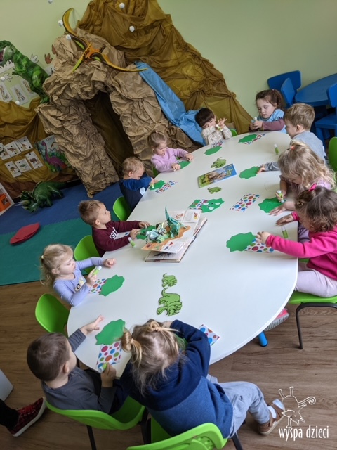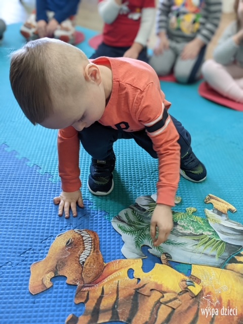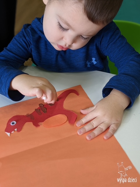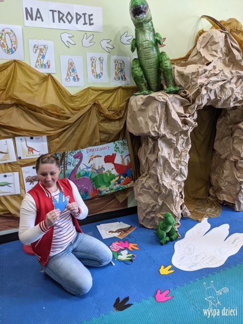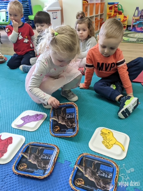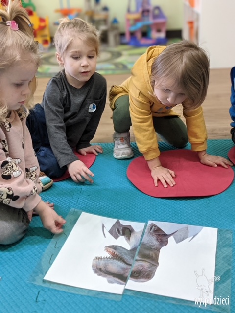 Maluchy dowiedziały się także jak gigantyczna była stopa groźnego T-Rexa! Oj, a była naprawde ogromna! Przedszkolaki układały także dinozaurowe puzzle, liczyły dinozaury , a także wykonywały prace plastyczne z tymi ciekawymi zwierzętami!