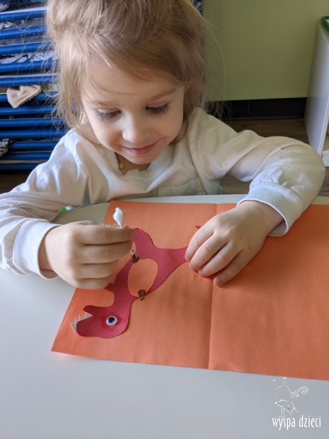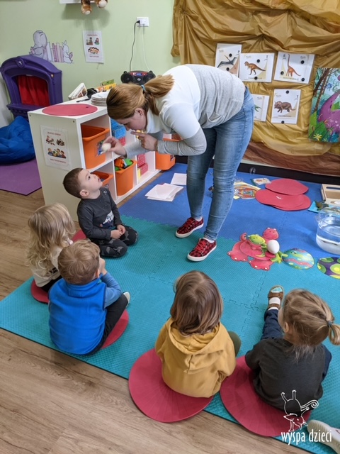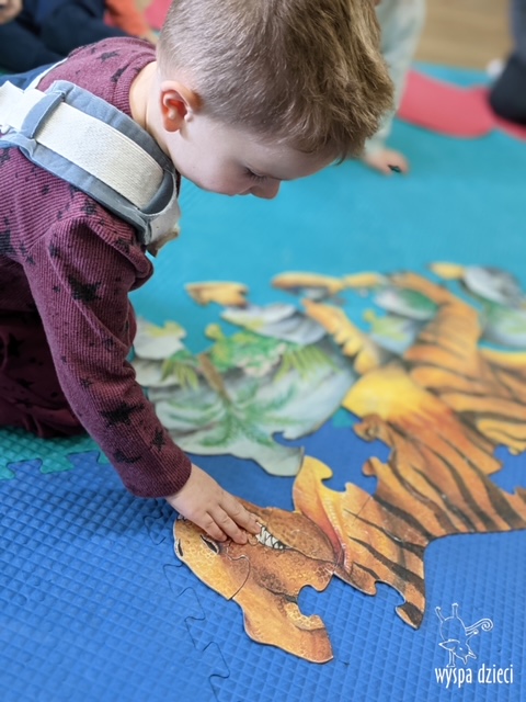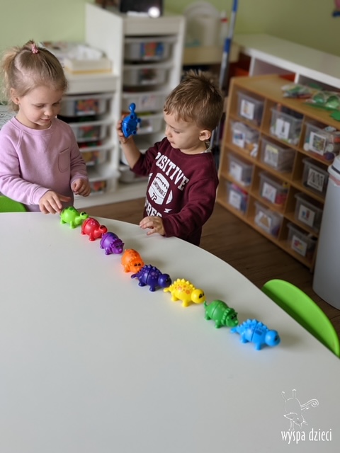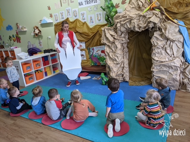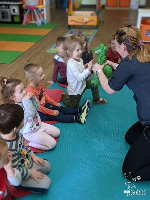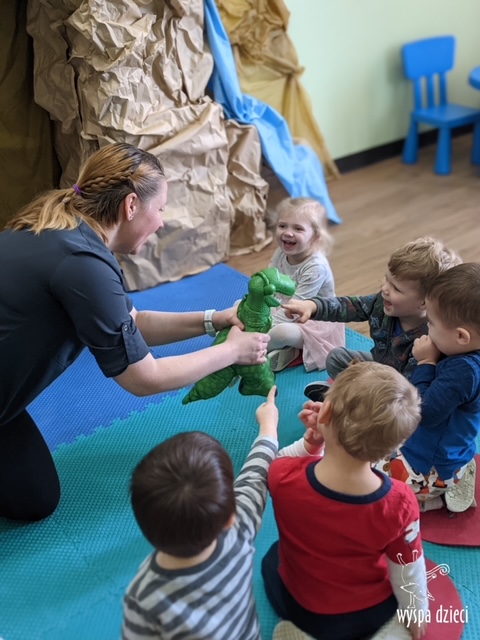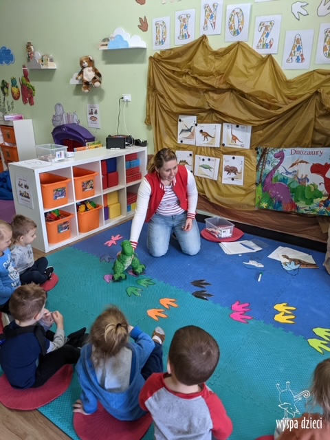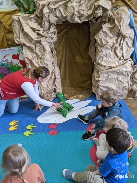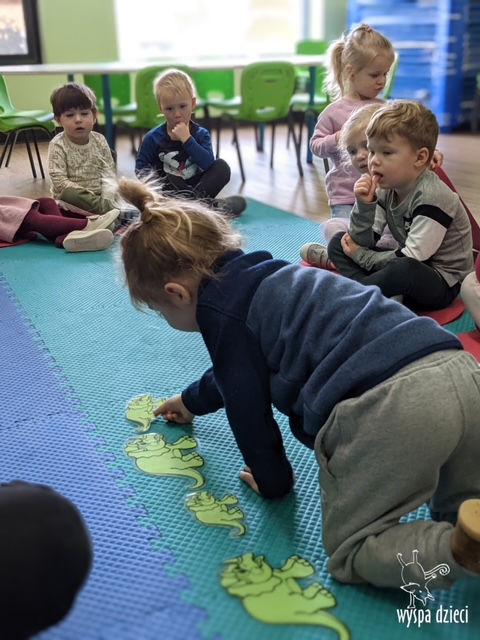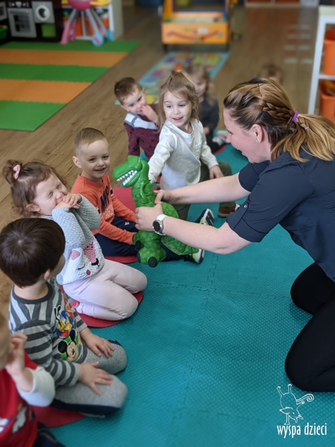 Maluchy dowiedziały się także jak gigantyczna była stopa groźnego T-Rexa! Oj, a była naprawde ogromna! Przedszkolaki układały także dinozaurowe puzzle, liczyły dinozaury , a także wykonywały prace plastyczne z tymi ciekawymi zwierzętami!
