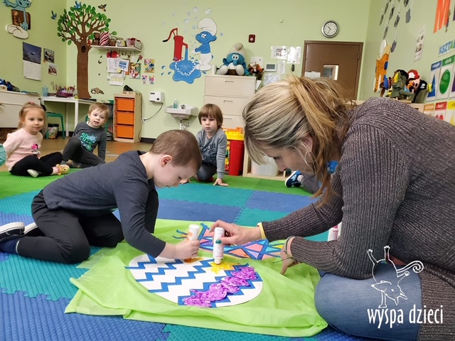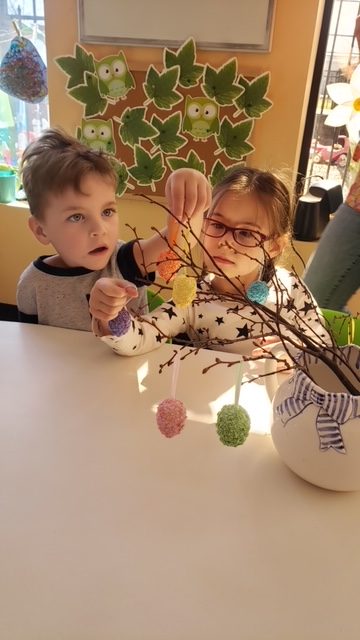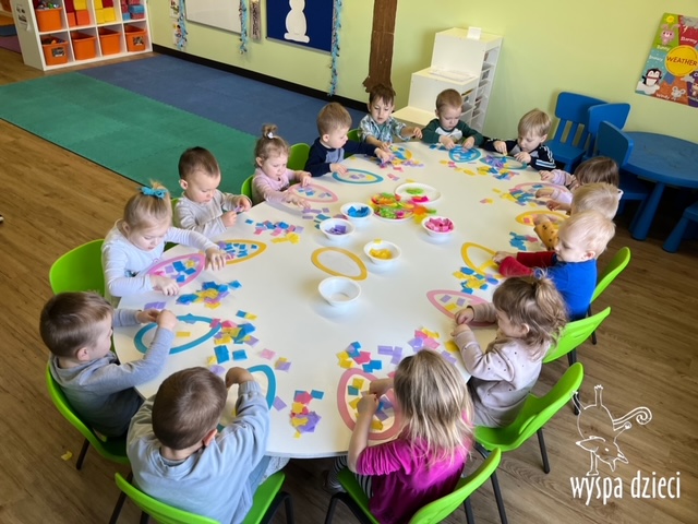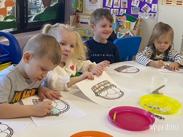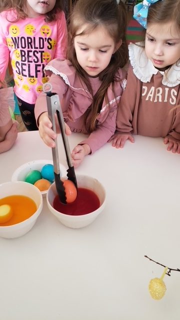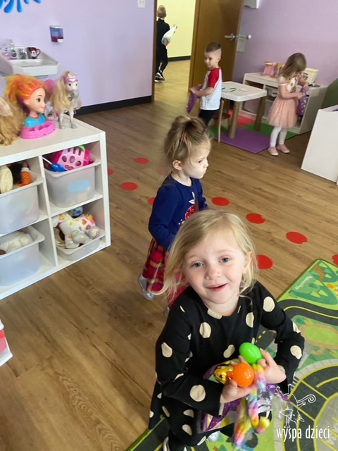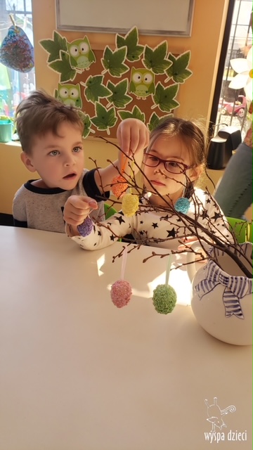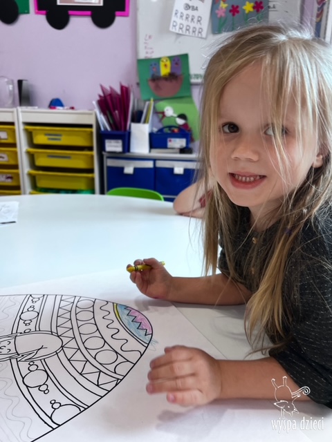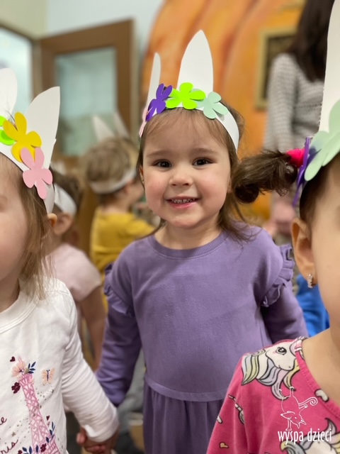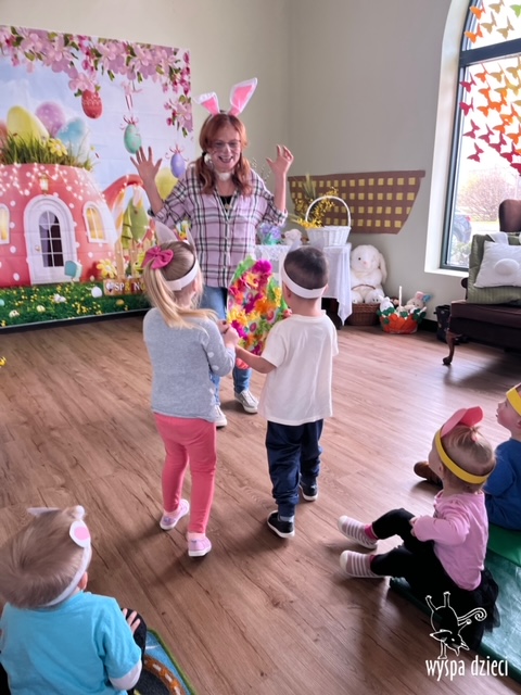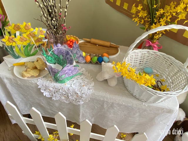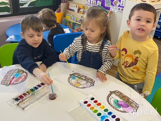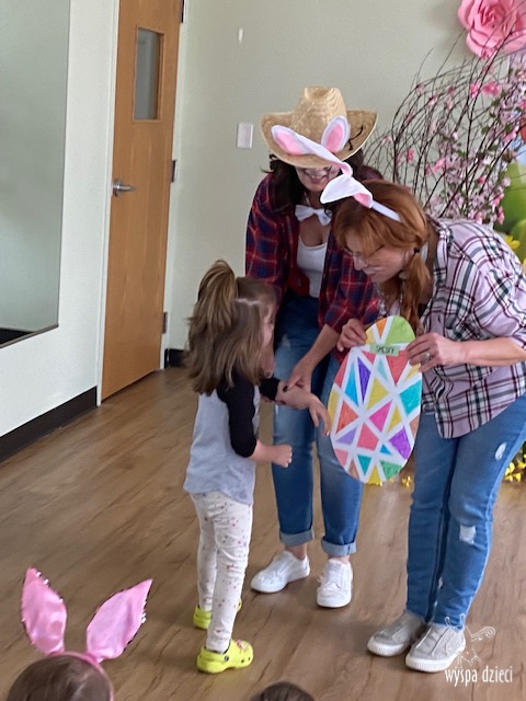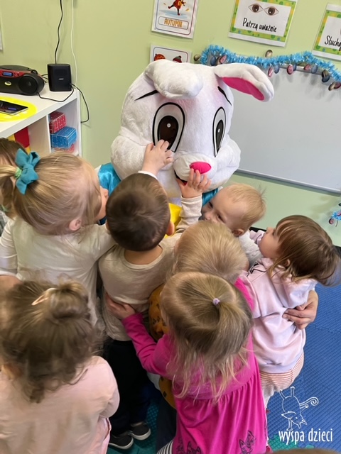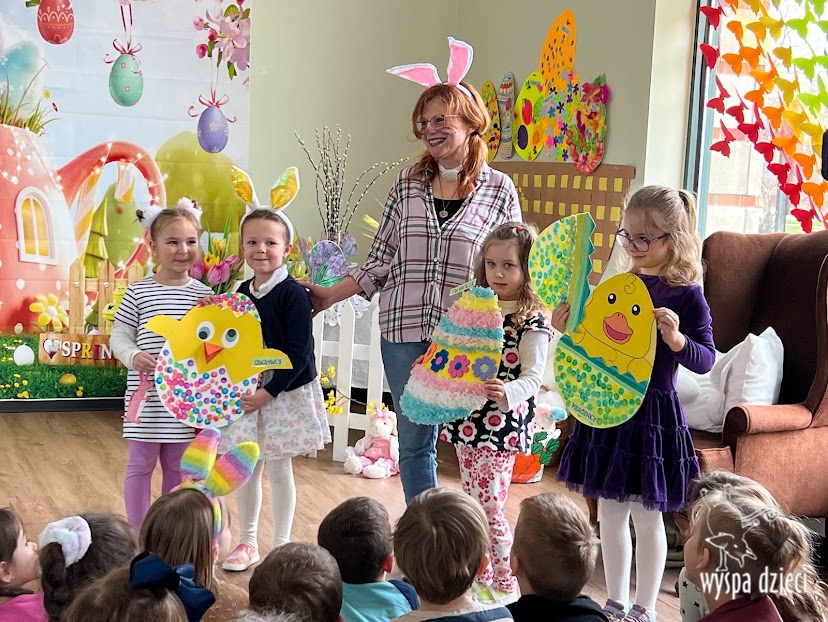 Wielkanoc tuż, tuż… W ostatnich dniach na Wyspie Dzieci w Algonquin można było poczuć wielkanocny klimat. Nauczycielki z grupy Odkrywcy – p. Kasia i p. Mariola przygotowały dla dzieci piękne wielkanocne przedstawienie, które wprowadziło wszystkich w świateczny klimat. Króliki pięknie przygotowały swój domek do odwiedzin ich kuzyna – królika wielkanocnego. Króliczki posprzatały, przygotowały świąteczne wypieki, udekorowały swój domek baziami i żonkilami. Niestety okazało się, że są w nie lada problemie, gdyż zabrakło im wielkanocnych jajek, a bez tego nie mogło się obyć przy wizycie wyjątkowego kuzyna! Na szczęście nasze przedszkolaki pomogły królikom przygotowując piękne wialkanocne jajka! Każda grupa przygotowała swoje unikatowe jajeczko, które podarowała dla zaprzyjaźnionych królików.