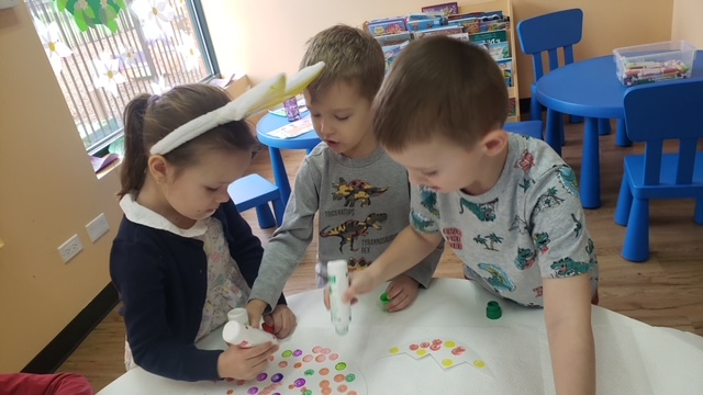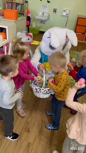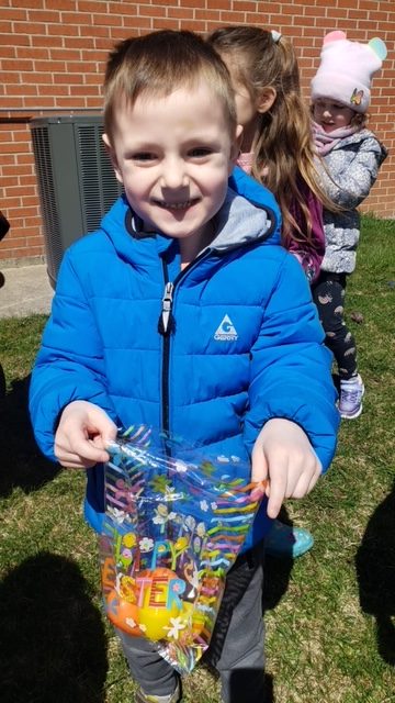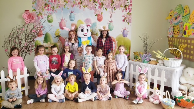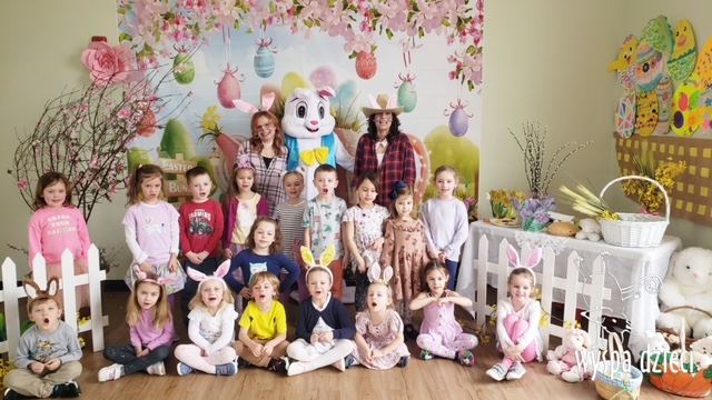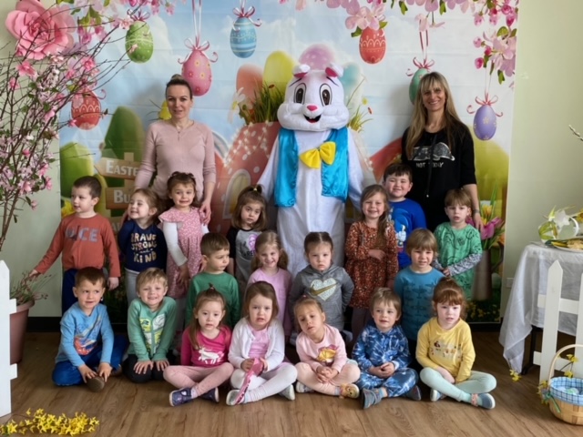 Wielkanocny królik był niezmiernie szczęśliwy z tak miłego przyjęcia nie tylko swoich kuzynów, ale wszystkich przedszkolaków w Algonquin! Na szczęście królik był też gotowy do tych odwiedzin przynosząc wszytskim przedszkolakom moc kolorowych, wielkanocnych jajek! Maluchy miały świetną zabawę szukając wielkanocnych jajek!