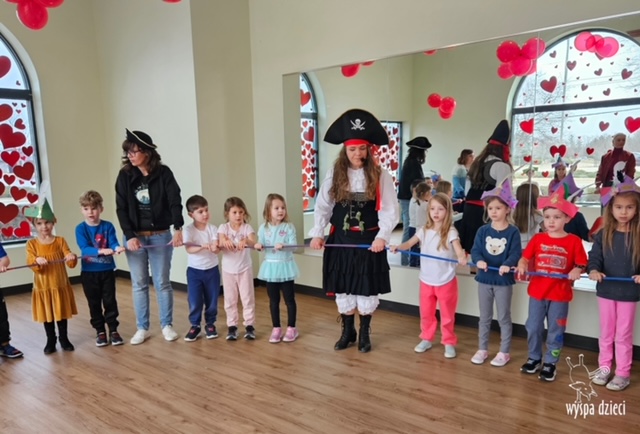 Luty jest miesiącem miłości – 14 lutego obchodziliśmy Walentynki, nasze przedszkolaki brały udział w serduszkowym balu, obdarowaliśmy się też prezencikami “od serca”. W naszym przedszkolu odbyła się także niezwykła walentynkowa zabawa piracka pod przewodnictwem pirata Madalaine. Nasze przedszkolaki razem z Kapitanem szukały zaginionego skarbu, grali na tęczowych bum-bum rurkach, a na końcu odbyło się uroczyste pasowanie i zdobycie tytułu Sailora. To była bardzo ciekawa przygoda!