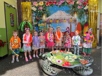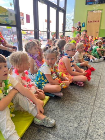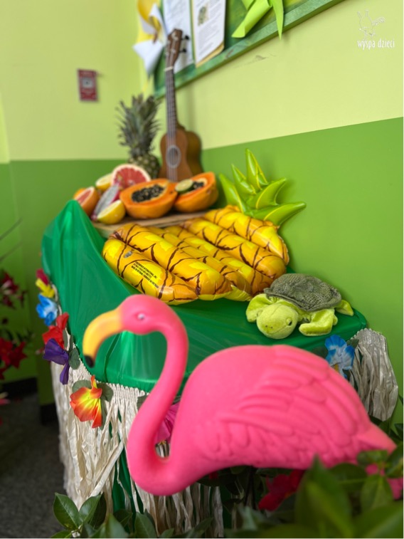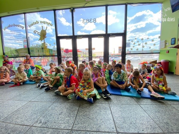 Przez cały tydzień we wszystkich grupach przygotowywaliśmy się do specjalnego dnia hawajskiego. I w końcu nastąpił ten długo oczekiwany dzień. ALOHA! Tym słowem Pani Beatka powitała nasze wszystkie dzieci . Wszyscy mieli założone hawajskie naszyjniki z kwiatów „lei” , które są symbolem m.in. przyjaźni i szacunku, a główny korytarz naszego przedszkola wyglądał jak hawajska plaża.