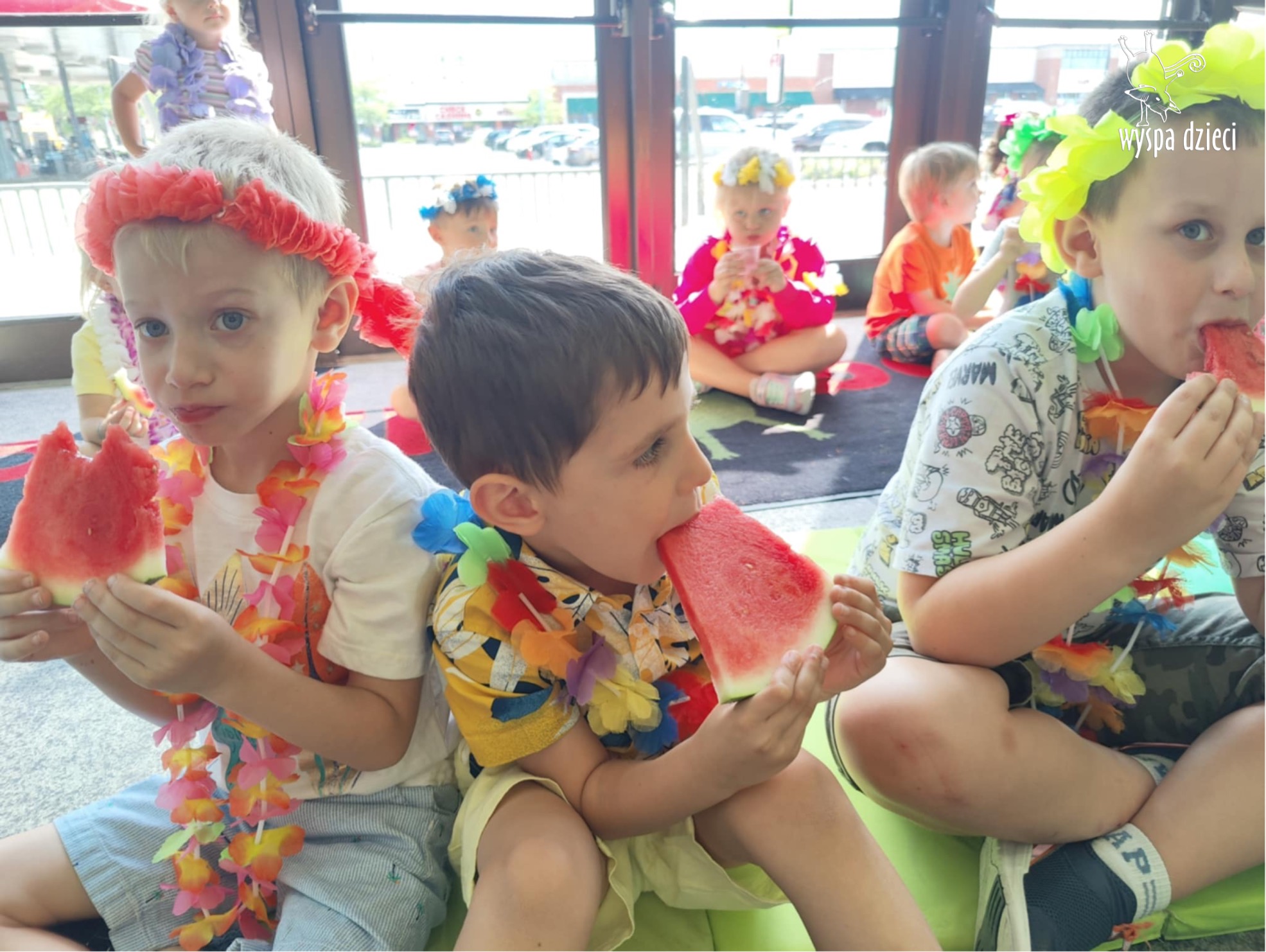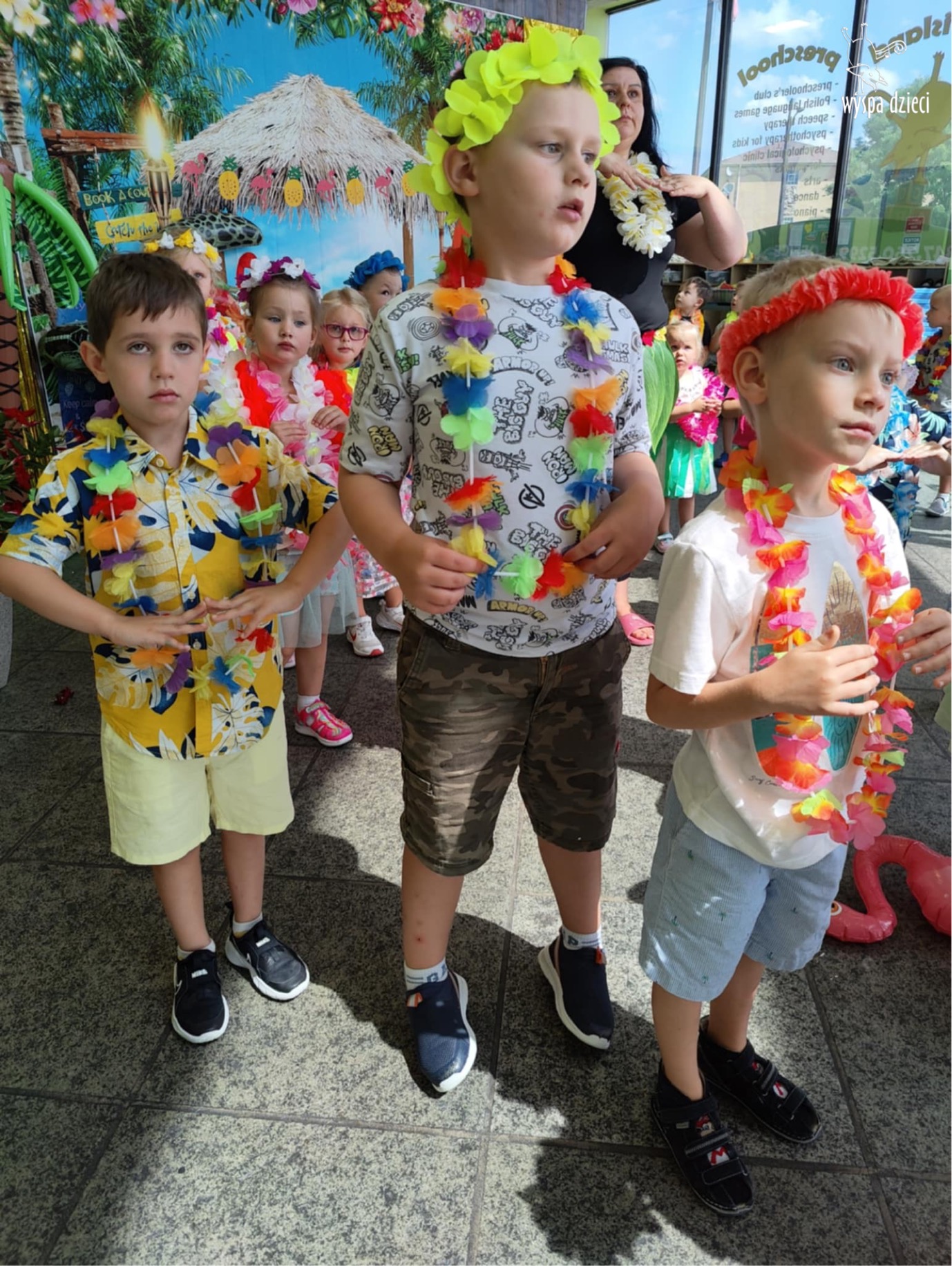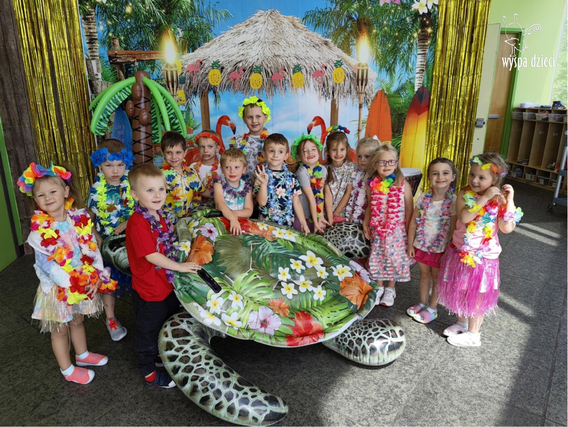 Przez cały tydzień we wszystkich grupach przygotowywaliśmy się do specjalnego dnia hawajskiego. I w końcu nastąpił ten długo oczekiwany dzień. ALOHA! Tym słowem Pani Beatka powitała nasze wszystkie dzieci . Wszyscy mieli założone hawajskie naszyjniki z kwiatów „lei” , które są symbolem m.in. przyjaźni i szacunku, a główny korytarz naszego przedszkola wyglądał jak hawajska plaża.