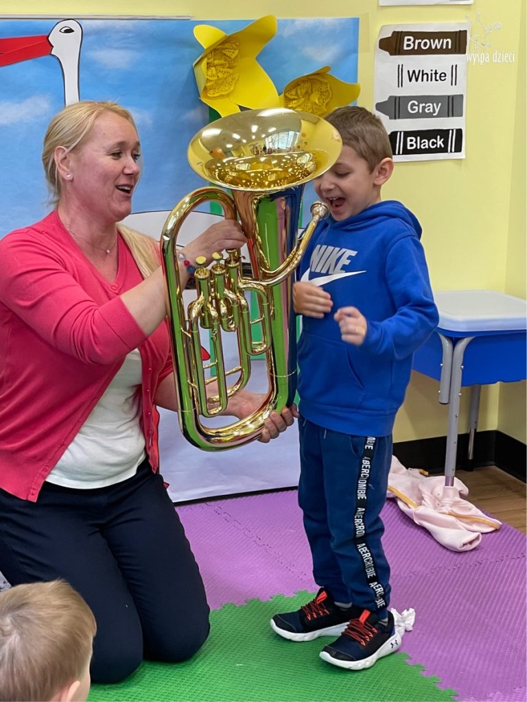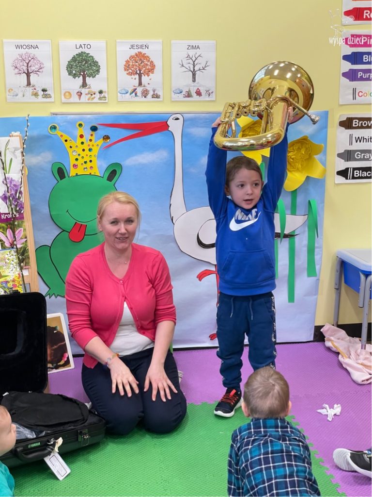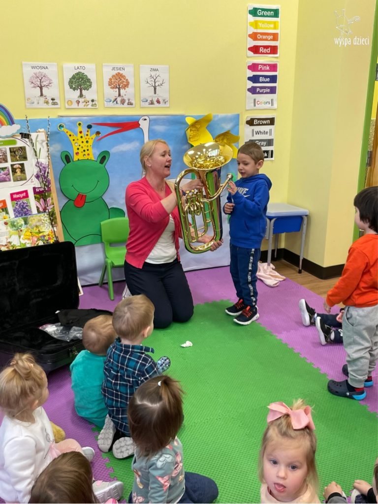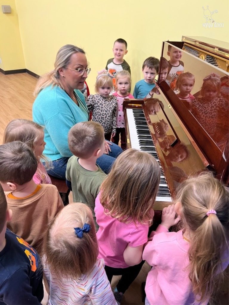 W tym tygodniu tematem naszych zajęć w grupach młodszych było „Wiosenne Muzykowanie” . Dzieci poznały różnorodne instrumenty muzyczne, od grzechotki aż po skrzypce, pianino a nawet instrumenty dęte. Okazało się że niektórzy maja w sobie jeszcze nie odkryte ogromne talenty muzyczne, nawet nasz nauczyciel – Pan Piotr ! Mamy nadzieję, ze ta muzyką na dobre obudziliśmy już Panią Wiosnę.