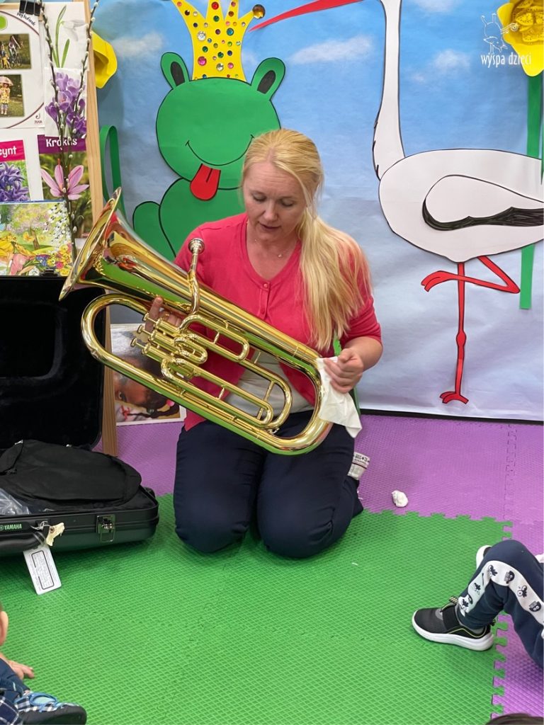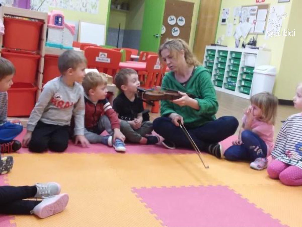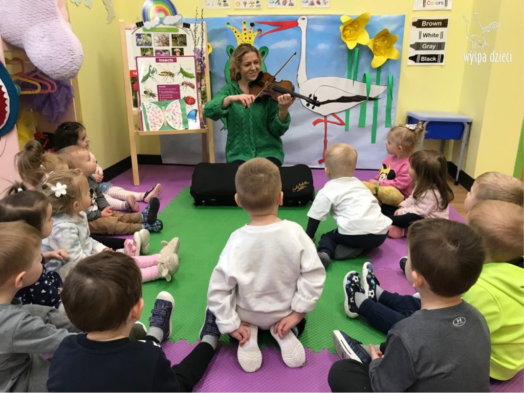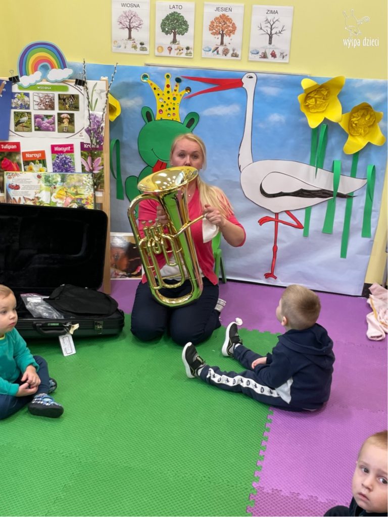 W tym tygodniu tematem naszych zajęć w grupach młodszych było „Wiosenne Muzykowanie” . Dzieci poznały różnorodne instrumenty muzyczne, od grzechotki aż po skrzypce, pianino a nawet instrumenty dęte. Okazało się że niektórzy maja w sobie jeszcze nie odkryte ogromne talenty muzyczne, nawet nasz nauczyciel – Pan Piotr ! Mamy nadzieję, ze ta muzyką na dobre obudziliśmy już Panią Wiosnę.