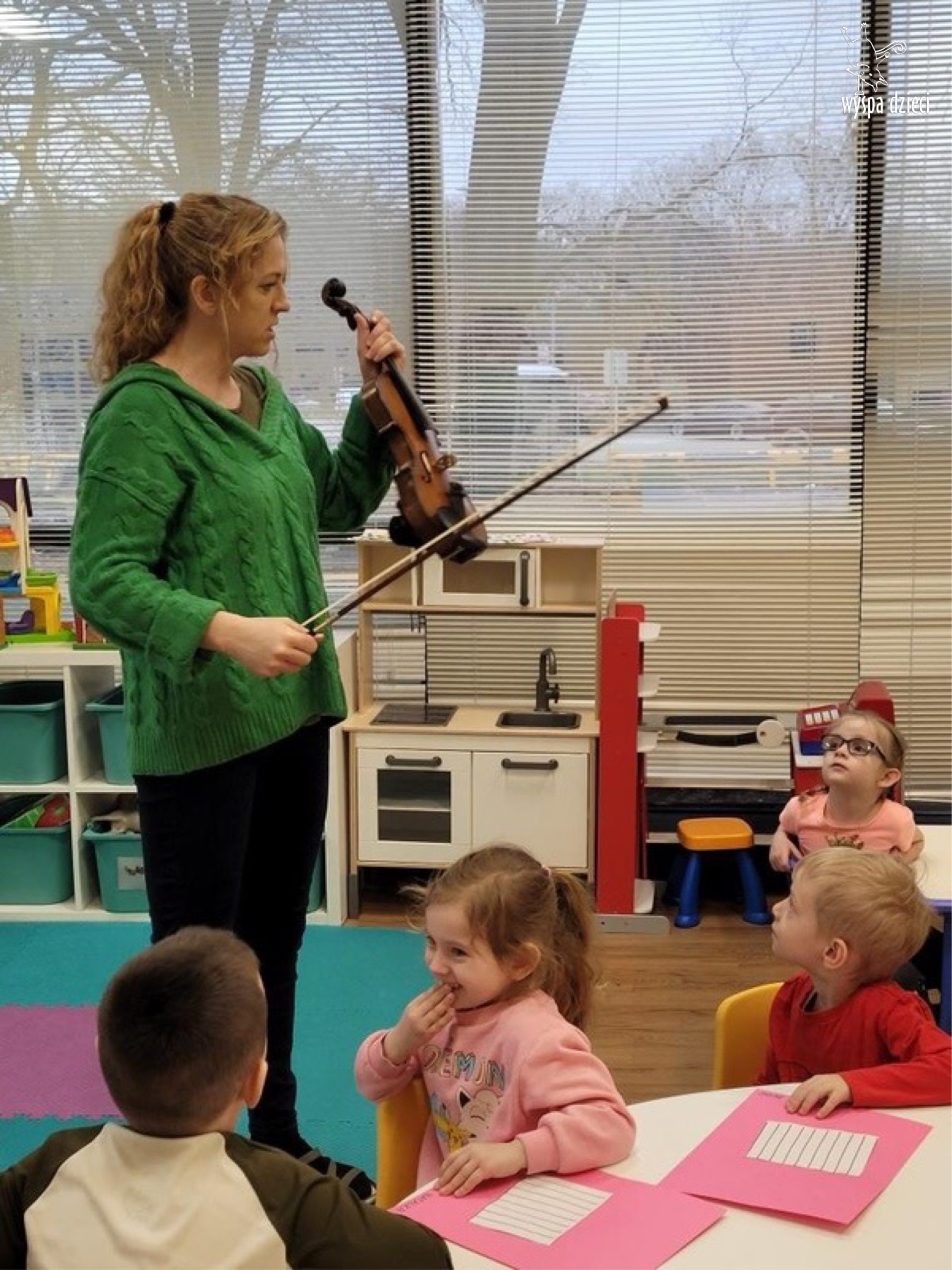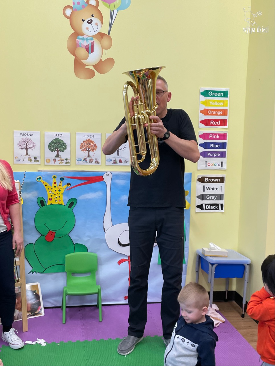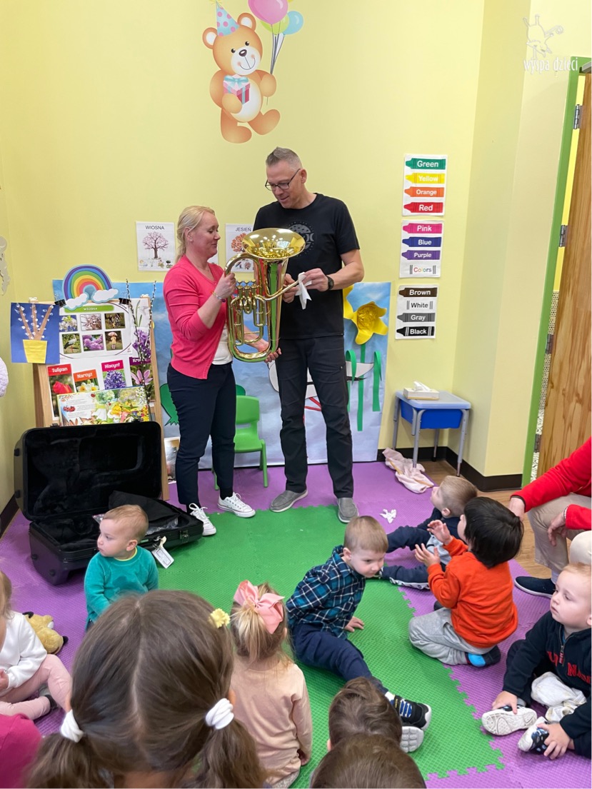 W tym tygodniu tematem naszych zajęć w grupach młodszych było „Wiosenne Muzykowanie” . Dzieci poznały różnorodne instrumenty muzyczne, od grzechotki aż po skrzypce, pianino a nawet instrumenty dęte. Okazało się że niektórzy maja w sobie jeszcze nie odkryte ogromne talenty muzyczne, nawet nasz nauczyciel – Pan Piotr ! Mamy nadzieję, ze ta muzyką na dobre obudziliśmy już Panią Wiosnę.