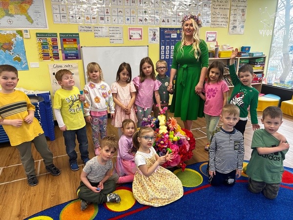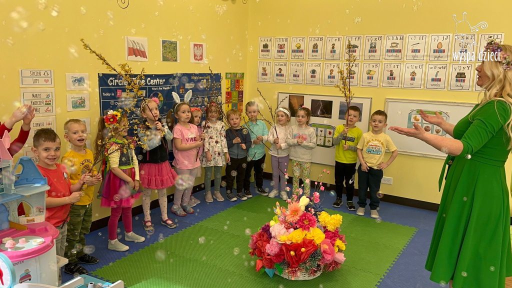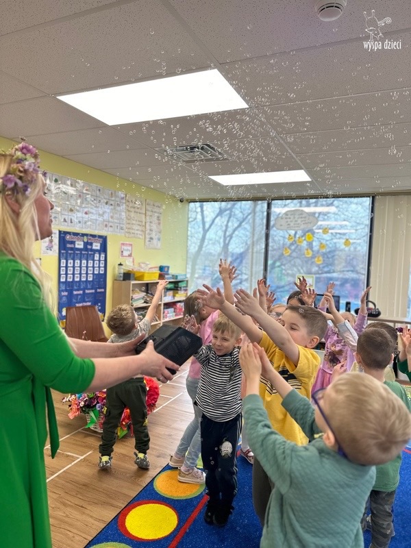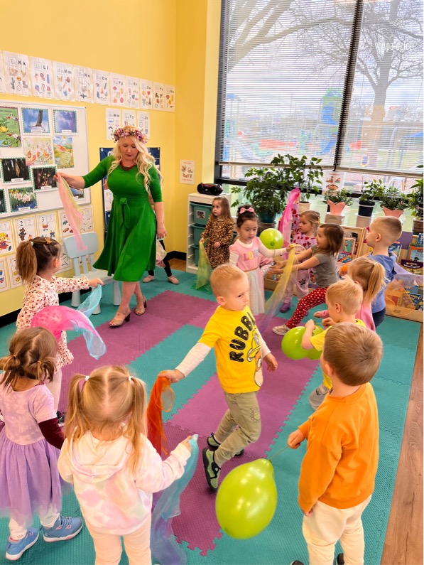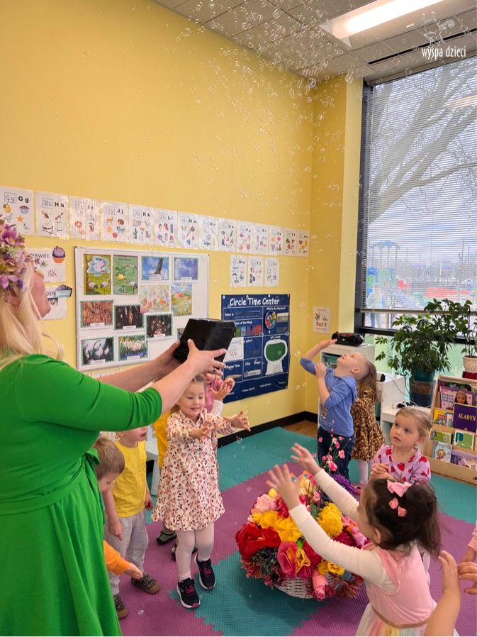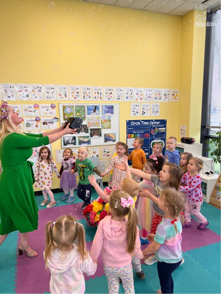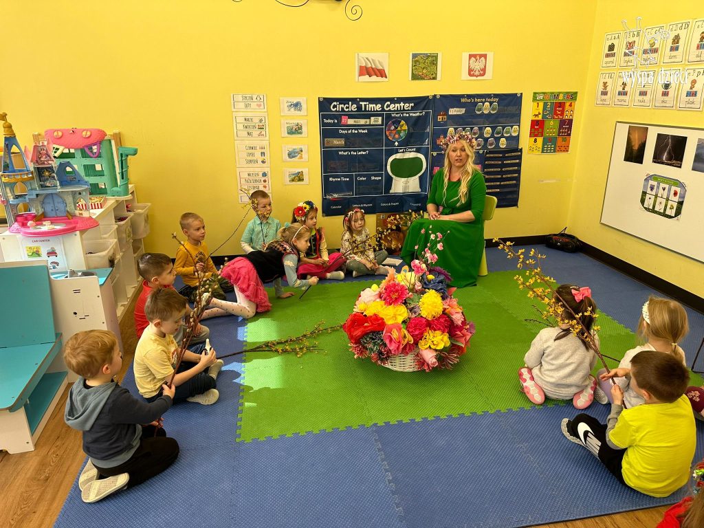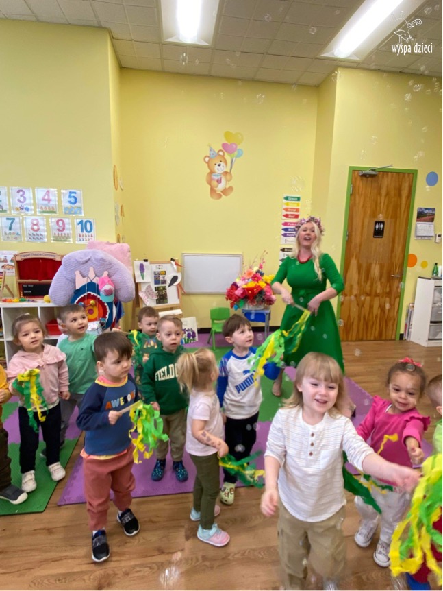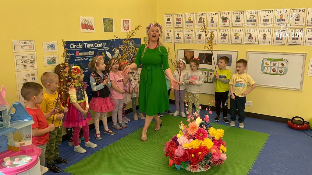 W czwartek 21 marca cała nasza Wyspa Dzieci w River Grove świętowała Pierwszy Dzień Wiosny. Aby podkreślić charakter tego dnia, Przedszkolaki przyszły ubrane w wiosenne barwy. Pani Wiosna ubrana w zielona sukienkę, z wianuszkiem na głowie i koszem pięknych kolorowych kwiatów przekroczyła progi naszego przedszkola. Zawitała do każdej z grup. Uroczystości powitania rozpoczęły się od konkursów, gier i zabaw związanych z tematyką pór roku. Pani Wiosna miała dla naszych przedszkolaków niespodziankę w postaci naklejek z pięknymi wiosennymi kwiatami. Chociaż na drugi dzień znów pojawił się śnieg to i tak jesteśmy pewni, że nasze starania sprawią, że Wiosna zawita do nas na dobre. Ale musimy pamiętać ….,że W MARCU JAK W GARCU ?