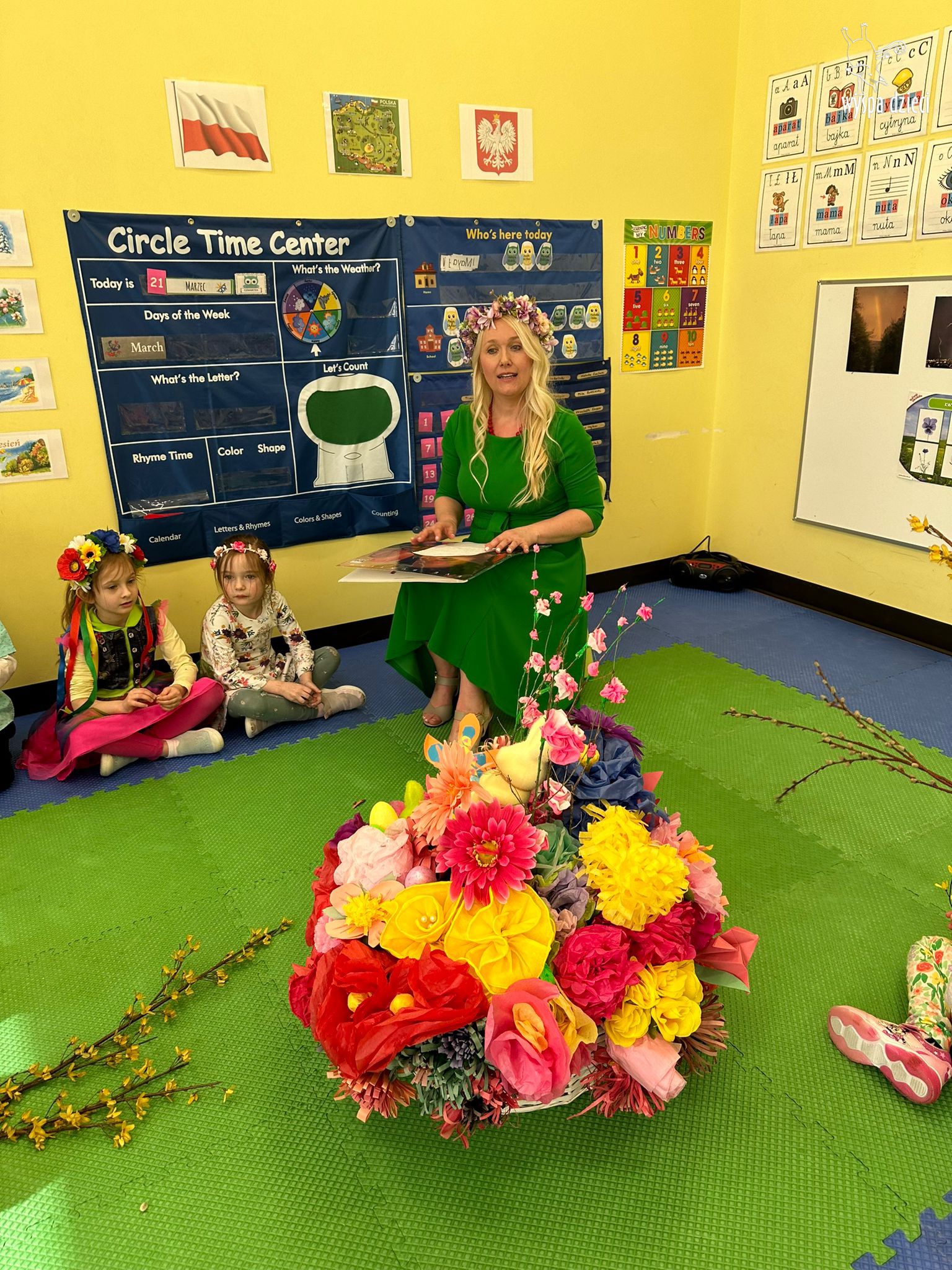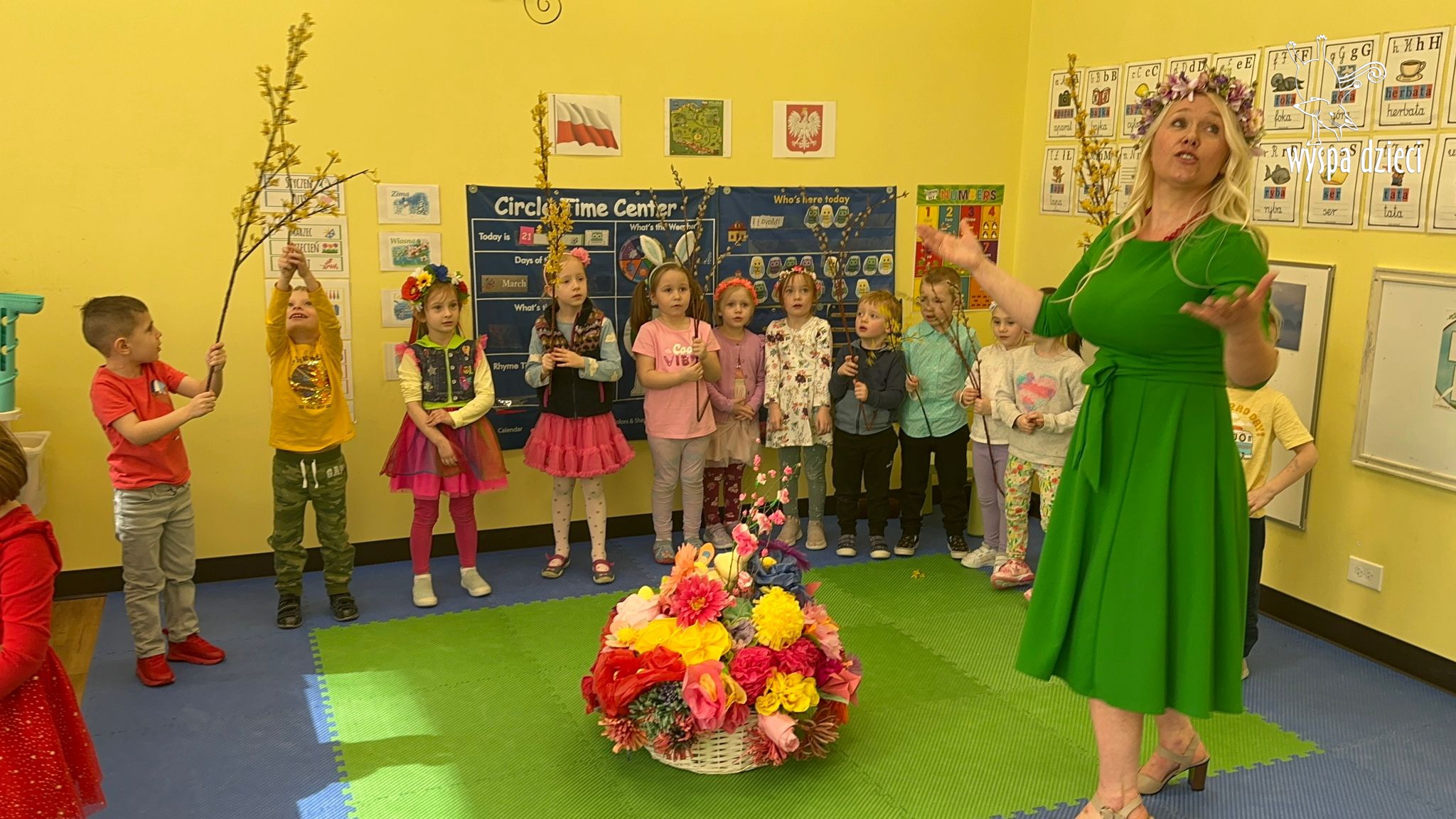 W czwartek 21 marca cała nasza Wyspa Dzieci w River Grove świętowała Pierwszy Dzień Wiosny. Aby podkreślić charakter tego dnia, Przedszkolaki przyszły ubrane w wiosenne barwy. Pani Wiosna ubrana w zielona sukienkę, z wianuszkiem na głowie i koszem pięknych kolorowych kwiatów przekroczyła progi naszego przedszkola. Zawitała do każdej z grup. Uroczystości powitania rozpoczęły się od konkursów, gier i zabaw związanych z tematyką pór roku. Pani Wiosna miała dla naszych przedszkolaków niespodziankę w postaci naklejek z pięknymi wiosennymi kwiatami. Chociaż na drugi dzień znów pojawił się śnieg to i tak jesteśmy pewni, że nasze starania sprawią, że Wiosna zawita do nas na dobre. Ale musimy pamiętać ….,że W MARCU JAK W GARCU ?