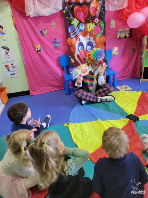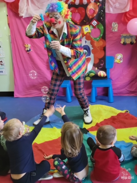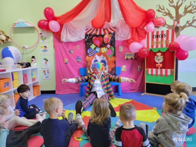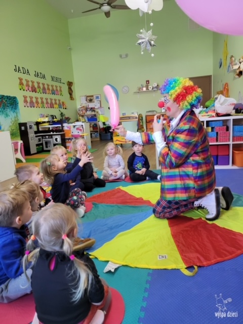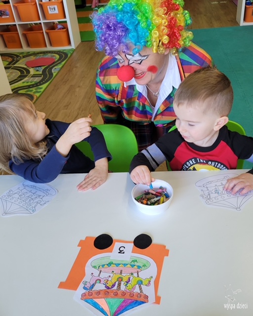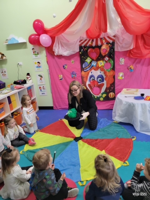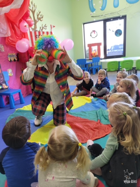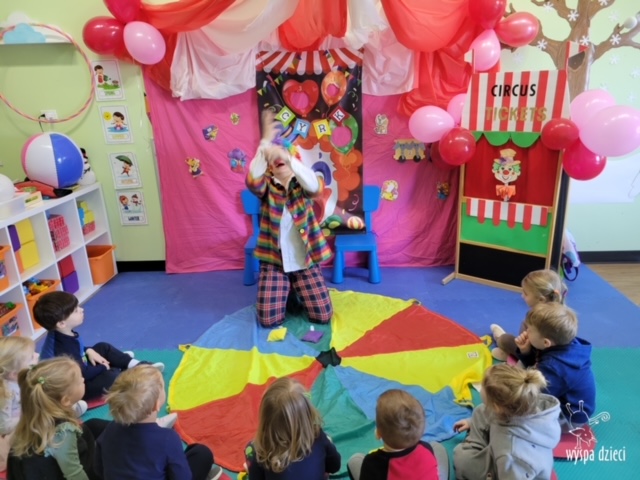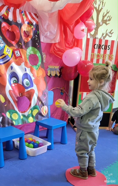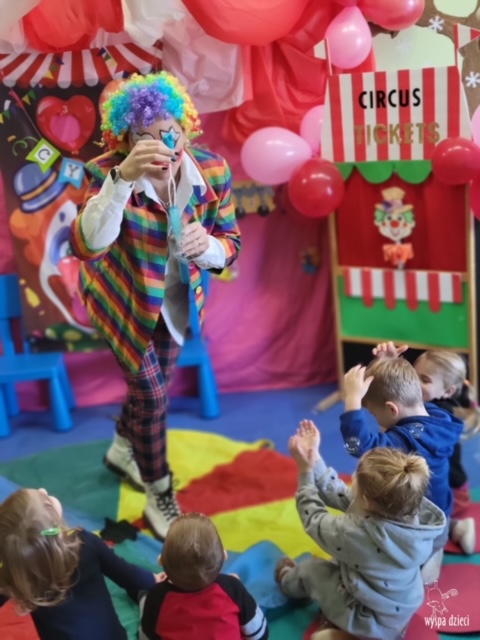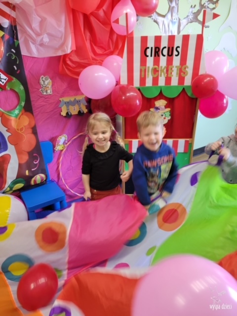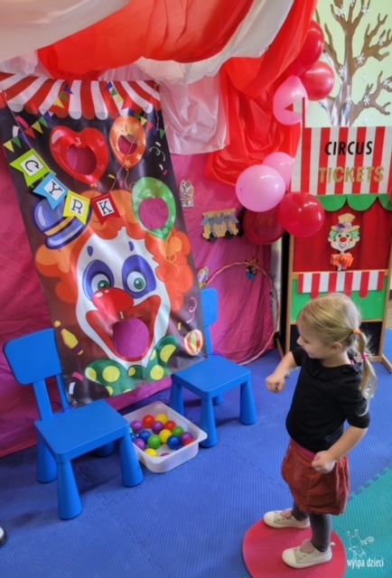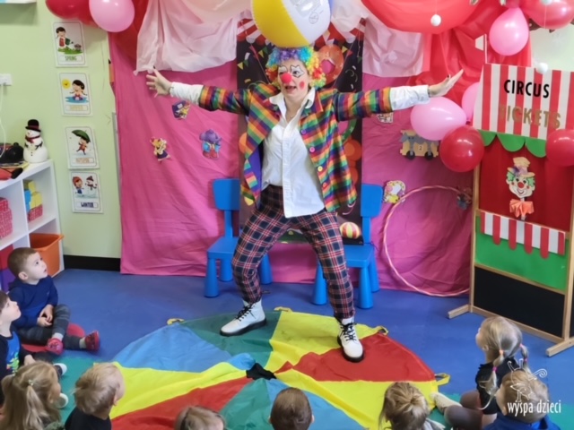 Klaun się śmieję, małpka skacze, są tancerki i siłacze.