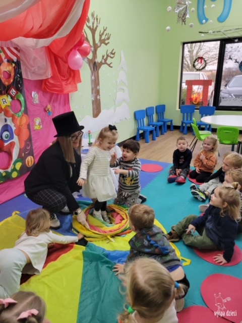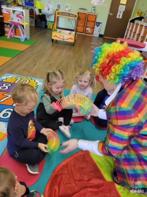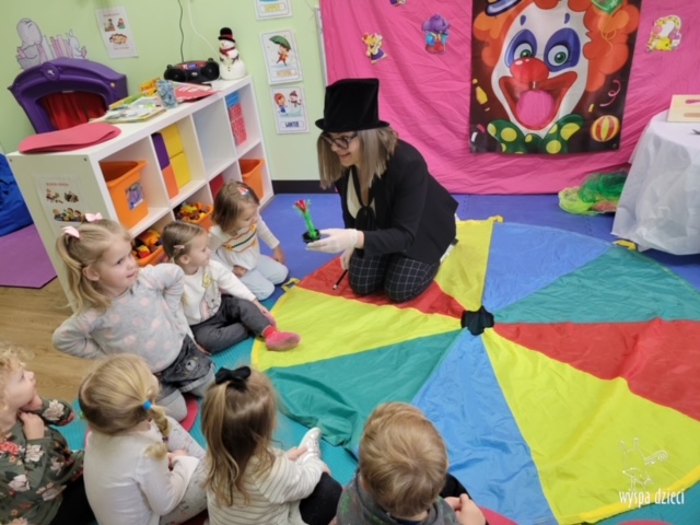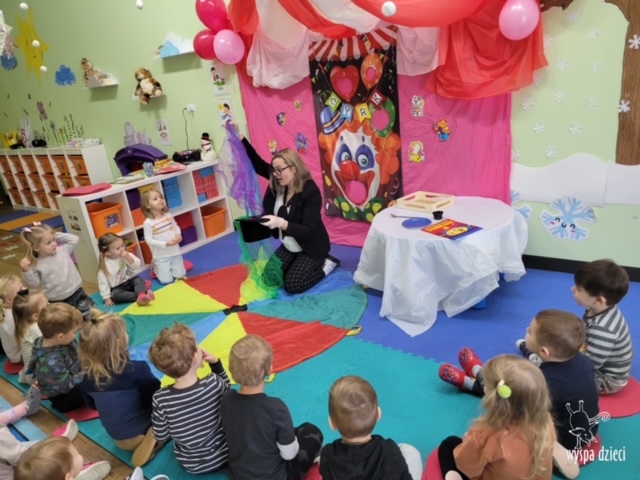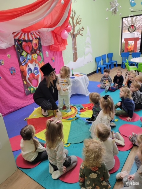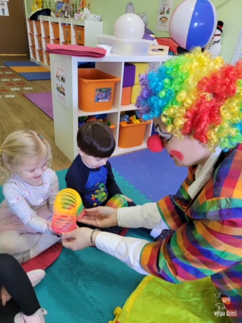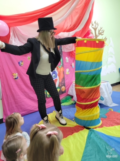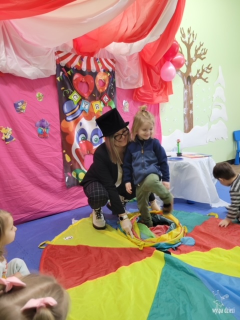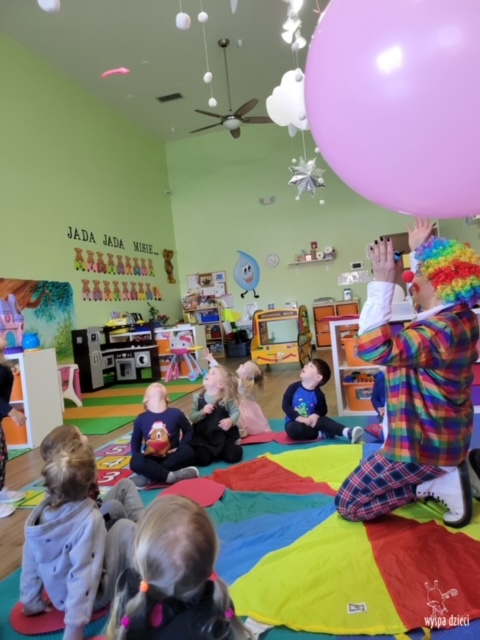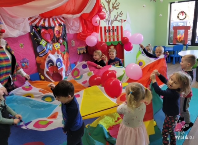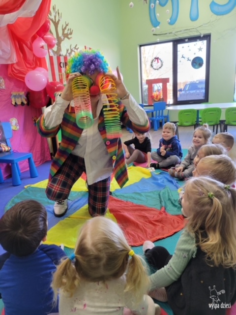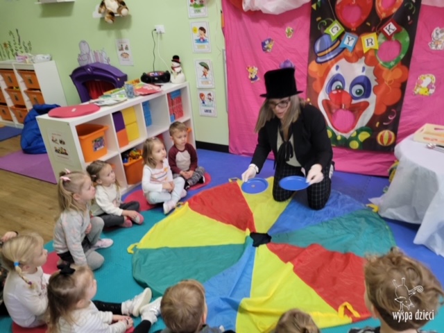 Klaun się śmieję, małpka skacze, są tancerki i siłacze.