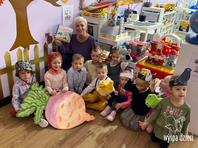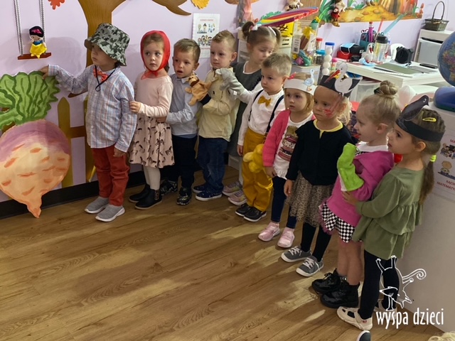 Później nasze maluchy naszedł smaczek na kawałek pysznej rzepki z kawałkiem chlebka, ale najpierw tą rzepkę trzeba było wyciągnąć! Oj to nie było łatwe zadanie, ale Krasnalki tak się zawzięły, że rzepkę wyciągneły!