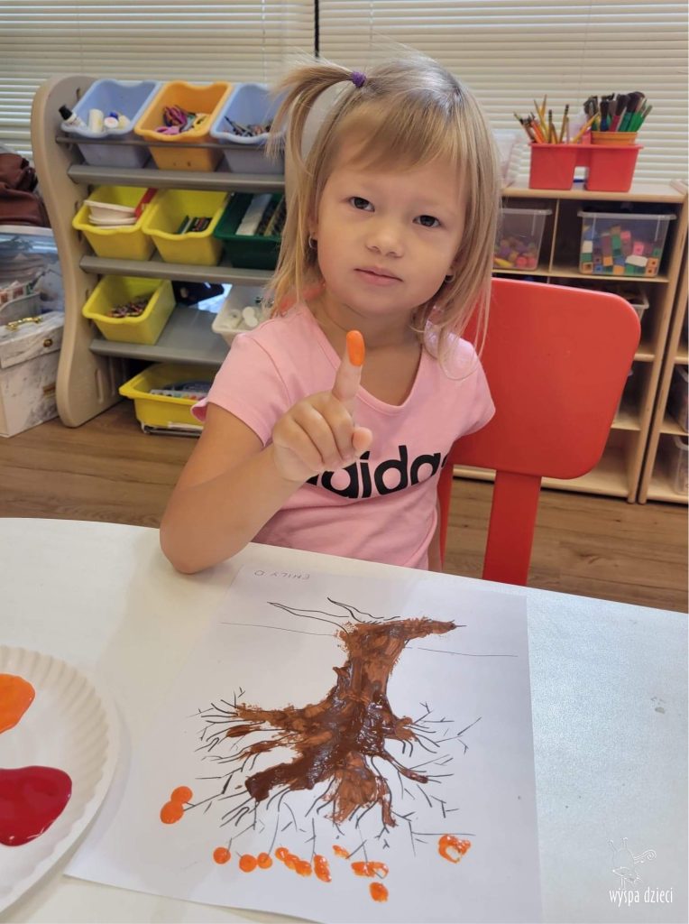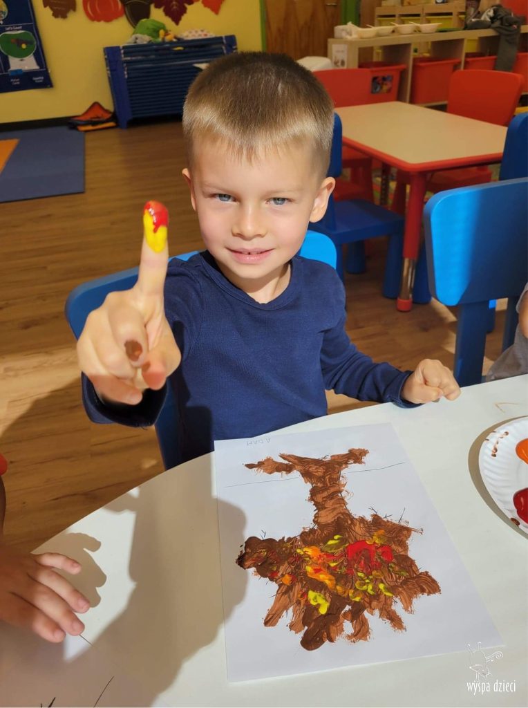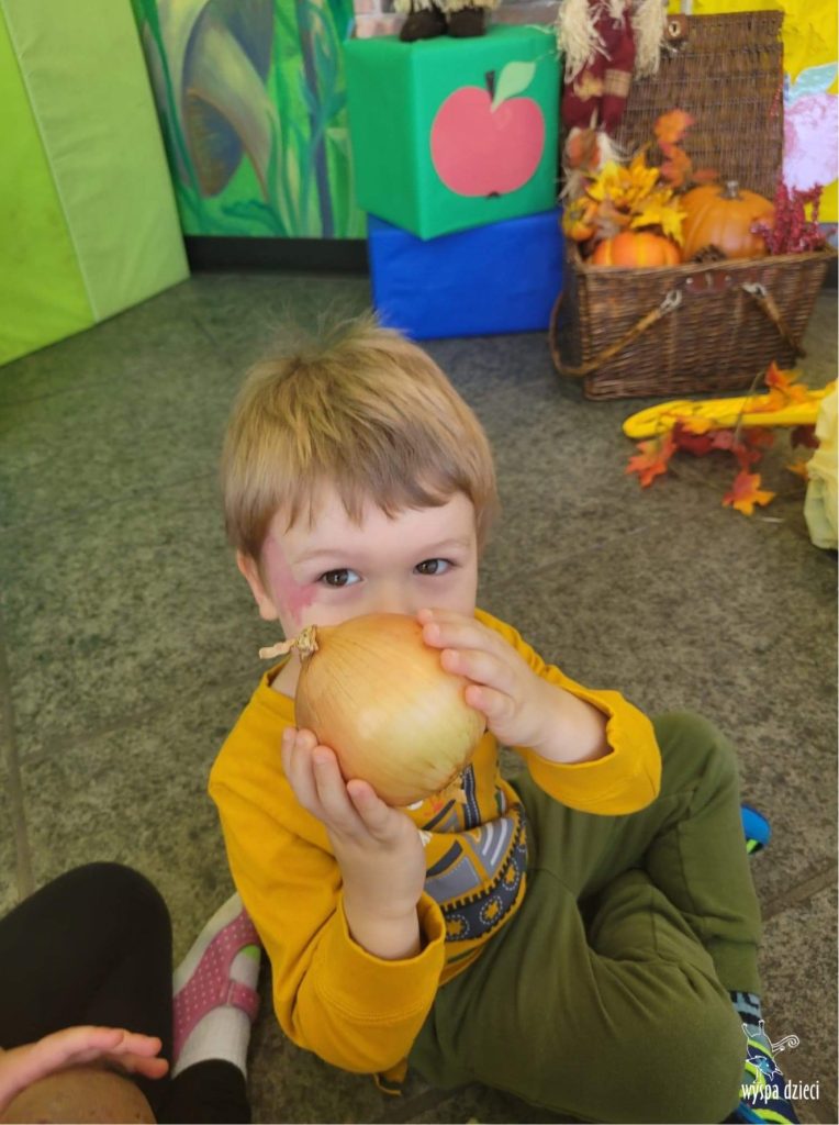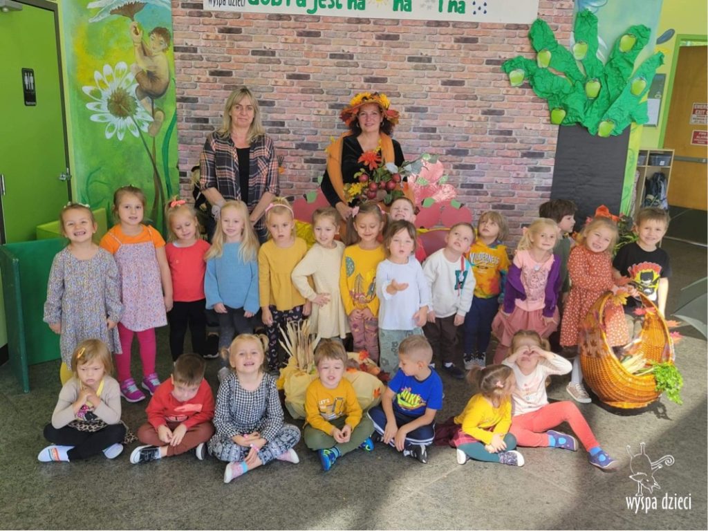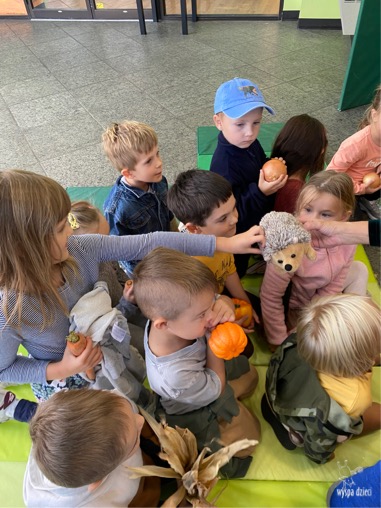 Dzieci dowiedziały się między innymi, że jesienią zbieramy plony tego co zasialiśmy wiosną, utrwaliły znajomość pór roku oraz ich cykliczność, rozpoznawały ubranka odpowiednie na jesienne dni. Nastepnie wraz ze swoimi nauczycielami przygotowali w swoich salach bardzo ciekawe jesienne projekty.
