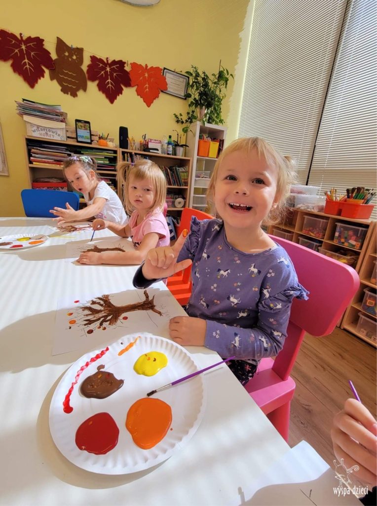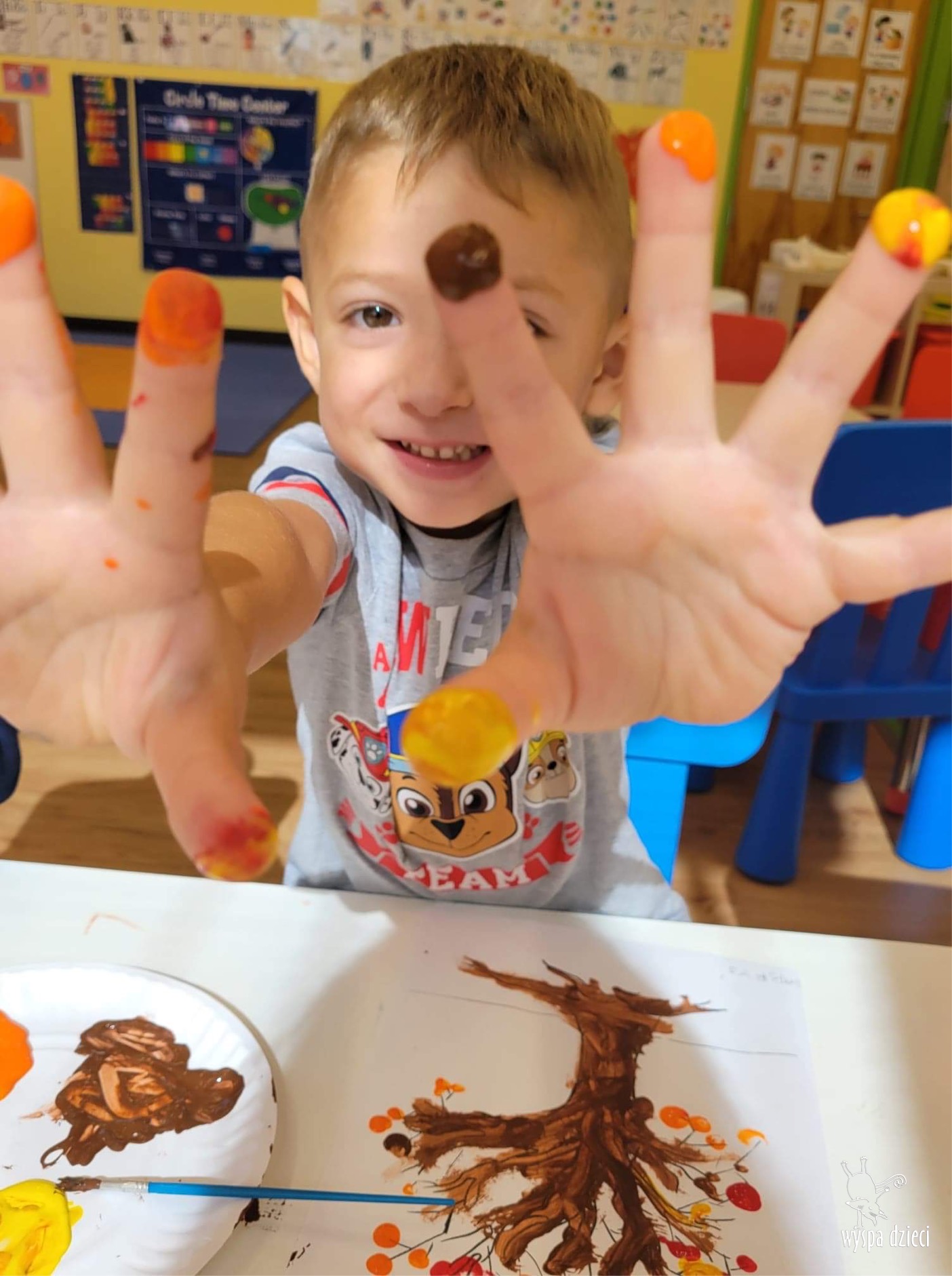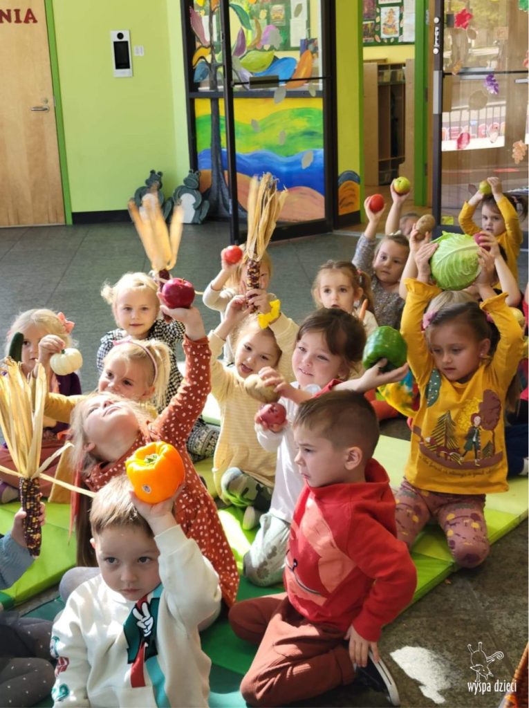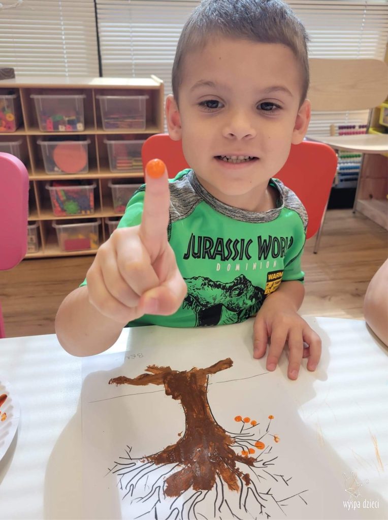 Dzieci dowiedziały się między innymi, że jesienią zbieramy plony tego co zasialiśmy wiosną, utrwaliły znajomość pór roku oraz ich cykliczność, rozpoznawały ubranka odpowiednie na jesienne dni. Nastepnie wraz ze swoimi nauczycielami przygotowali w swoich salach bardzo ciekawe jesienne projekty.
