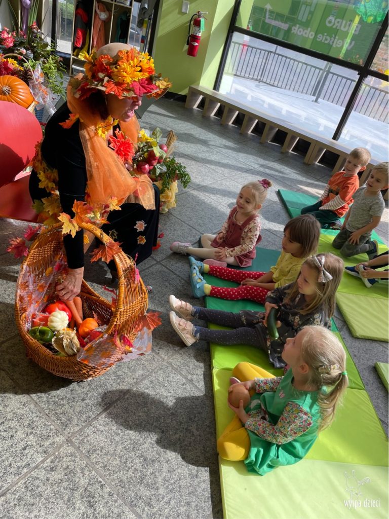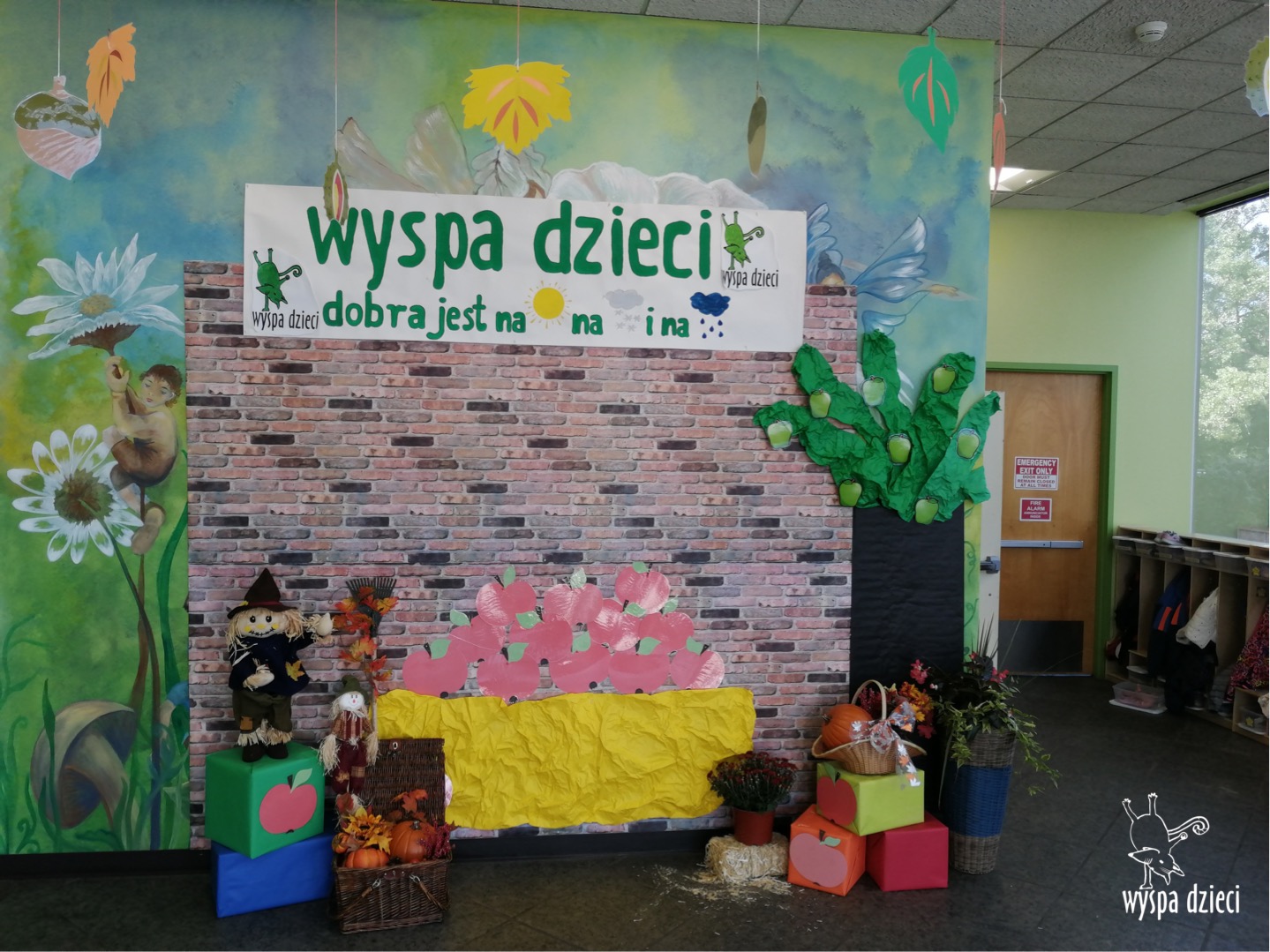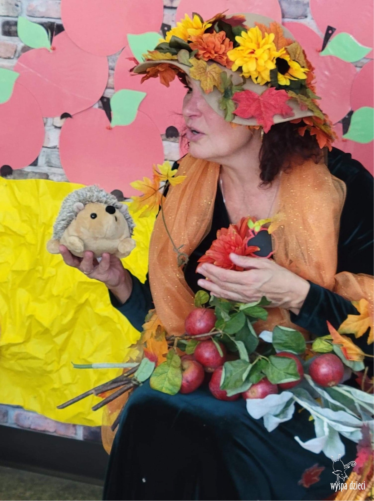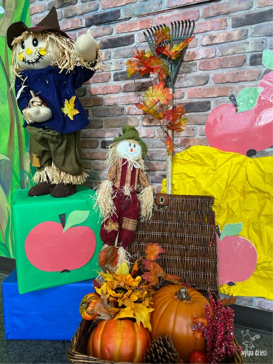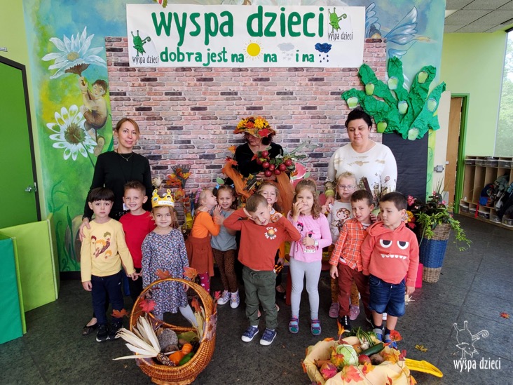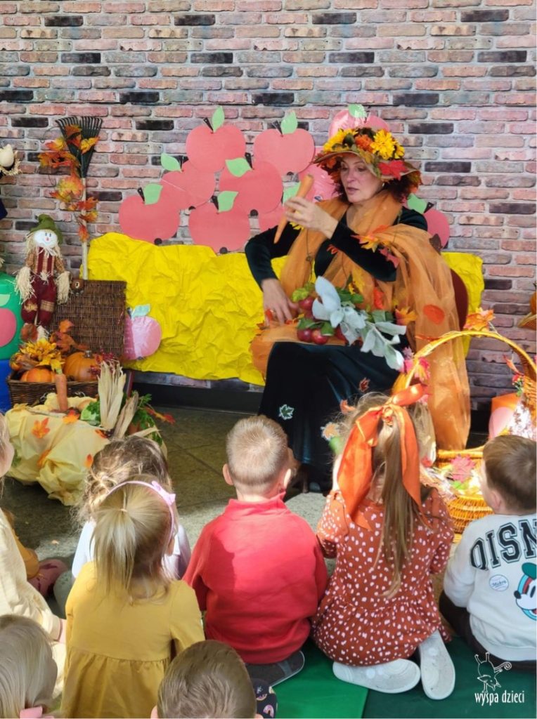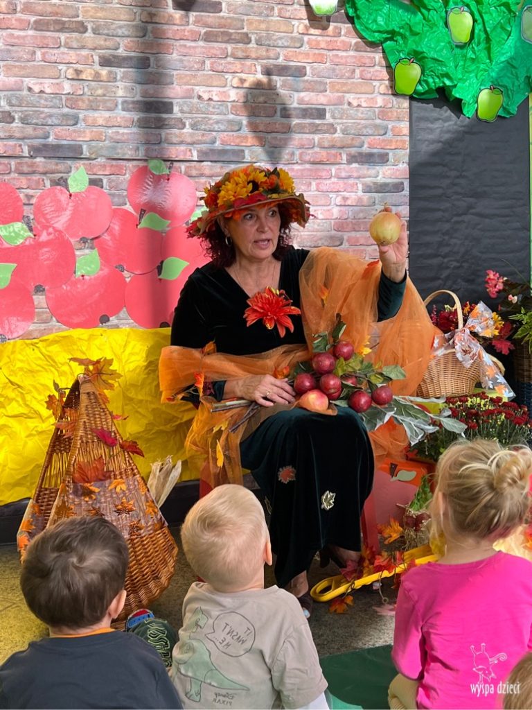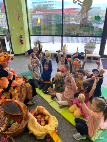 Dnia 23 września w naszej Wyspie Dzieci w River Grove można było spotkać Panią Jesień. Zostala ona powitana przez przedszkolaki z wielkim entuzjazmem, bowiem przybyła do nich w kapeluszu z liscmi w pieknej jesiennej sukni a w koszyczku trzymała ciekawe prezenty. Przyniosła dla dzieci prawdziwe dary jesieni z ogrodu i sadu. Przedszkolaki odgadywaly jesienne zagadki oraz rozpoznawały dary jesieni.