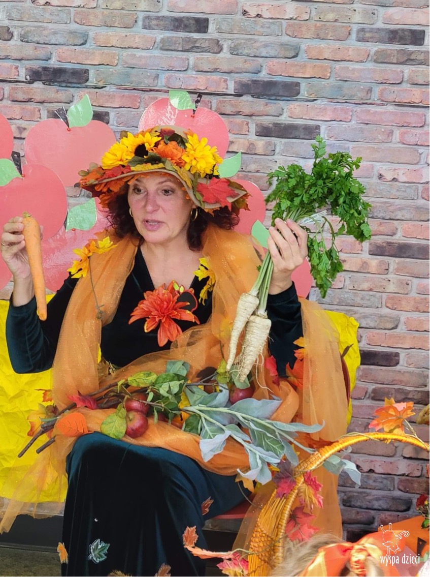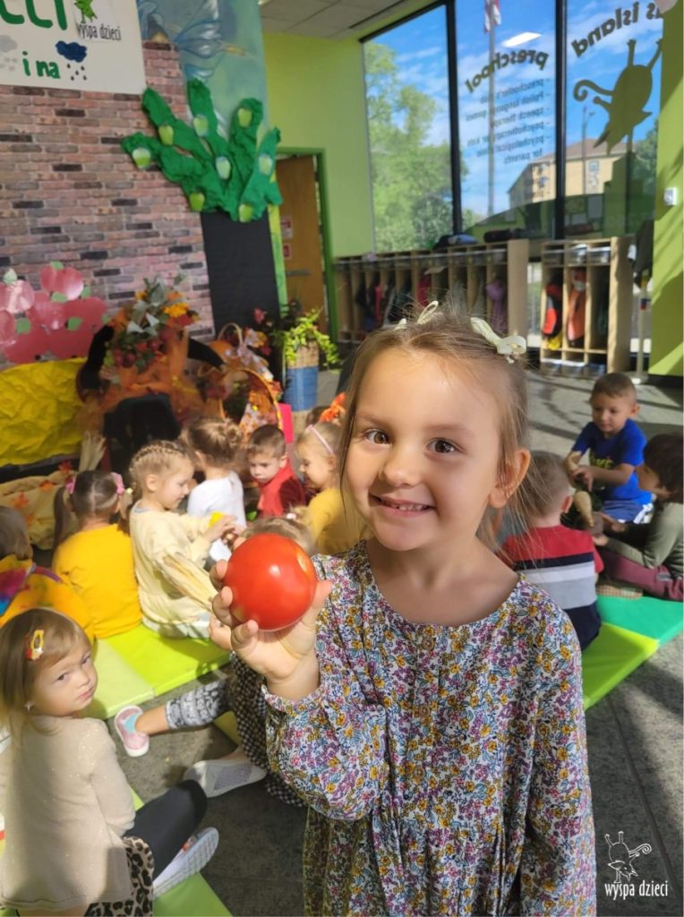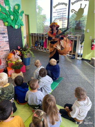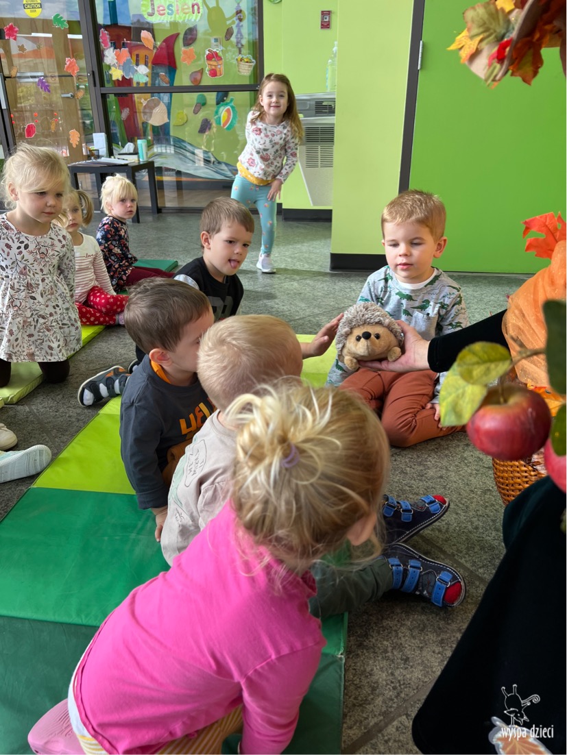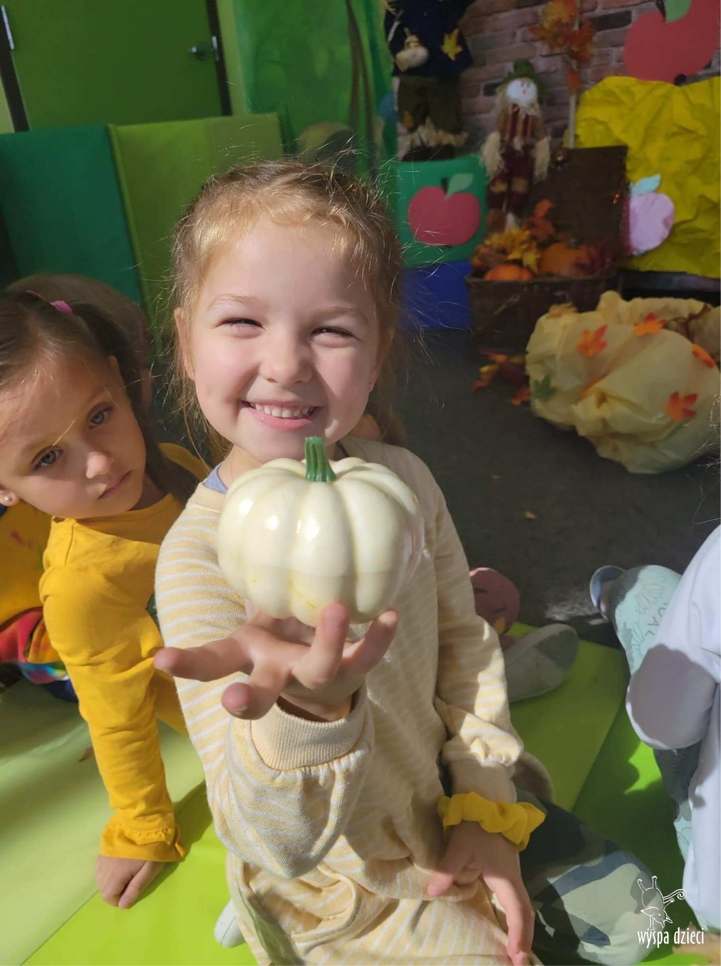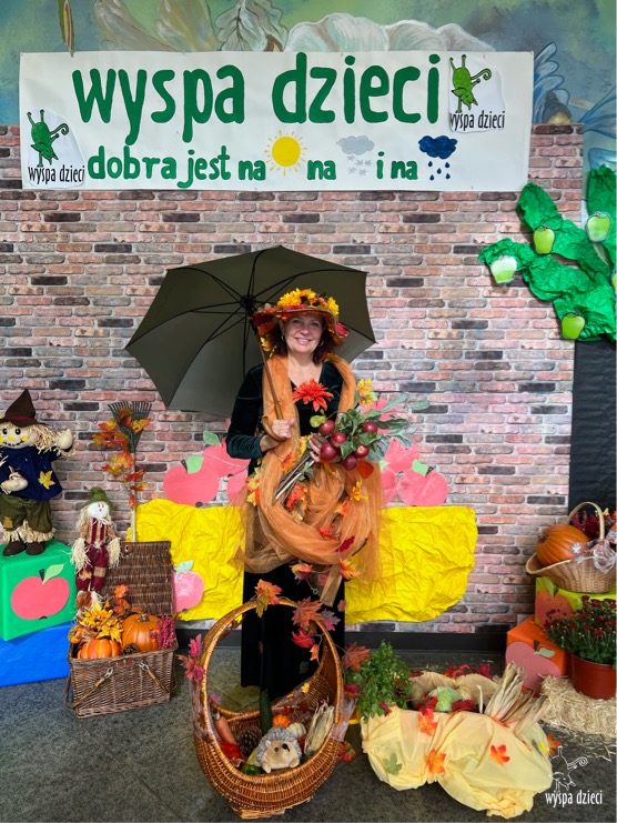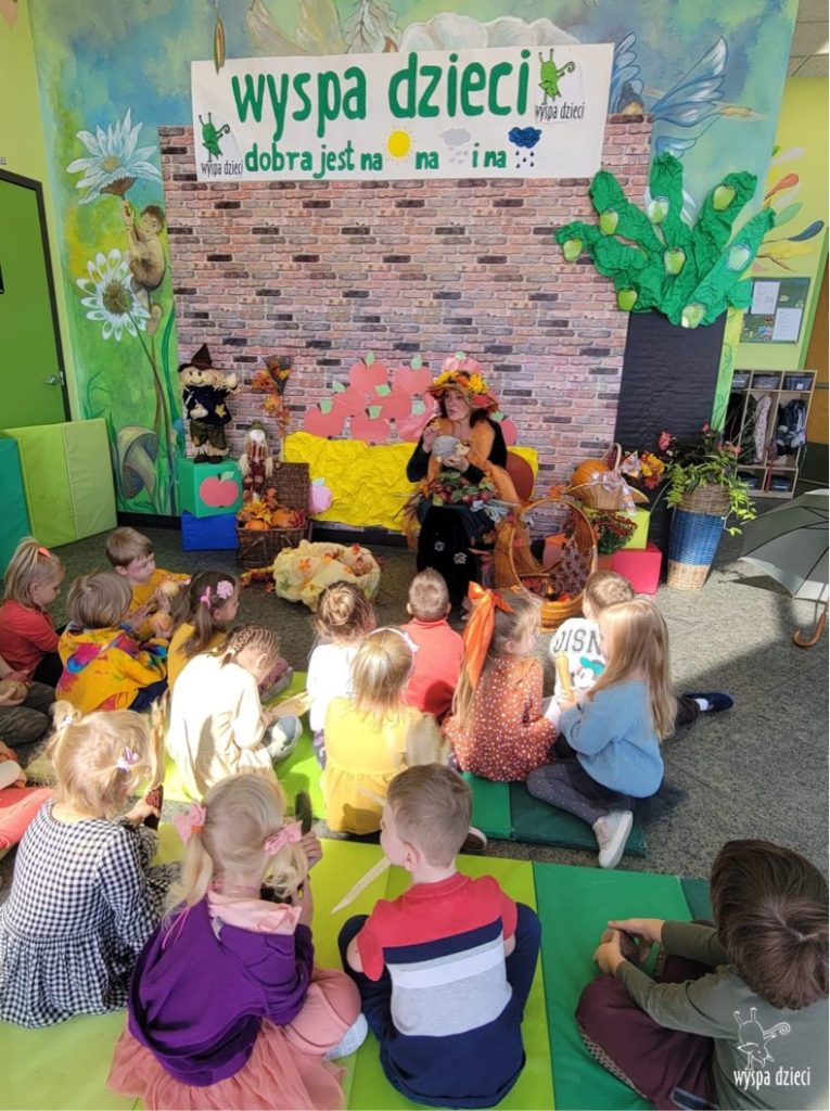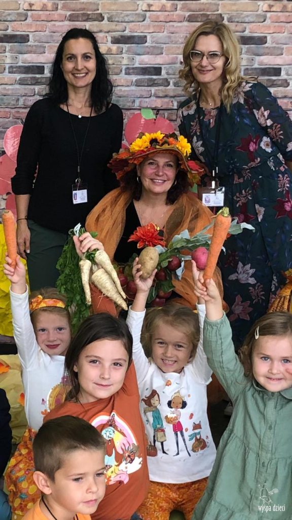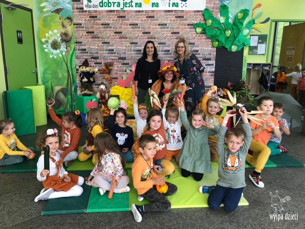 Dnia 23 września w naszej Wyspie Dzieci w River Grove można było spotkać Panią Jesień. Zostala ona powitana przez przedszkolaki z wielkim entuzjazmem, bowiem przybyła do nich w kapeluszu z liscmi w pieknej jesiennej sukni a w koszyczku trzymała ciekawe prezenty. Przyniosła dla dzieci prawdziwe dary jesieni z ogrodu i sadu. Przedszkolaki odgadywaly jesienne zagadki oraz rozpoznawały dary jesieni.