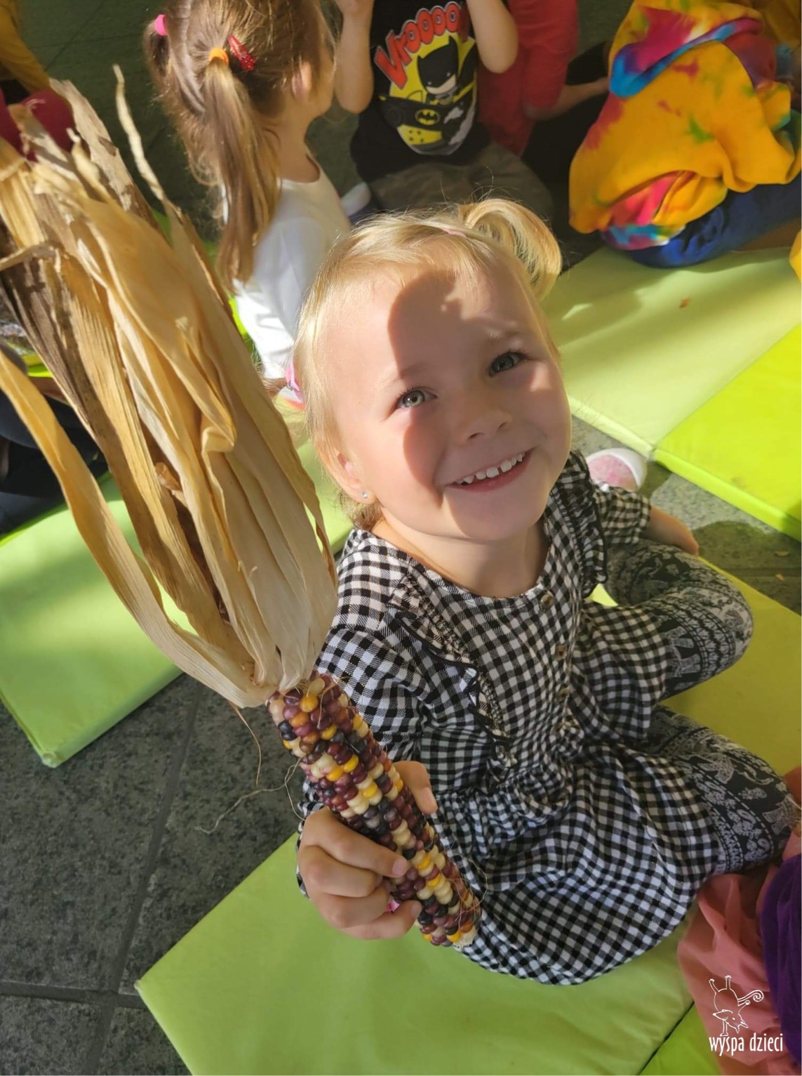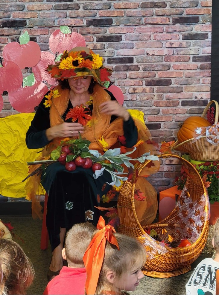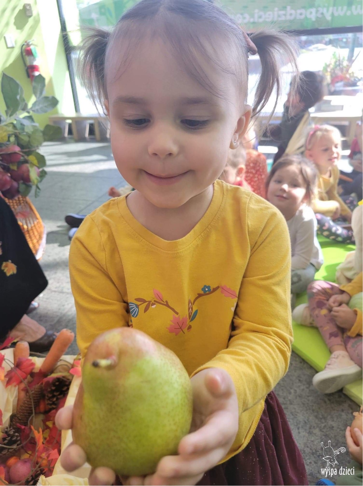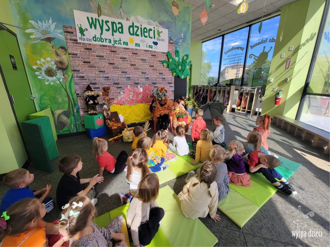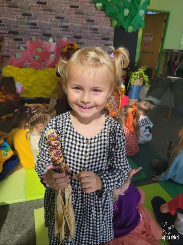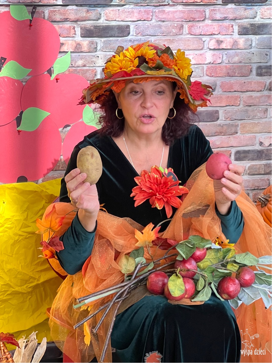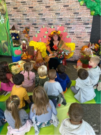 Dnia 23 września w naszej Wyspie Dzieci w River Grove można było spotkać Panią Jesień. Zostala ona powitana przez przedszkolaki z wielkim entuzjazmem, bowiem przybyła do nich w kapeluszu z liscmi w pieknej jesiennej sukni a w koszyczku trzymała ciekawe prezenty. Przyniosła dla dzieci prawdziwe dary jesieni z ogrodu i sadu. Przedszkolaki odgadywaly jesienne zagadki oraz rozpoznawały dary jesieni.