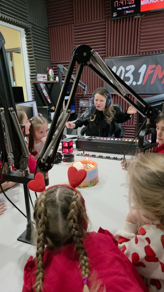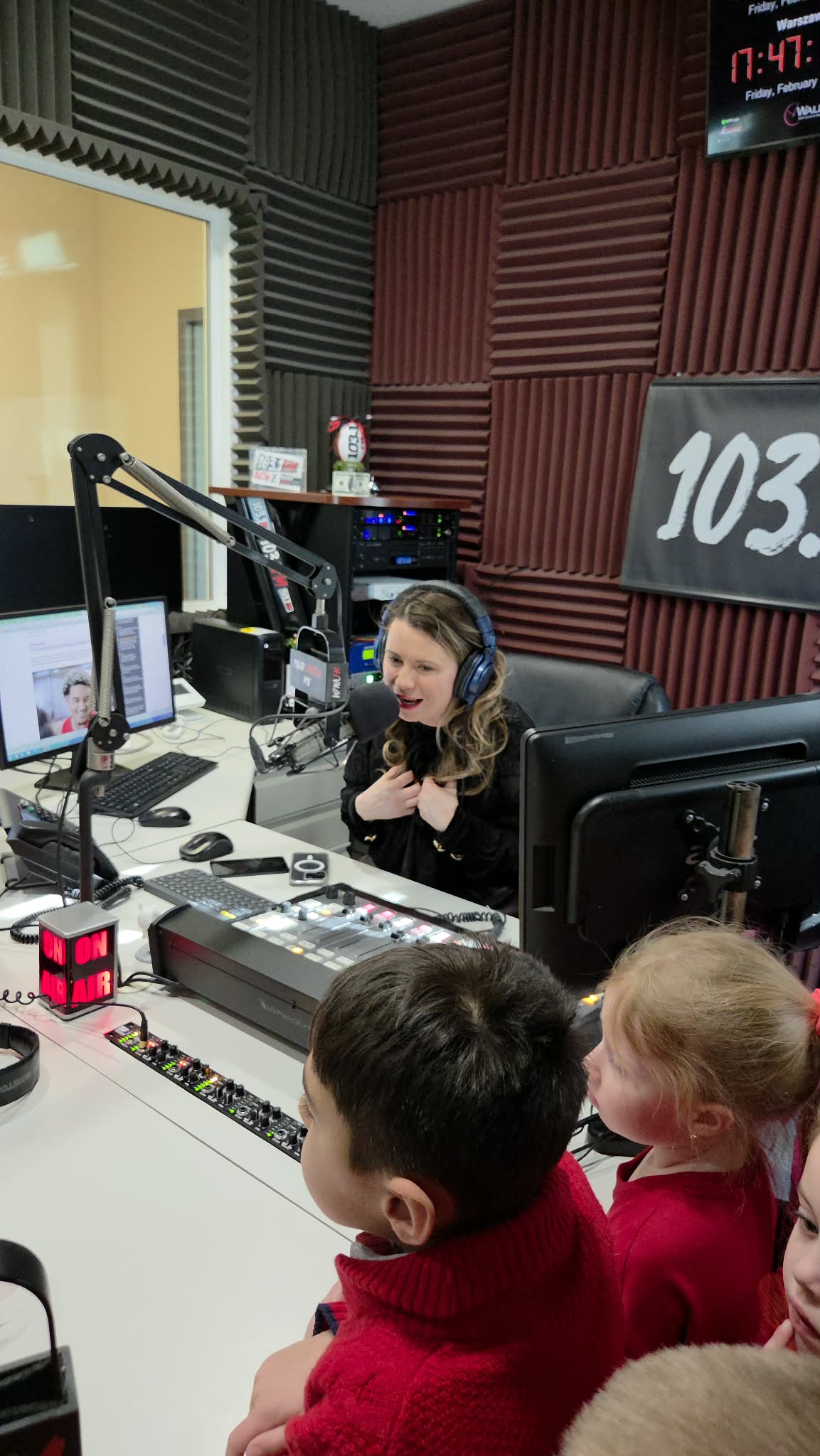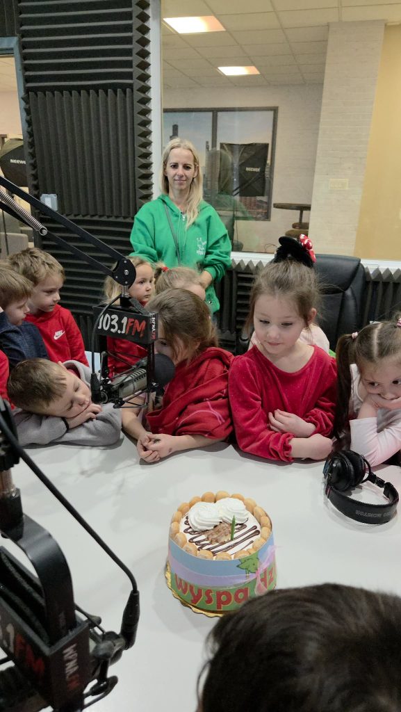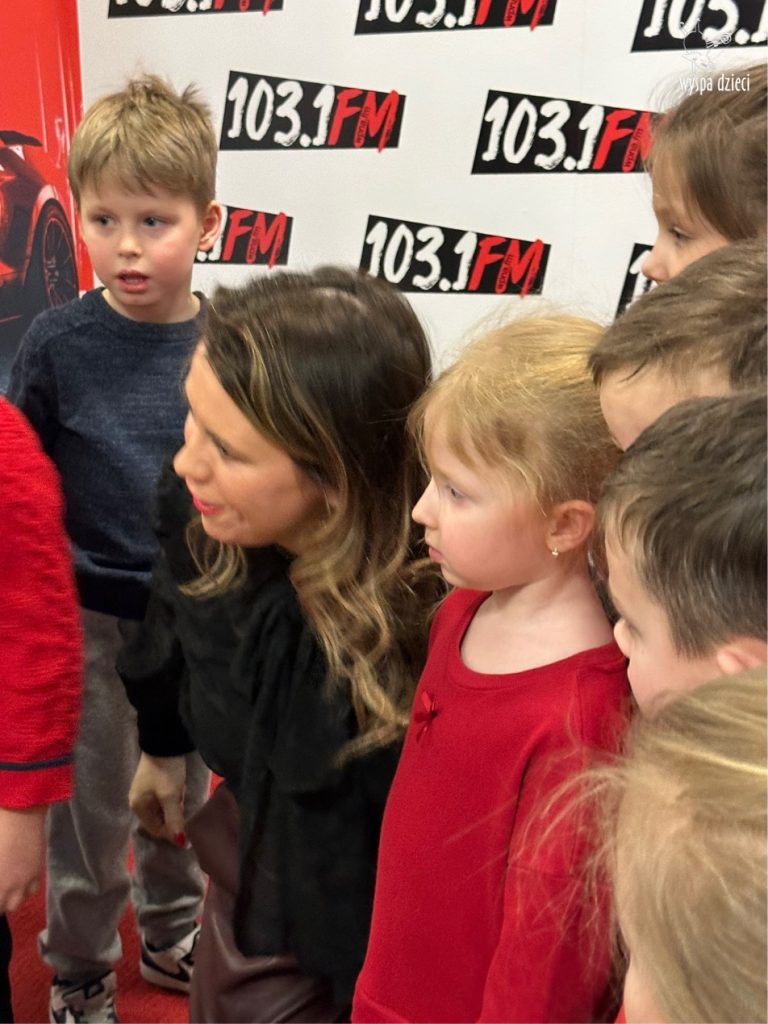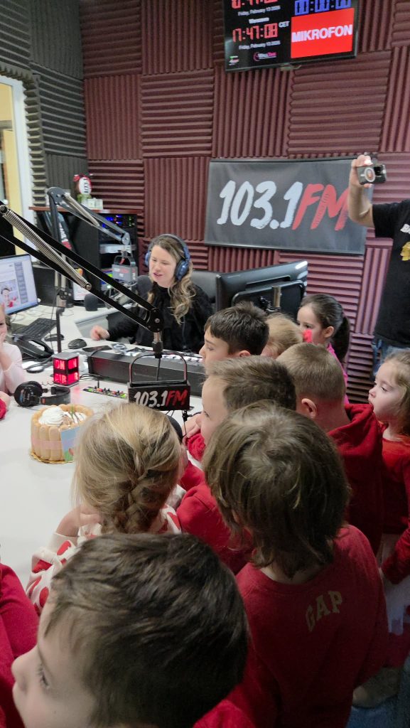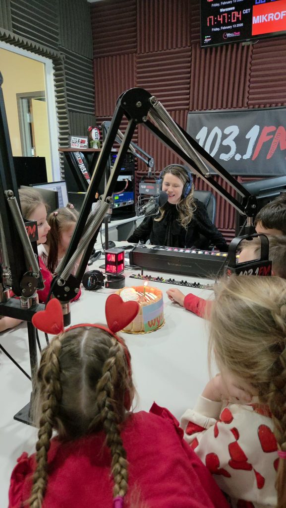 Na początku wizyty dzieci poznały Redaktora Naczelnego Radia – Pana Jacka Niemczyka, który oprowadził wszystkich po siedzibie rozgłośni. Przedszkolaki weszły do studia, w którym audycję na żywo prowadziłą Pani Kasia Popko . Mogły obserwować pracę w radiu i co najważniejsze wziać udział w programie na żywo. Mieliśmy również tort niespodziankę i zaśpiewaliśmy  Sto Lat, ponieważ dokładnie w tym dniu wypada bardzo ważne święto – Światowy Dzień Radia.