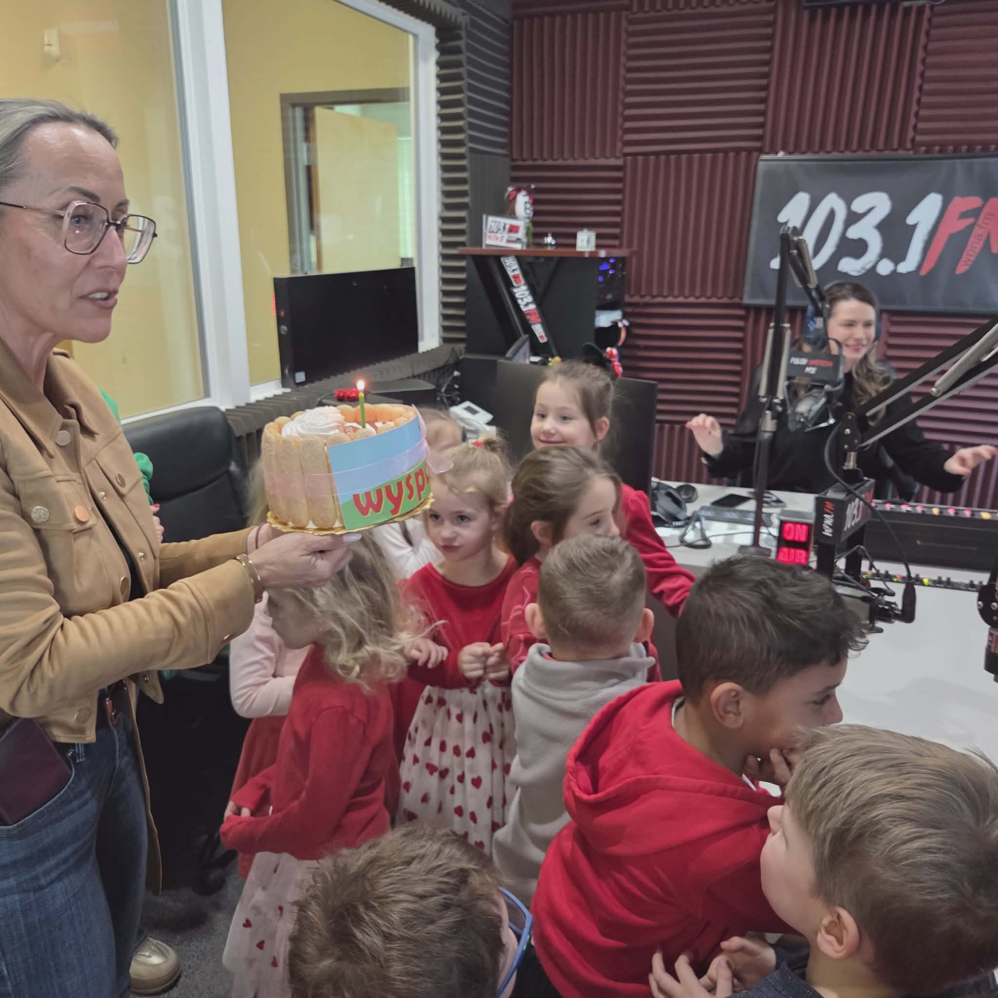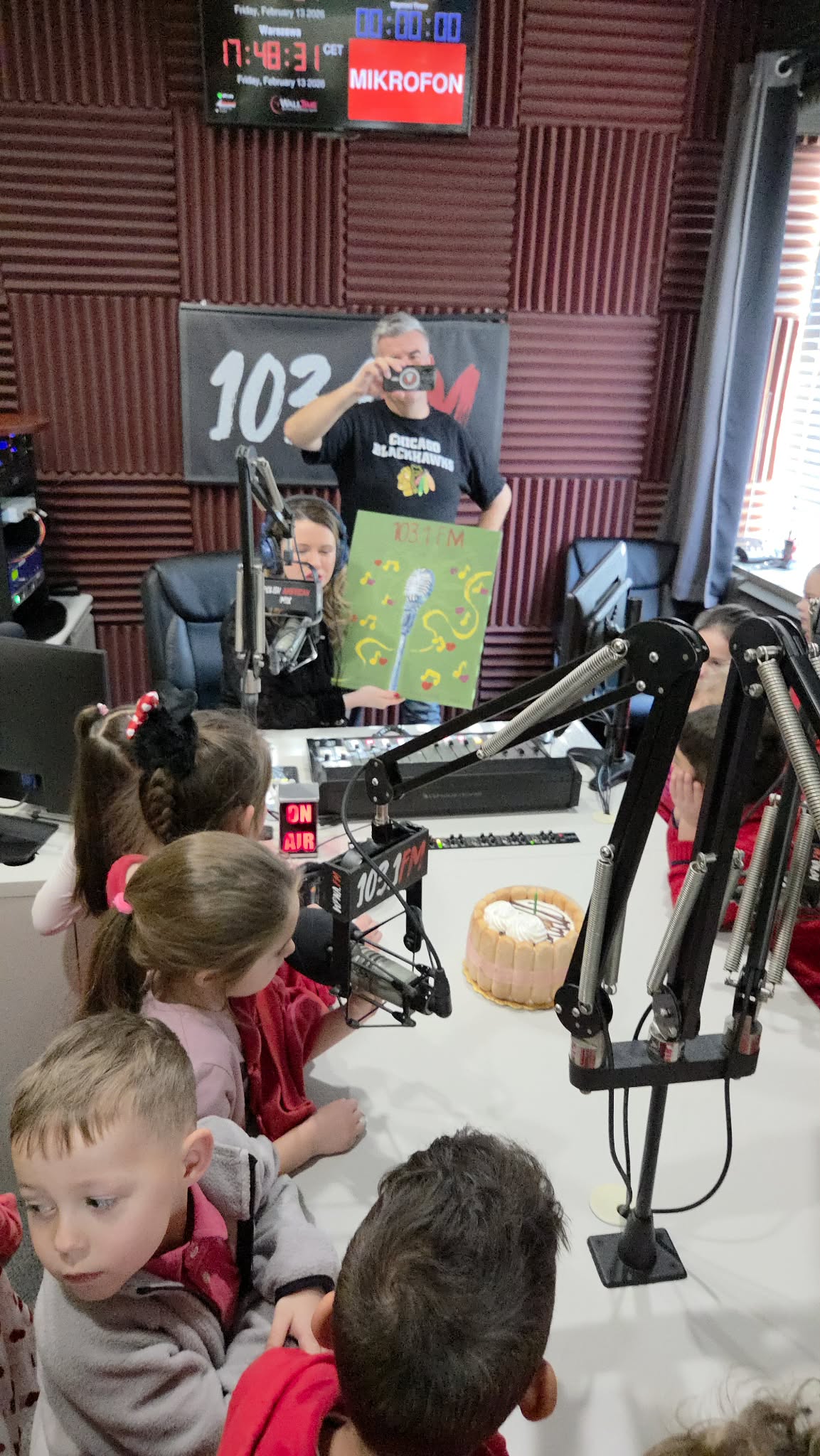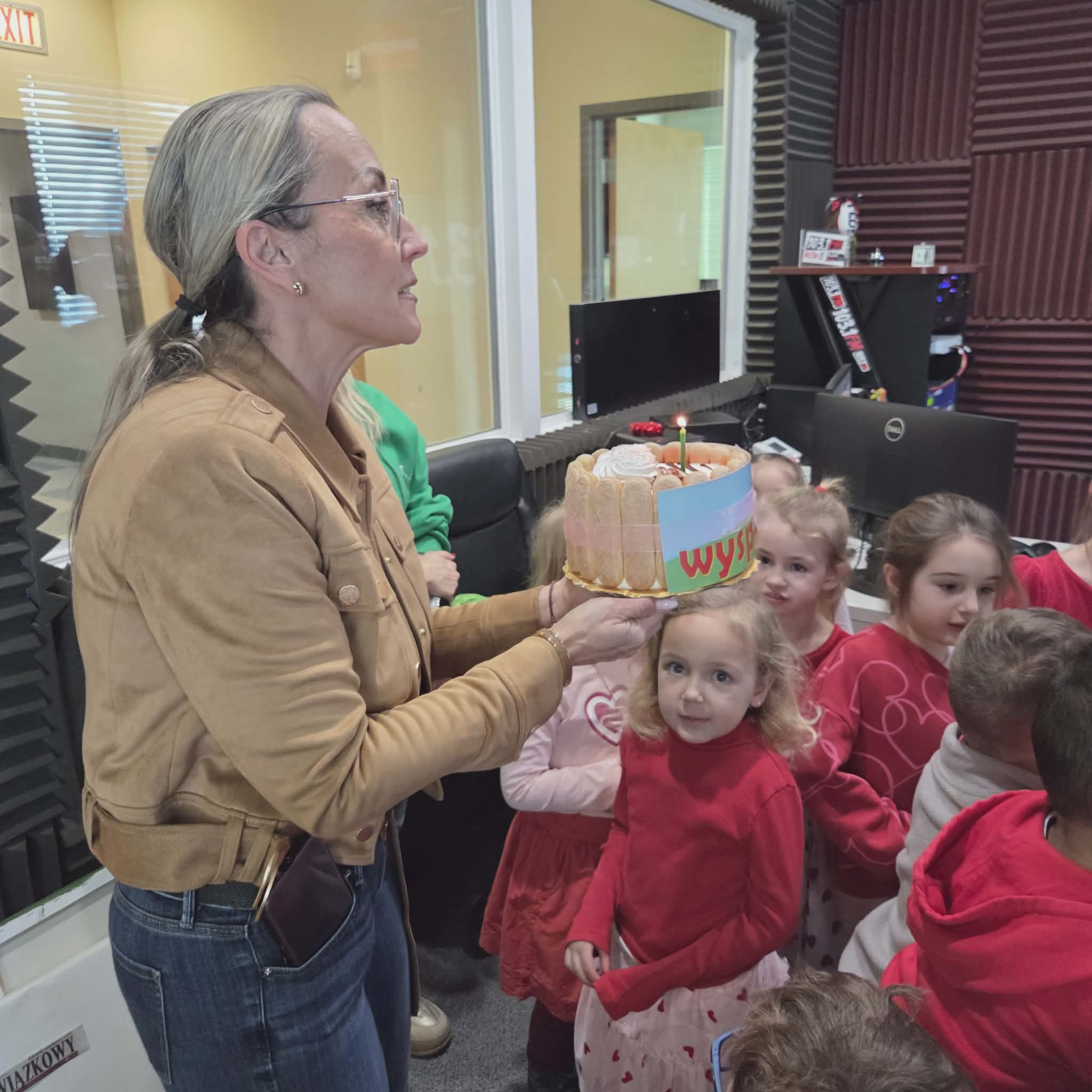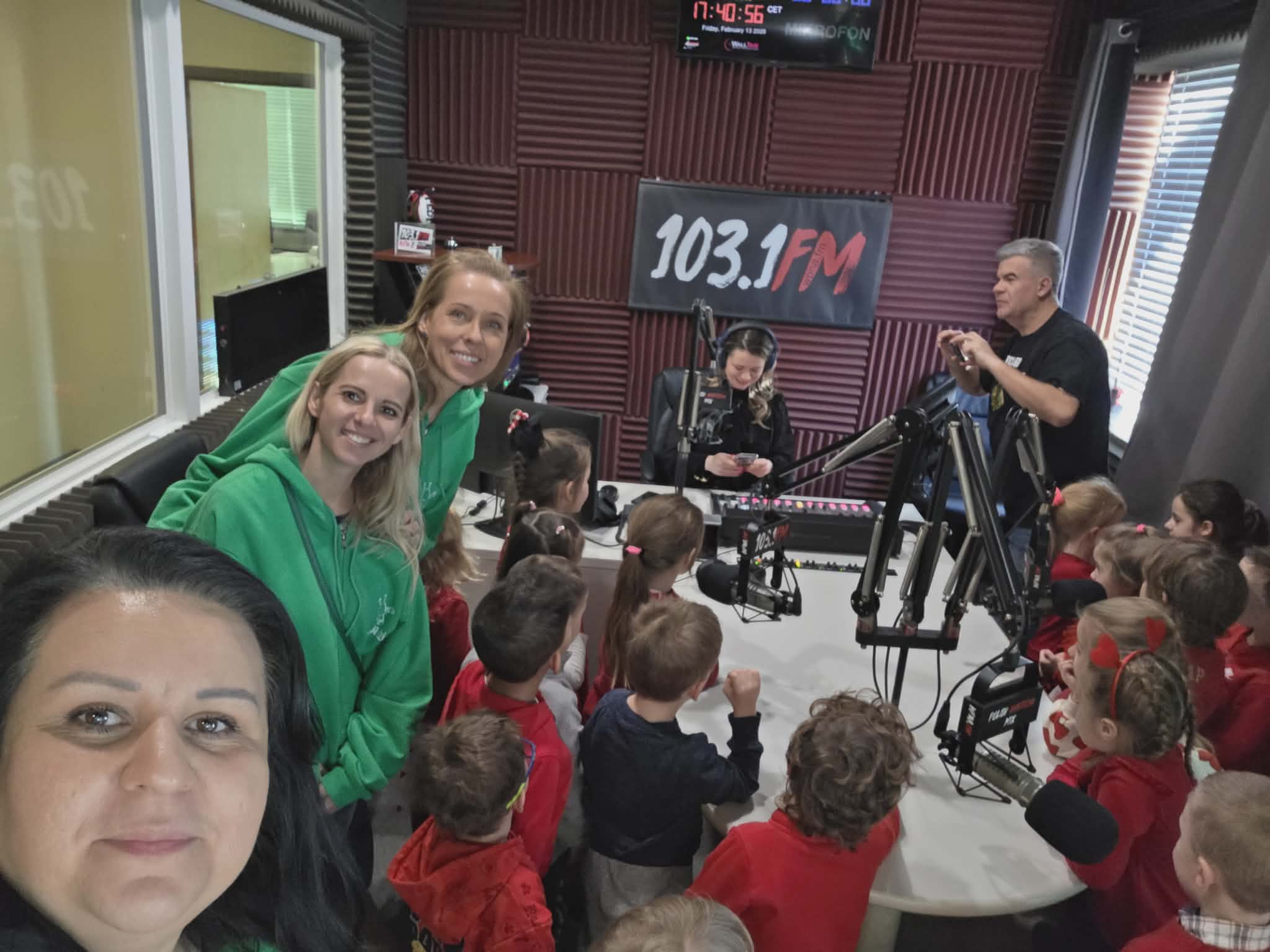 Na początku wizyty dzieci poznały Redaktora Naczelnego Radia – Pana Jacka Niemczyka, który oprowadził wszystkich po siedzibie rozgłośni. Przedszkolaki weszły do studia, w którym audycję na żywo prowadziłą Pani Kasia Popko . Mogły obserwować pracę w radiu i co najważniejsze wziać udział w programie na żywo. Mieliśmy również tort niespodziankę i zaśpiewaliśmy  Sto Lat, ponieważ dokładnie w tym dniu wypada bardzo ważne święto – Światowy Dzień Radia.
