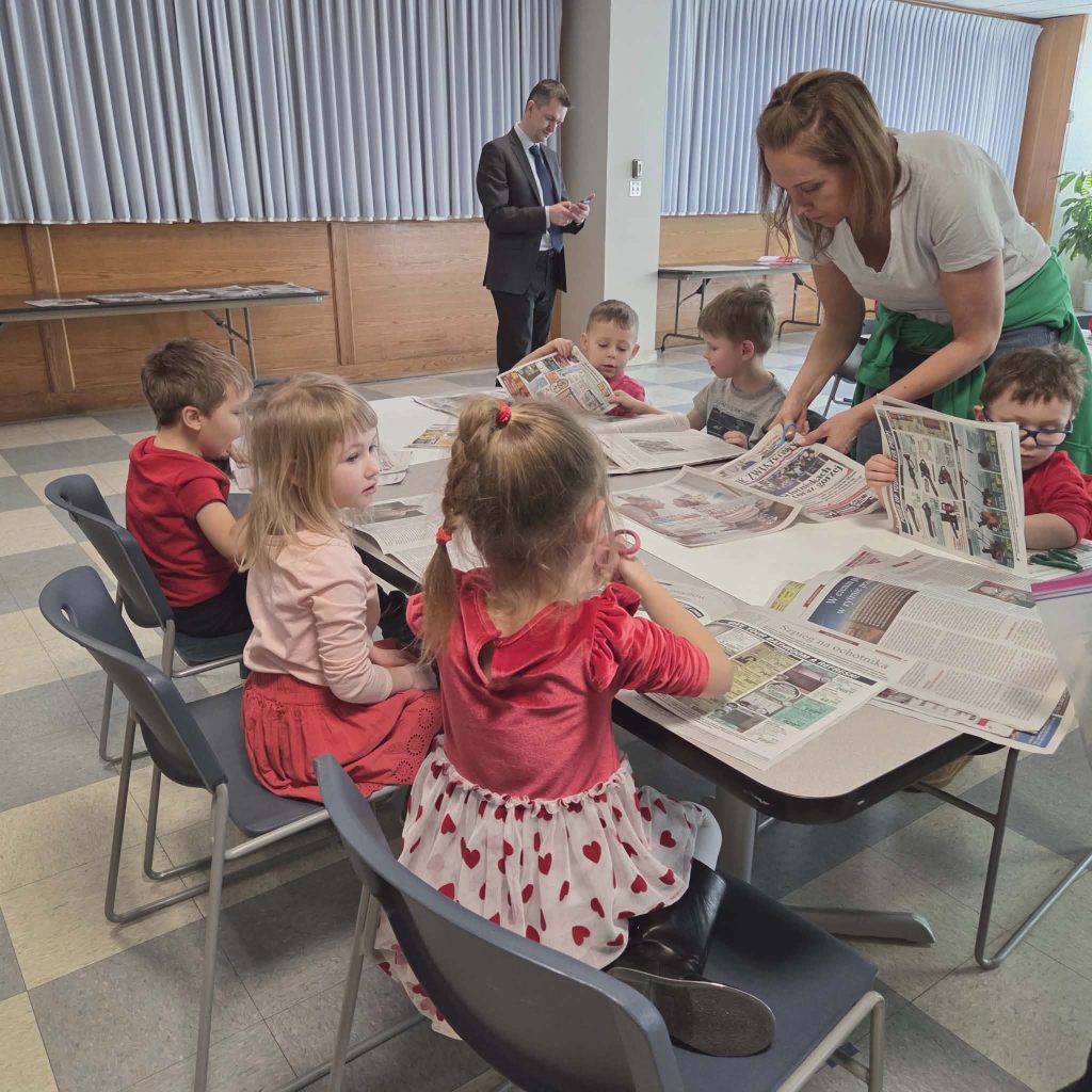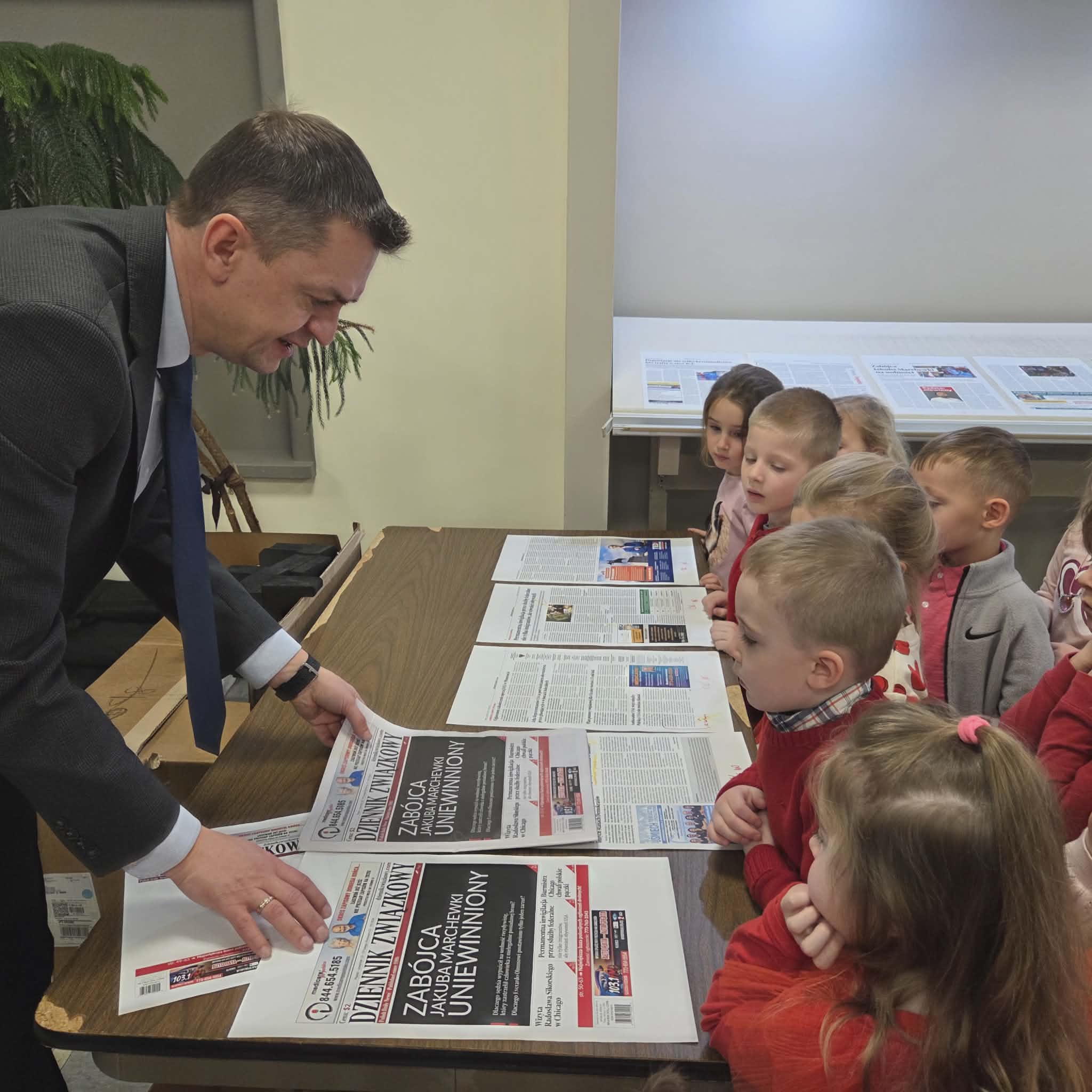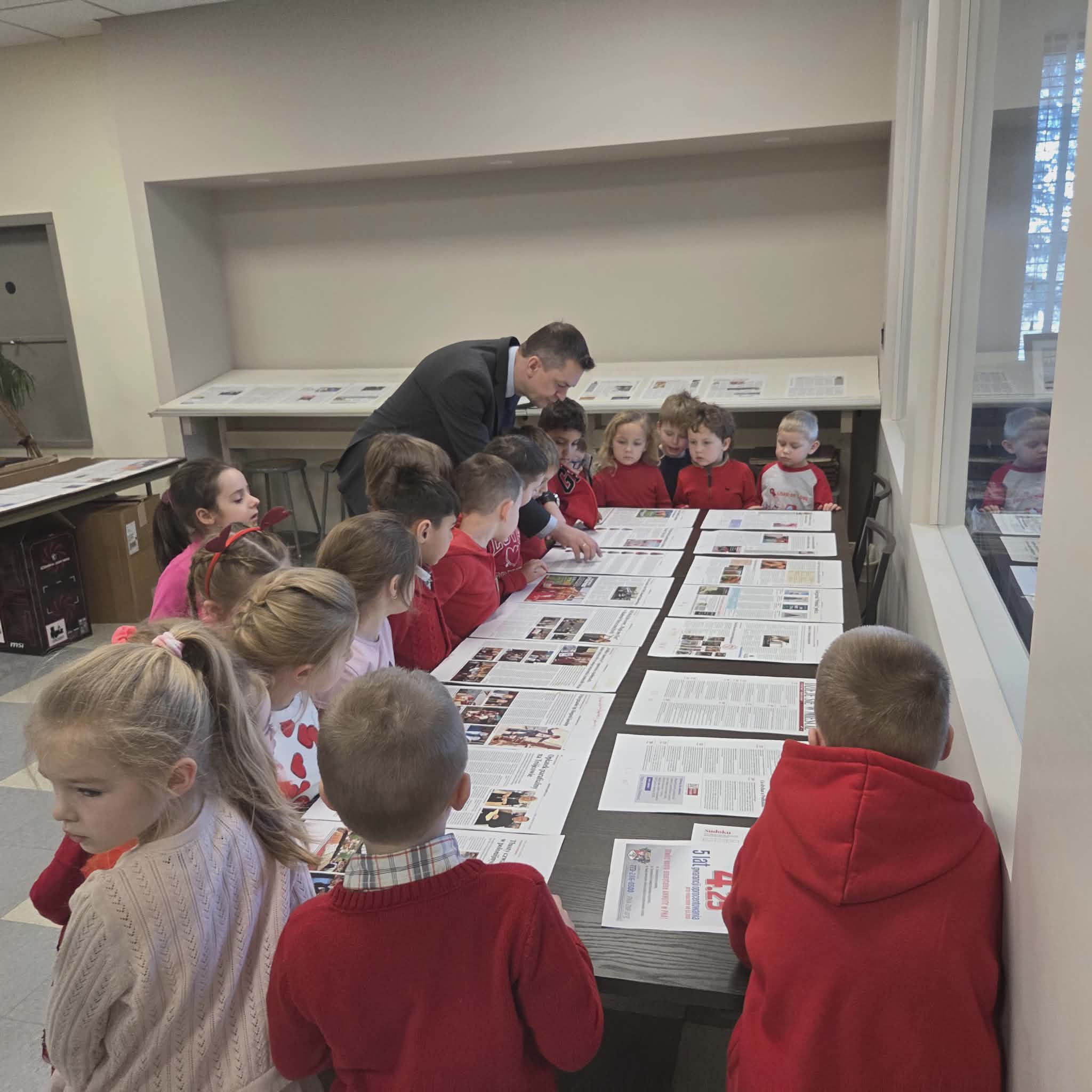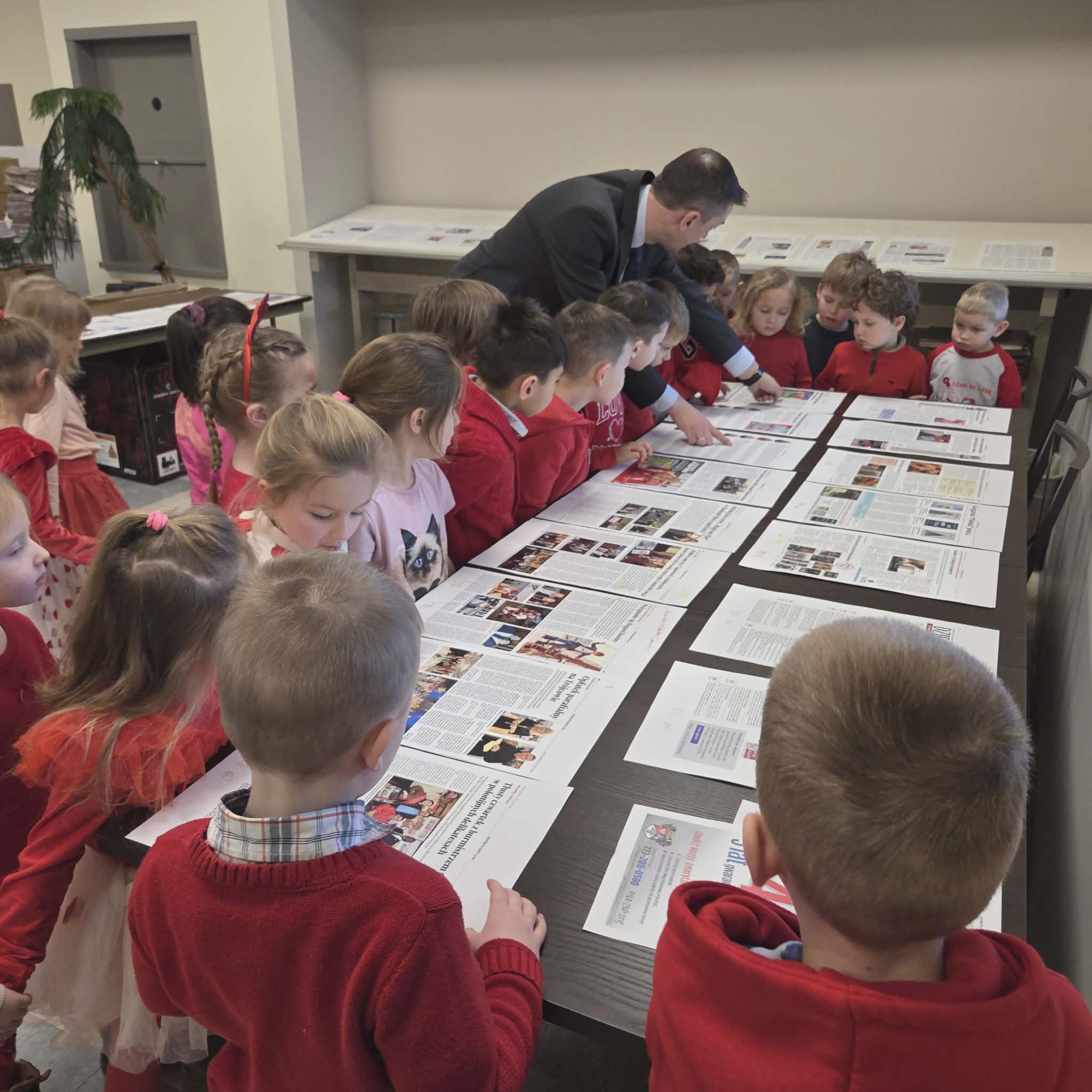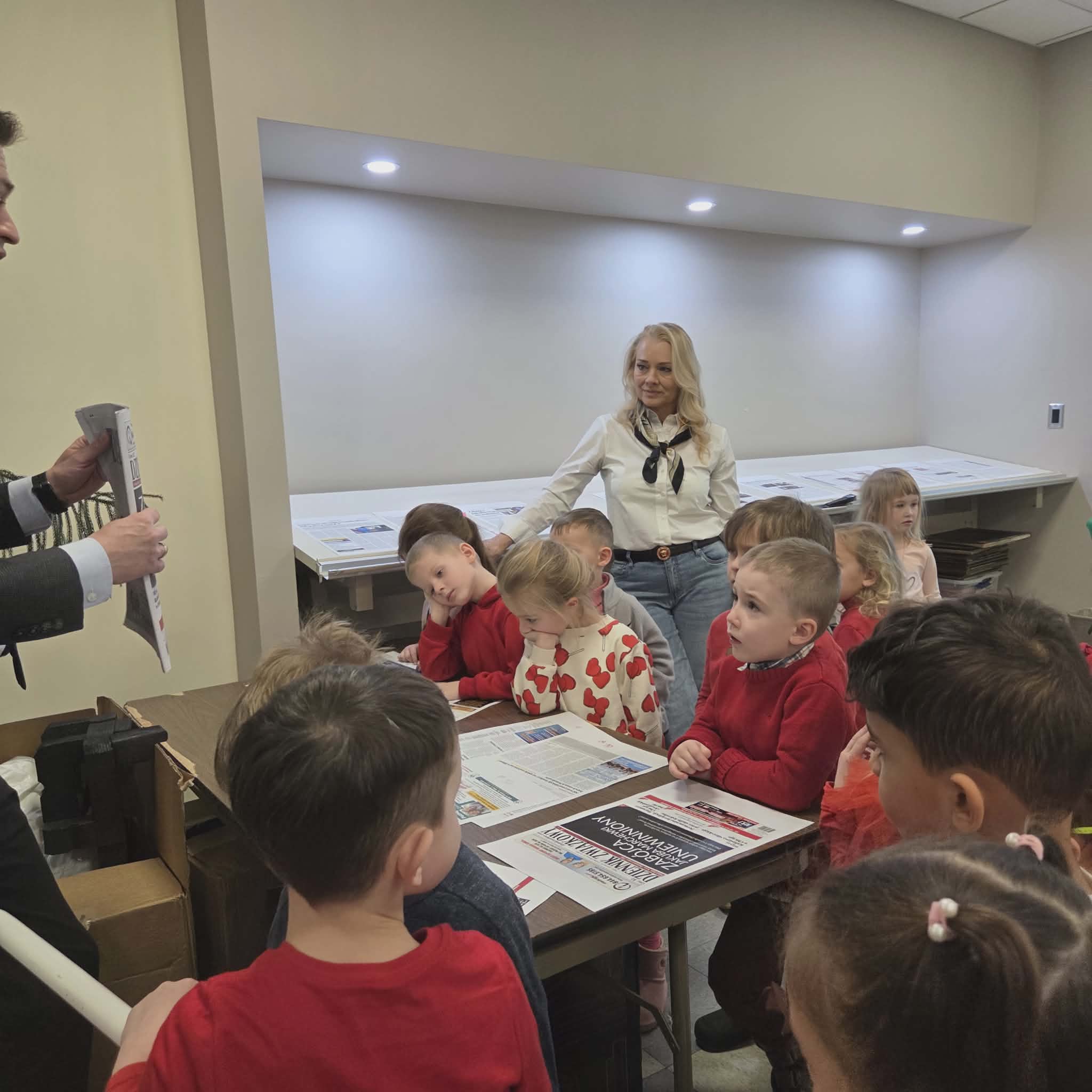 Następnie dzieci przeszły do części gazety „Dziennik Związkowy”. Tam, dyrektor generalny gazety Pan Łukasz Dudka opowiedział dzieciom o pracy w gazecie. Pokazał wiele ciekawych rzeczy oraz podzielił się tajnikami pracy redaktorów. Na koniec naszego pobytu dzieci mogły poczuć się jak prawdziwi redaktorzy , tworząc w małych grupkach swoje gazety.